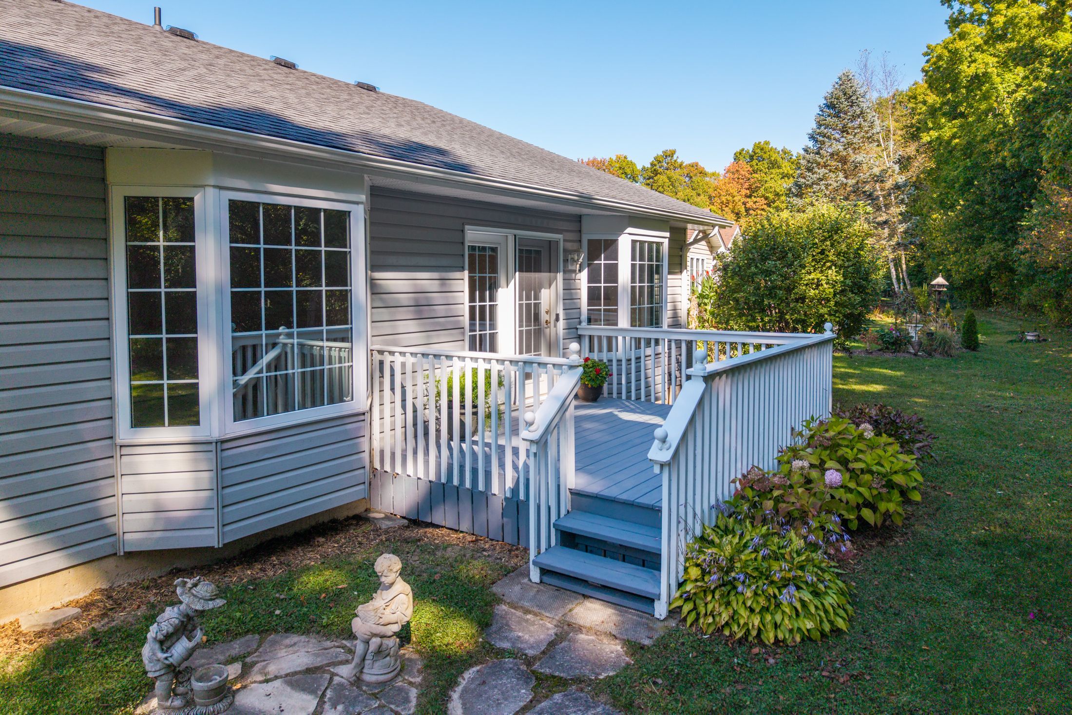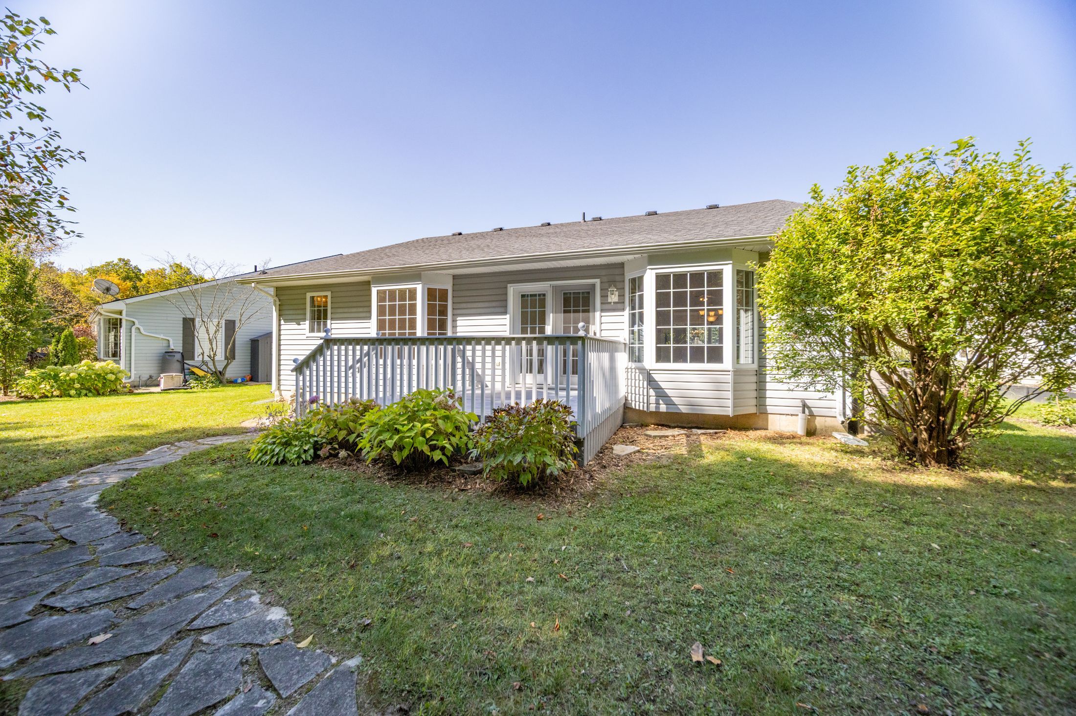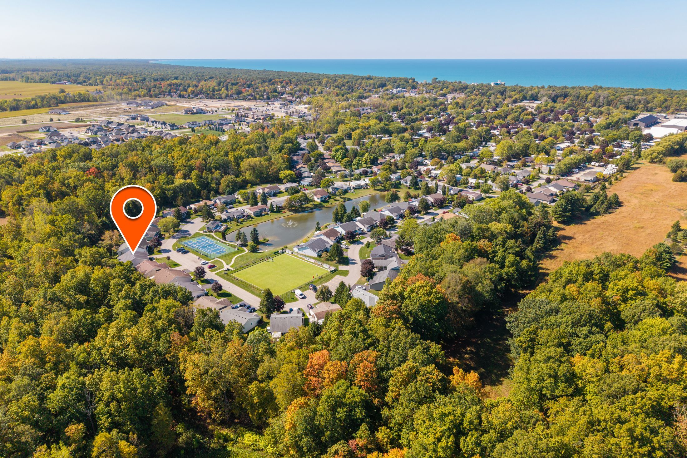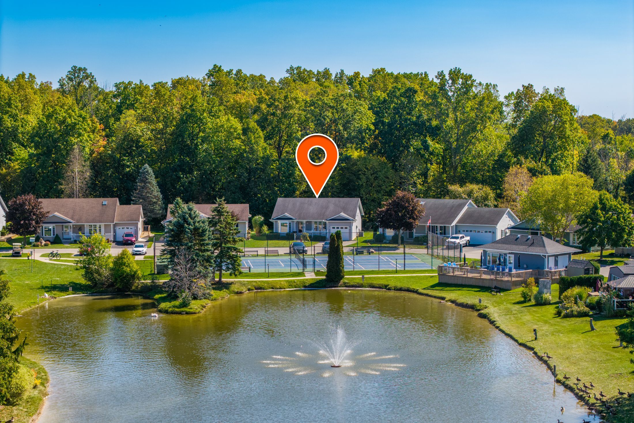 Grand cove site built home with garage backing onto mature woods | view of the water/grand cove nature pond from front of home | best price in the back row of shannon blvd we have seen in years! Come fall in love with one of the best locations in grand bend's sought after grand cove retirement community. This is rice homes' 2003 1450 sq ft huntington model and it's being offered for resale for the first time in history! This lovely property has only had its original owners, who hand-picked this prime location from the developer. Case in point, this is a top location in the cove, but the house itself is sure to impress as well! As you enter the home, you are bathed in natural light below vaulted ceilings accenting the open concept living kitchen, dining area in a way that makes it feel larger than life. Just beyond the gas fireplace, you'll walk out to an updated sundeck adjacent to one of several bay windows in the home overlooking your own private forest. The kitchen with breakfast nook is in great condition with all appliances included with the refrigerator just updated a few years ago. The 2 bedrooms and 2 full bathrooms are both very generous in size and also an excellent condition. The main level master with walk-in closet, large bay window and an ensuite bath with his and hers sinks is a rare feature in grand cove. Speaking of rare features in grand cove, not only does this site-built gem have an attached garage with inside entry to a large mudroom with laundry and laundry sink, it also has a partial height basement with a full concrete floor offering an endless amount of dry storage. The furnace, a/c, washer/dryer, and the roof were just replaced a few years ago - so much value here! Priced well below every recent site build with a garage (and even the one that just sold without a garage) this one won't last long. Land lease fees of approximately $850 a month are applicable.