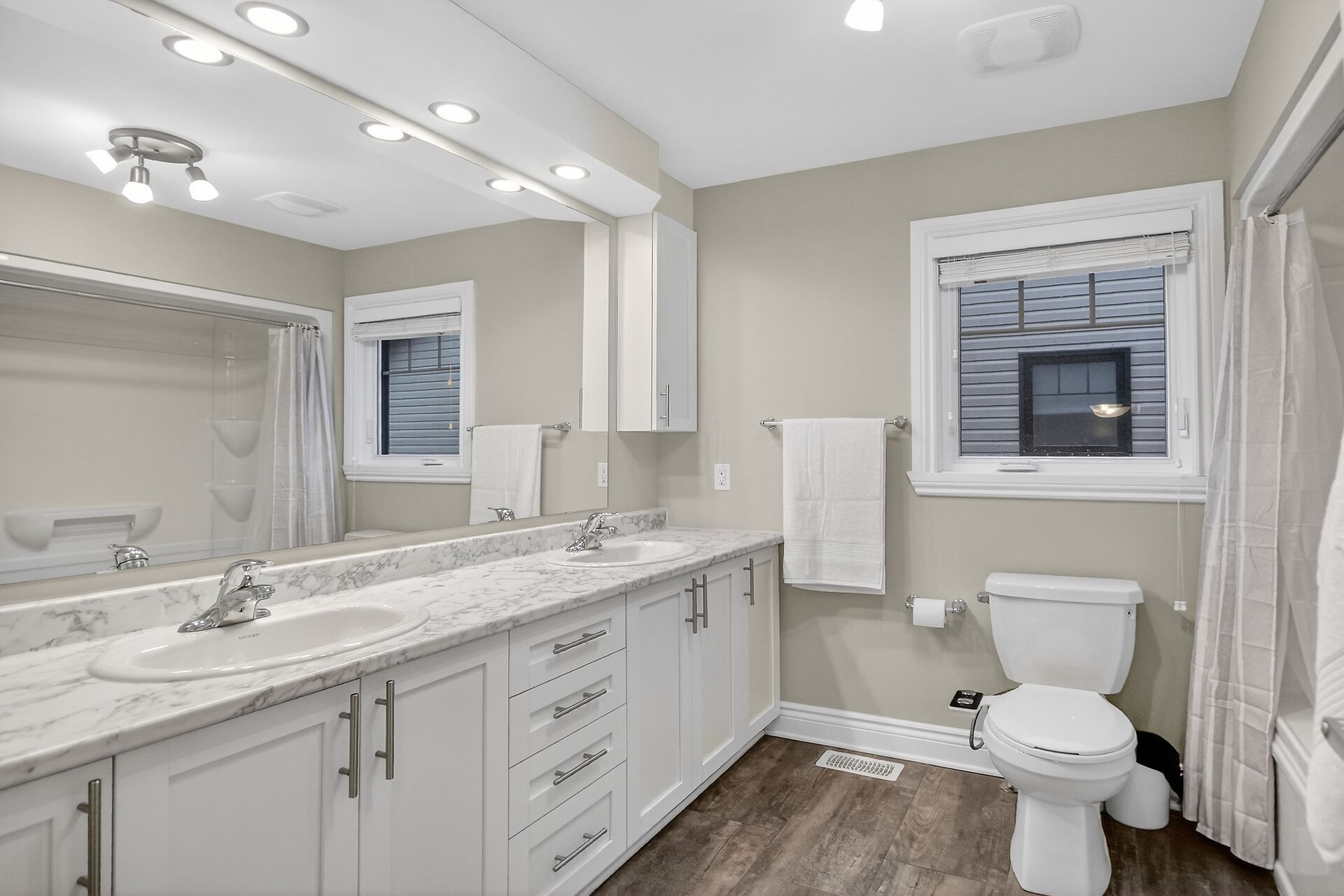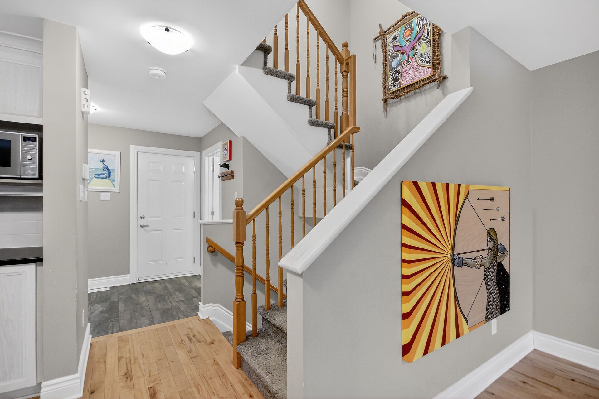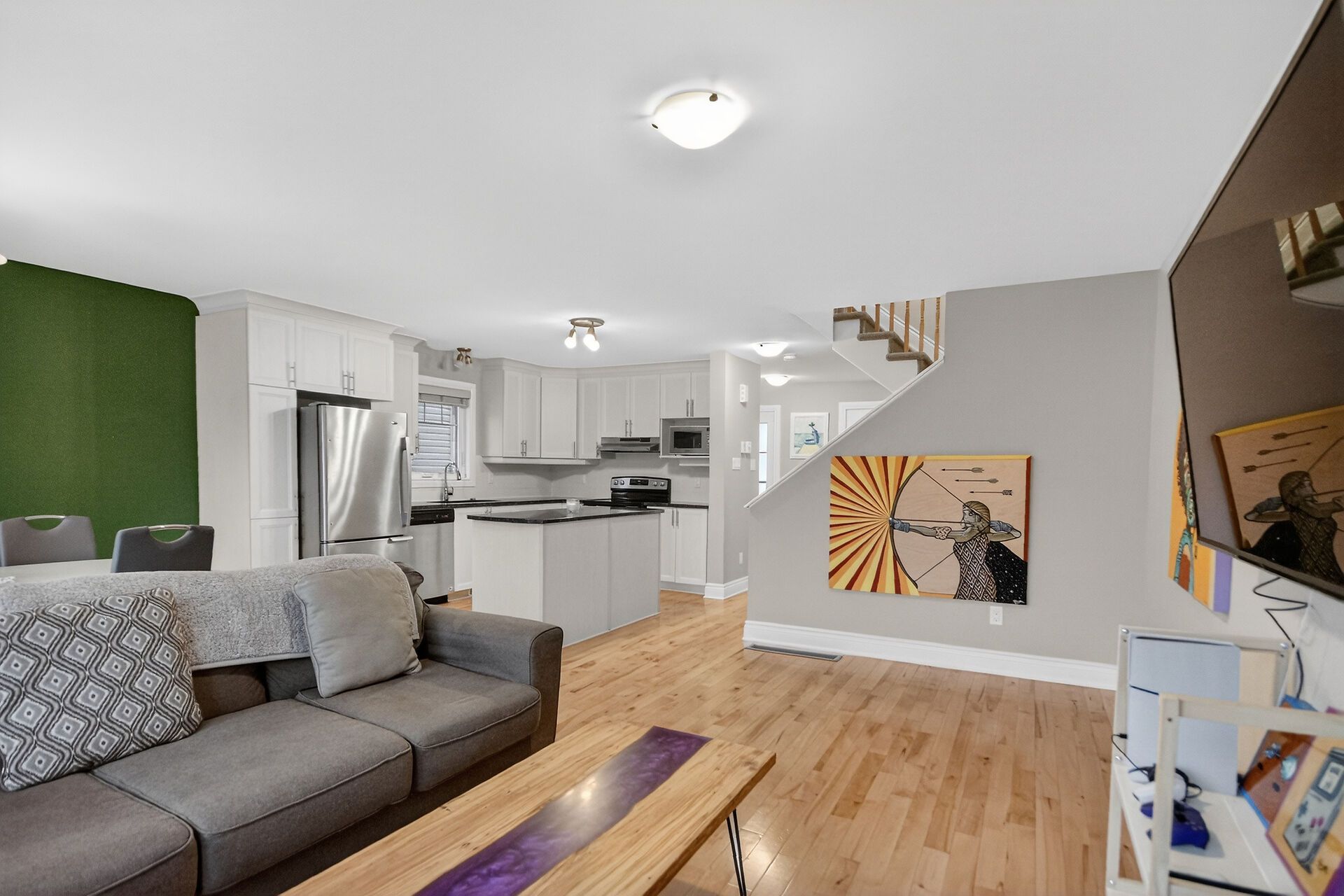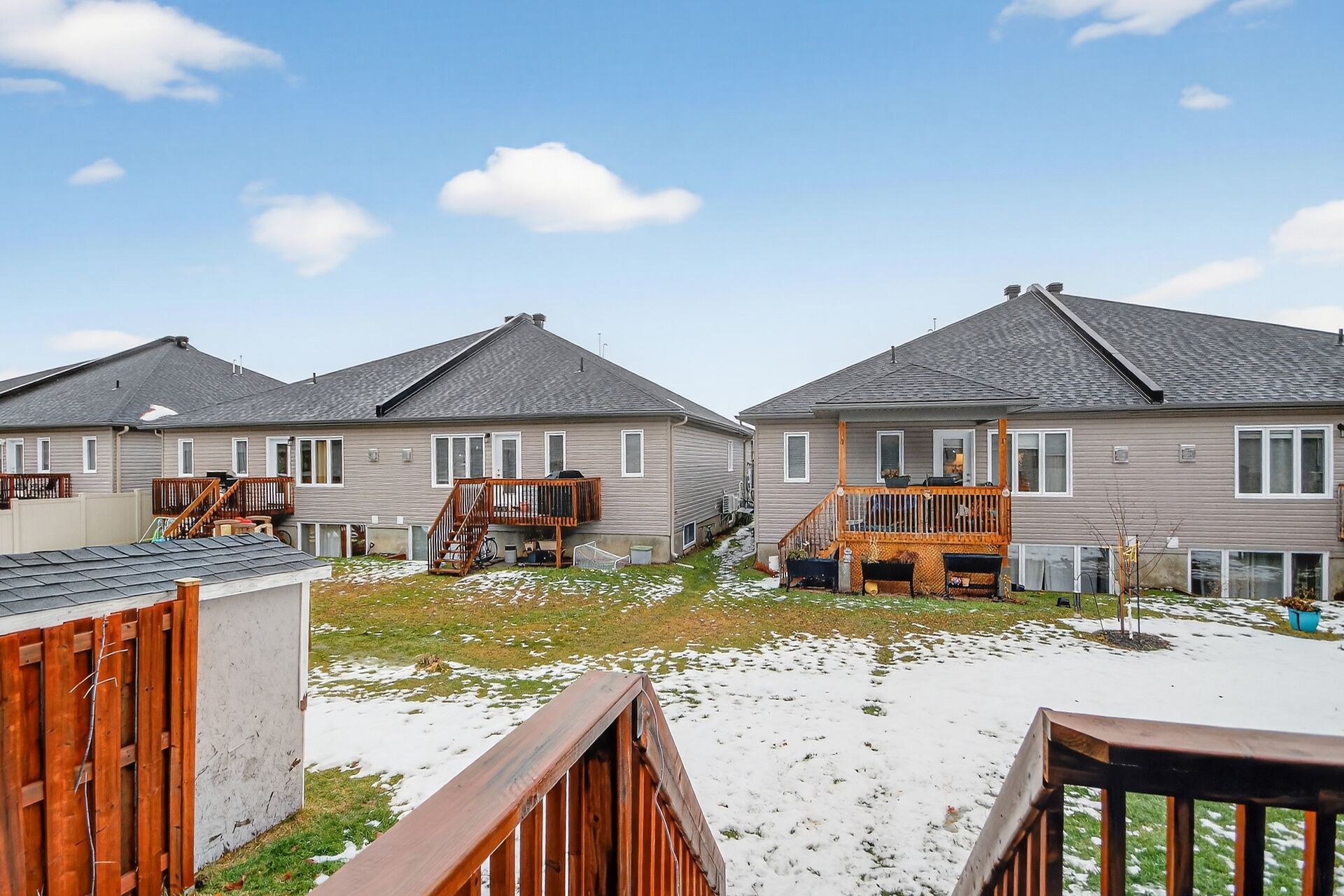 Welcome to 355 twilight ave in the sought-after sunset flats area of the town of russell-an exceptional end -unit townhome widened by 4 ft. And offering nearly 1,400 sq ft on the main level plus a finished basement . This bright 3-bedroom home features a welcoming foyer with ceramic floors and double closet, a modern kitchen with granite countertops, crown moulding above cabinets, stainless steel appliances, and hardwood flooring throughout the main level. The living and dining areas are filled with natural light from large, bright windows. The spacious primary bedroom with two closets and well-sized secondary bedrooms are complemented by a main bathroom with double sinks. The finished basement offers a large rec room and full bath, plus a unique separate door providing excellent rental or in-law suite potential. Close to parks, schools, shopping, trails, and community amenities, with easy access to downtown ottawa.