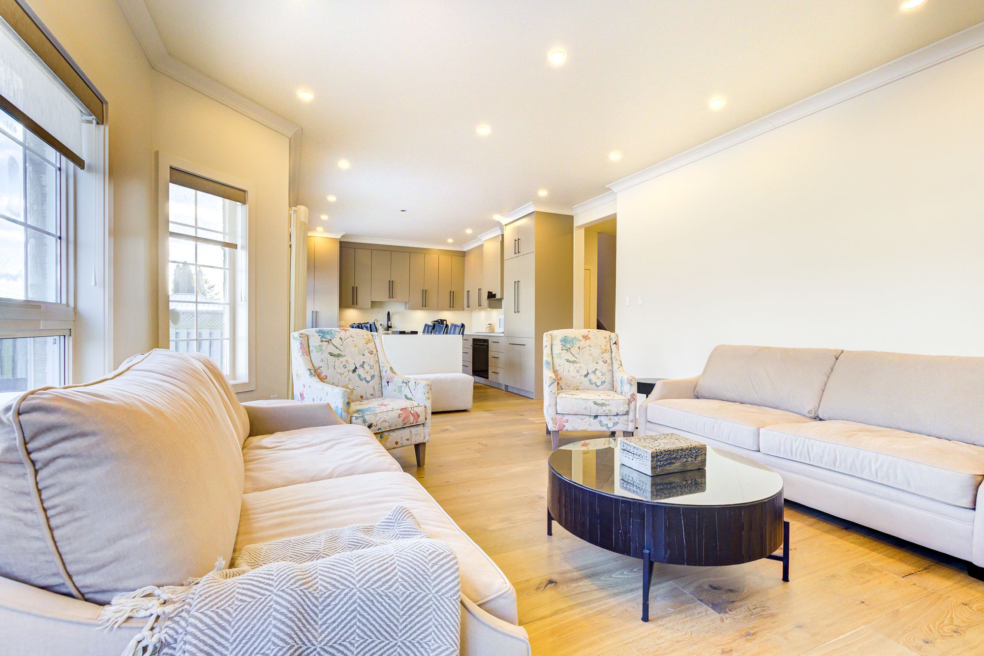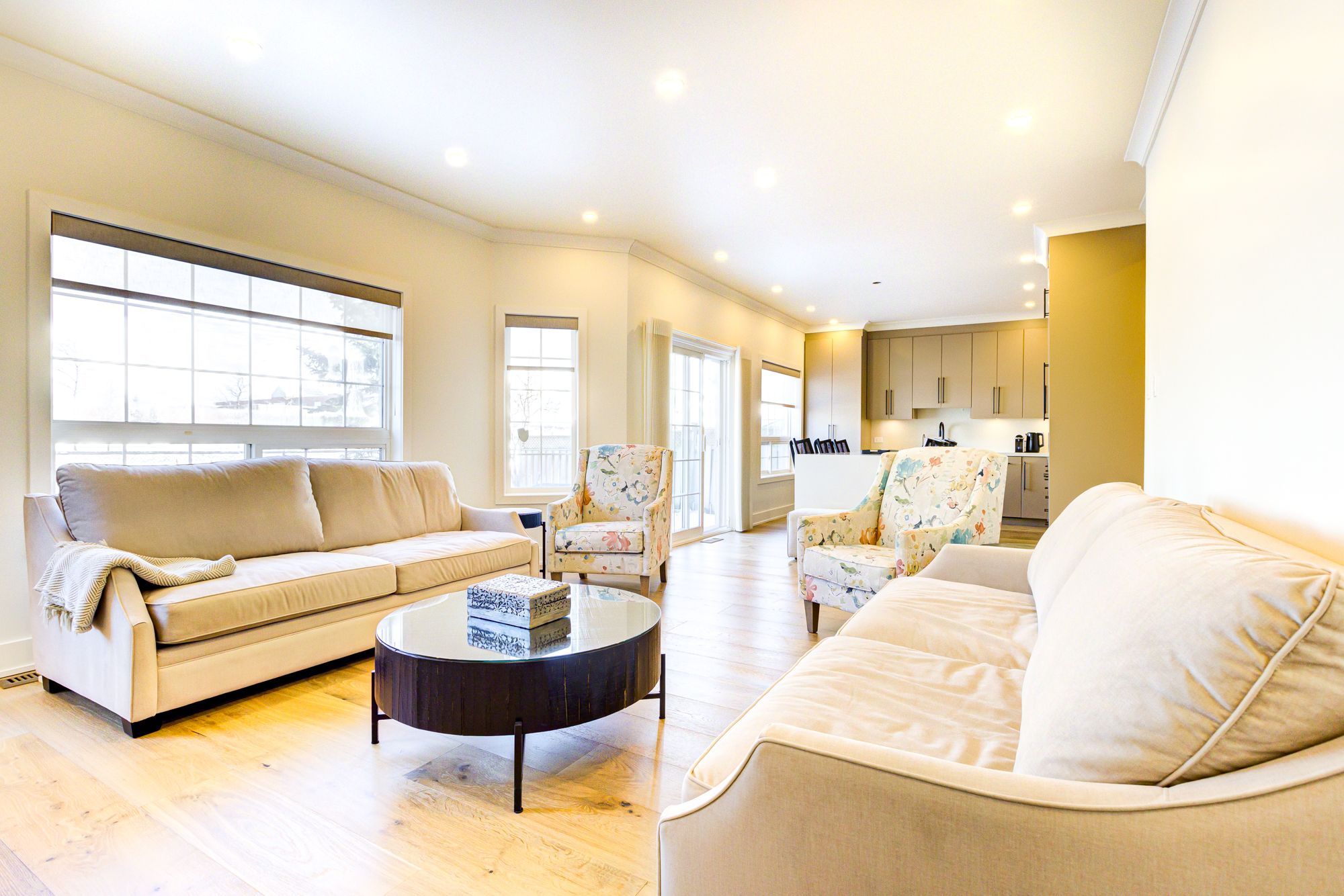 • Bright open-concept layout with hardwood floors and crown moulding.