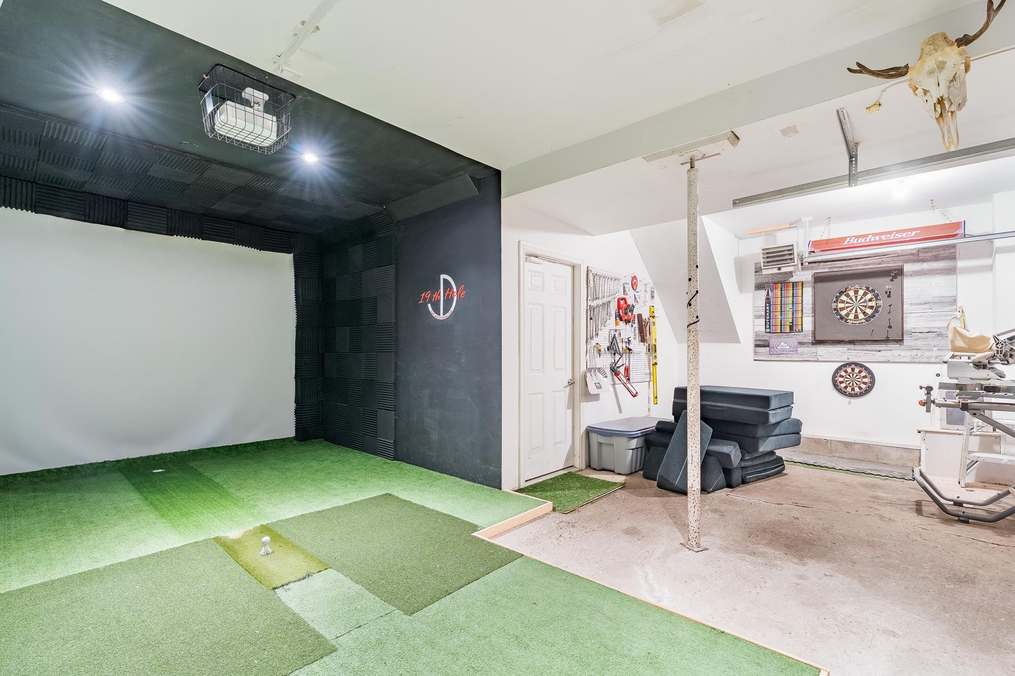 • Garage converted to an entertainment zone with a golf simulator.