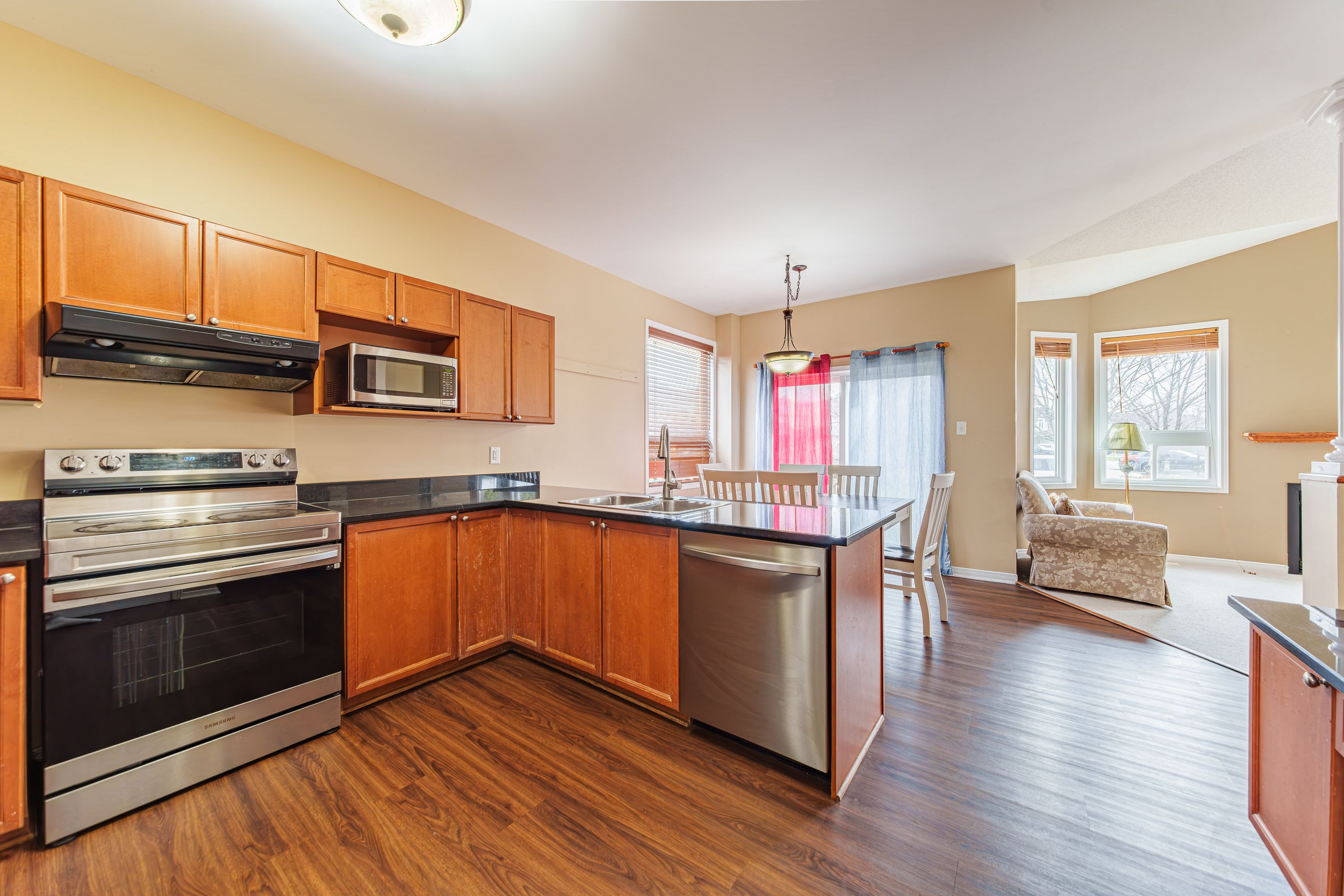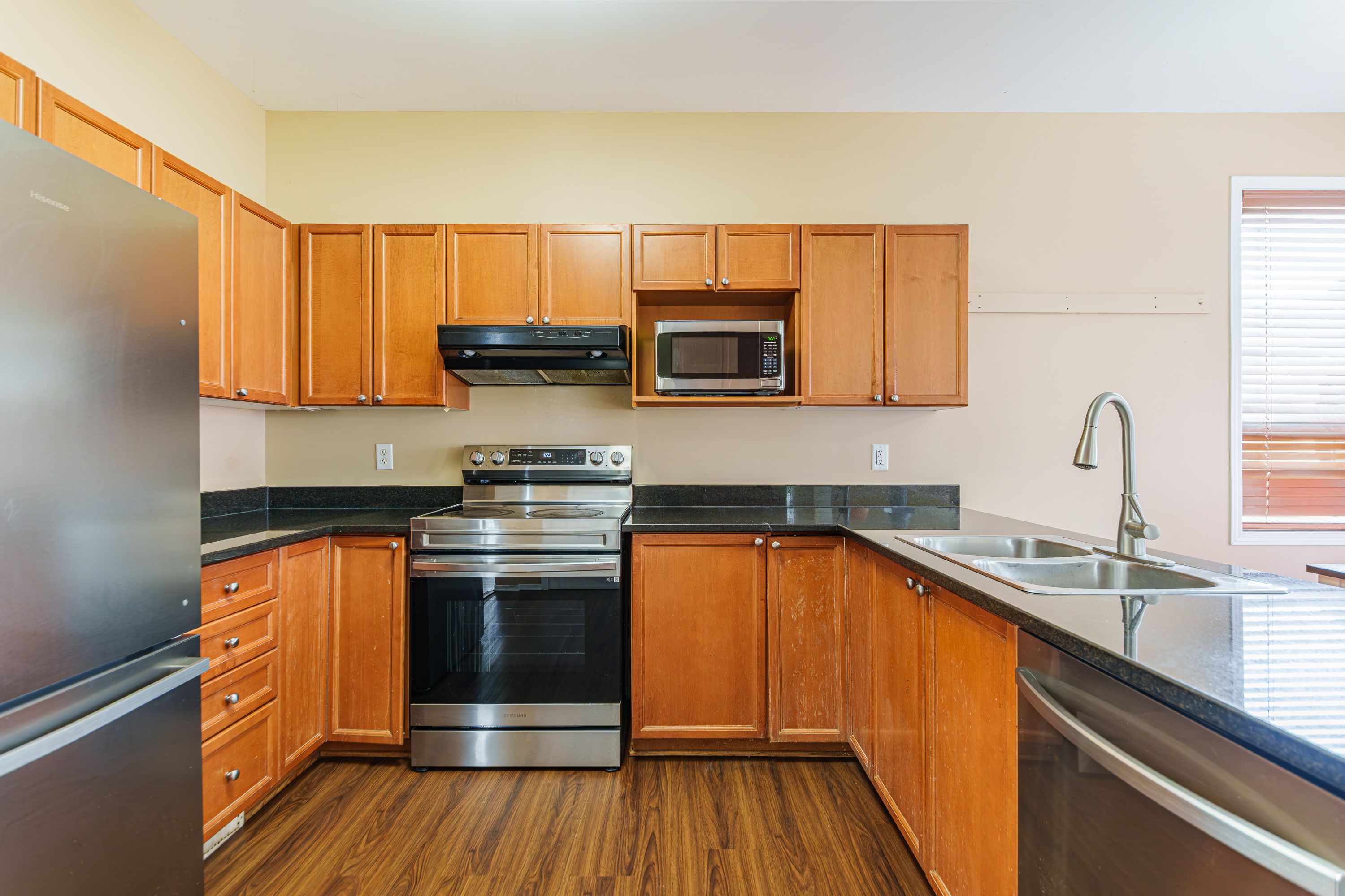 • Well-appointed kitchen with quartz countertops and stainless steel appliances.