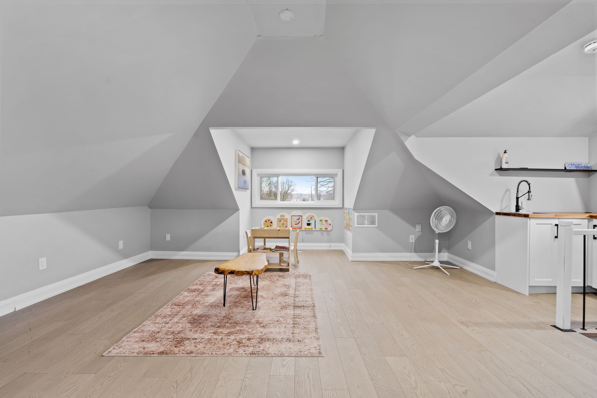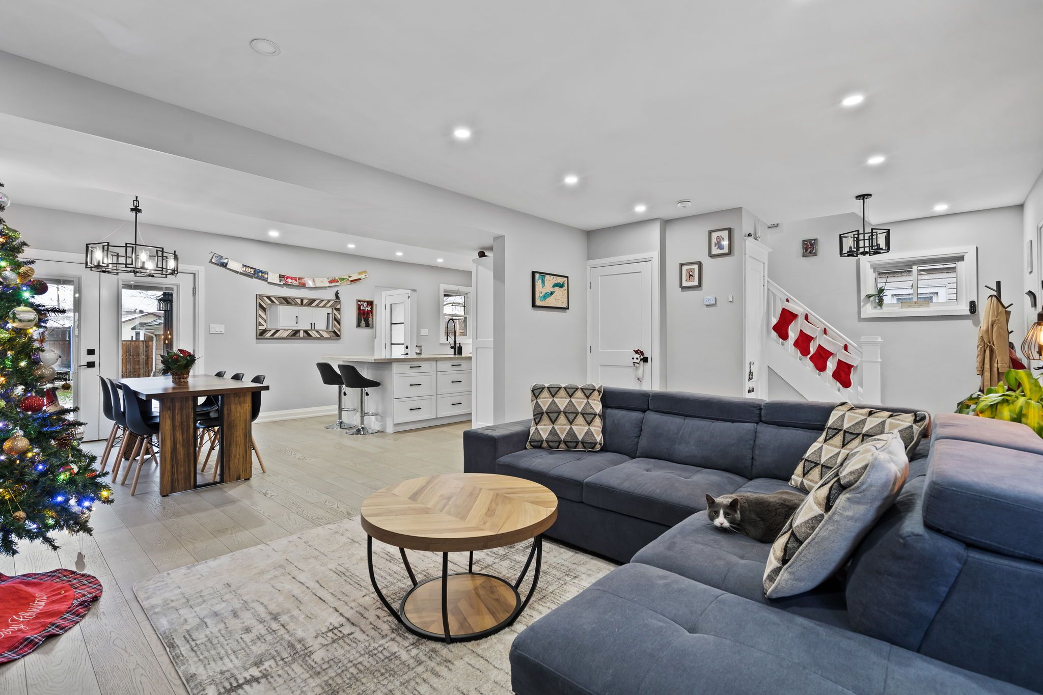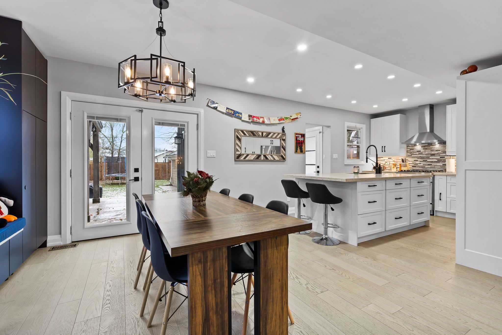 Beautifully renovated top to bottom, this gorgeous 2. 5-storey character home in the heart of chippawa showcases true pride of ownership throughout. The home welcomes you with an asphalt driveway and a stunning new wood front porch, leading inside to a porcelain tile entryway and engineered hardwood flowing through the living and dining areas. The custom kitchen features quartz countertops, a massive quartz island with sink, stainless steel appliances, and pot lights throughout on smart switches, offering an ideal layout for everyday living and entertaining. A convenient mudroom with side entry and a 2-piece bath completes the main floor, while the dining room opens to a backyard deck with gazebo. The second level offers an updated 4-piece bathroom with tub/shower and rain head, two additional bedrooms, and a primary suite with walk-out deck, large walk-in closet with custom cabinetry, and a beautiful 3-piece ensuite with glass shower and rain head. A staircase in the second bedroom leads to a fully finished loft ideal as an additional bedroom, office, playroom, or studio, complete with its own sink/kitchenette area. The basement has been thoughtfully cleaned out and refreshed, with previous insulation and vapour barrier professionally removed, walls treated as a preventative measure, and all walls, floors, and stairs freshly painted, offering a clean and functional storage or utility space. The fully fenced backyard includes a double garage with 60-amp service, water, and sewer-perfect for a workshop or hobby space. A truly exceptional home in an incredible community!
