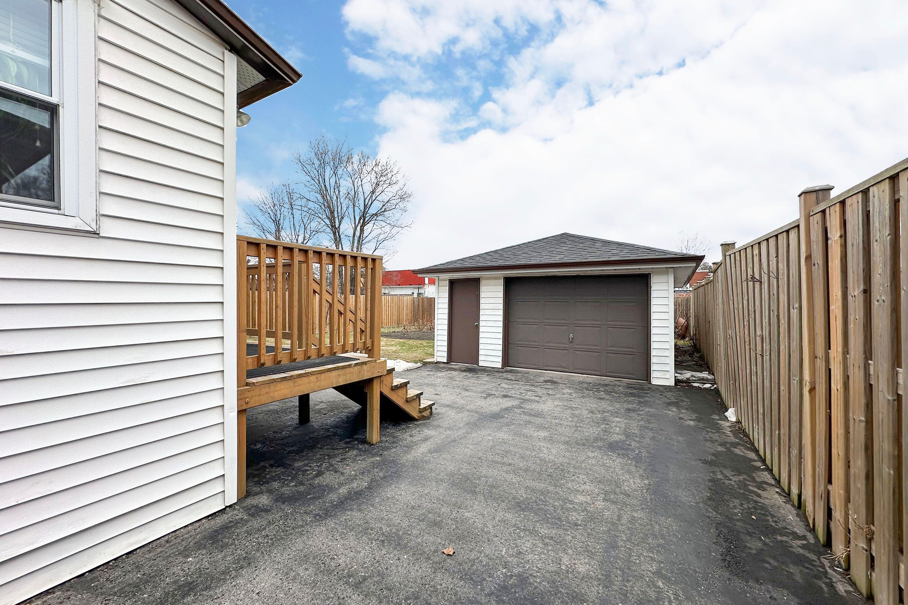 • Detached garage offers secure parking and additional storage or workshop space.