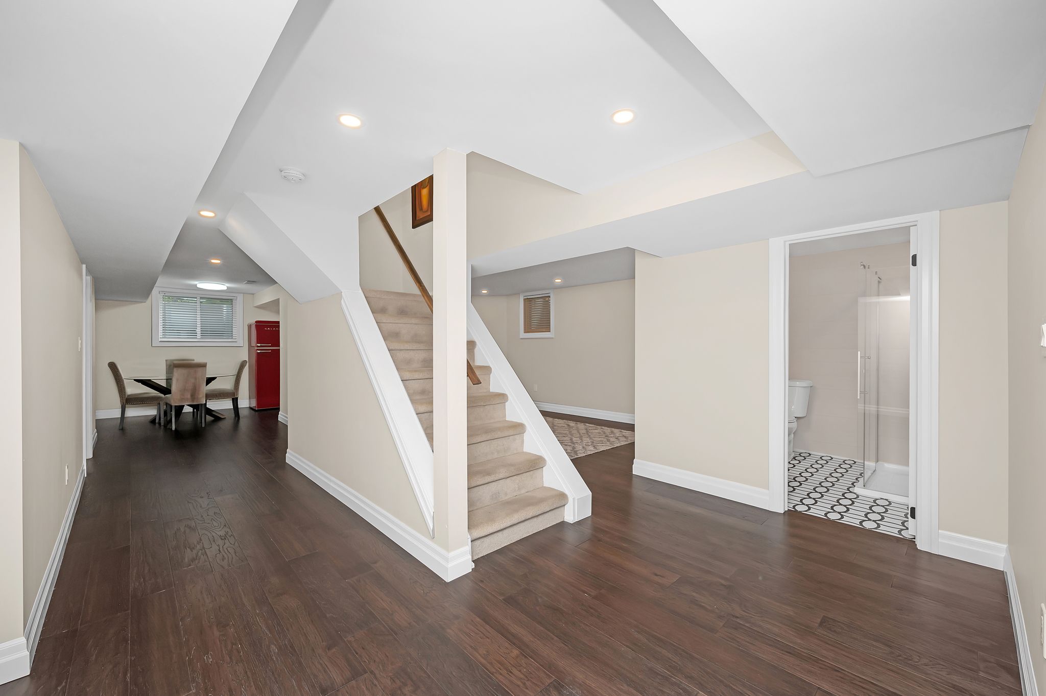 • Finished lower level with recreation area, bedroom, and kitchenette.