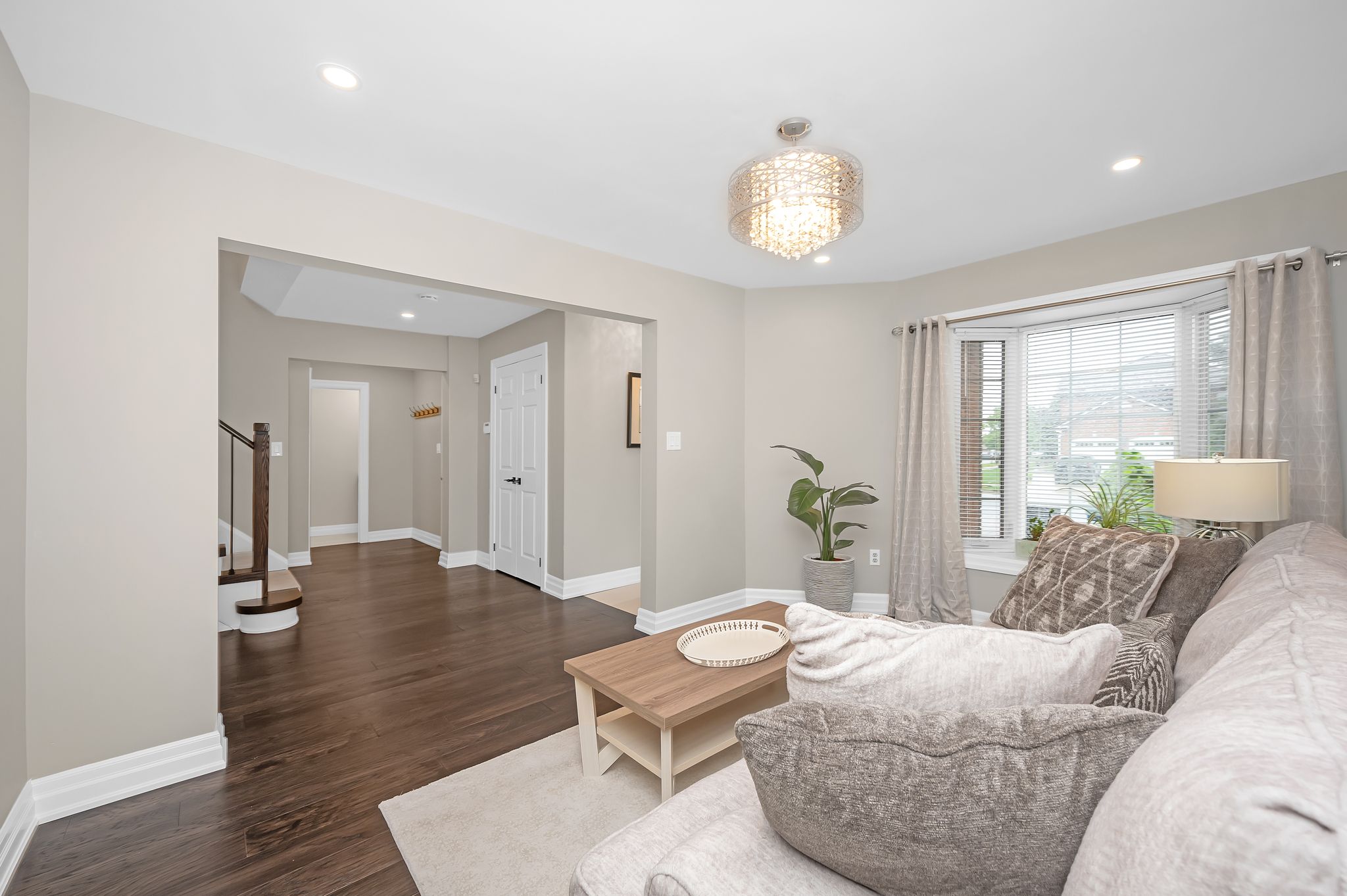 • Bright foyer leads to a sun-filled living room with bay window.