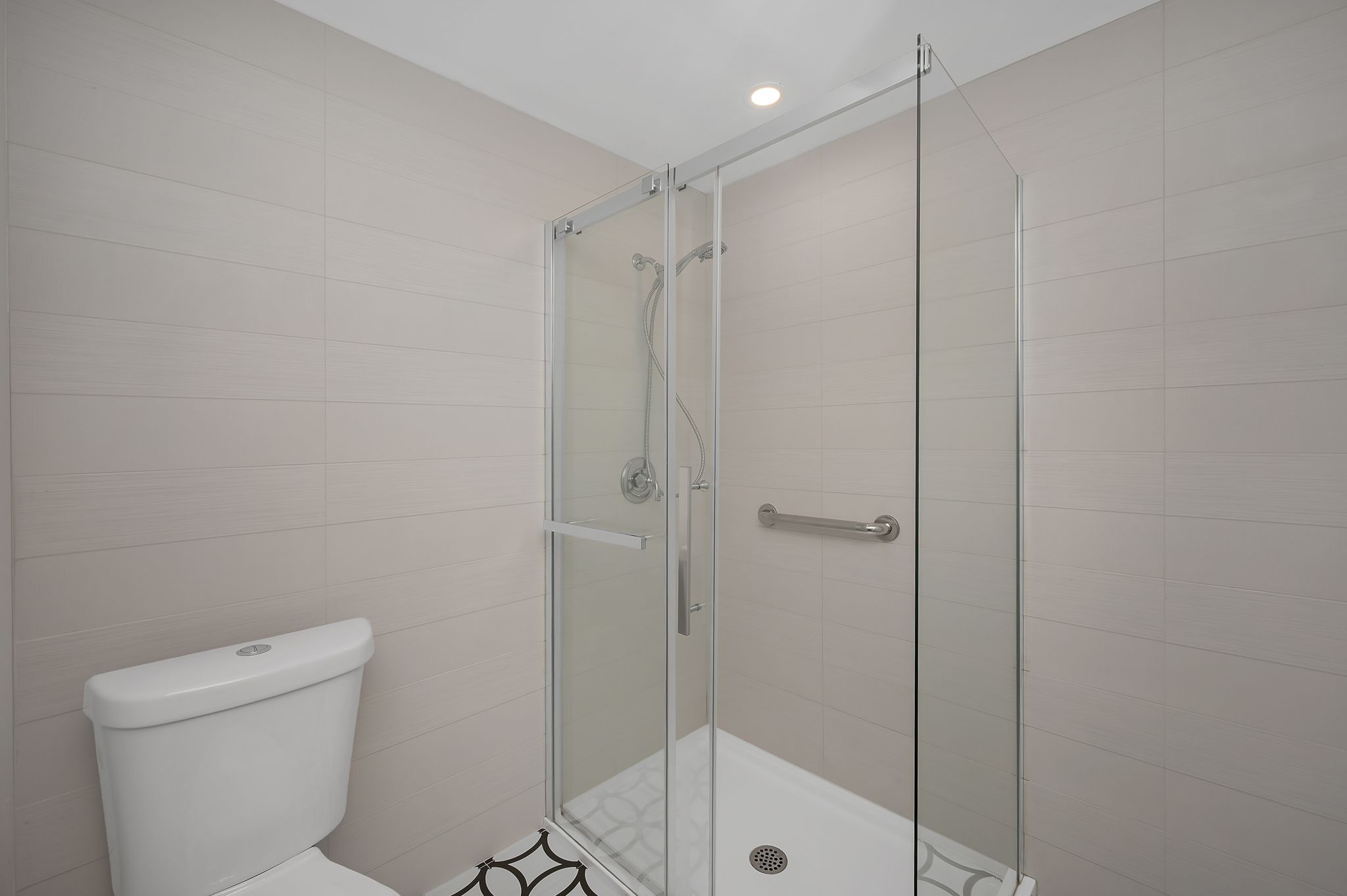 • Renovated kitchen features quartz countertops and stainless steel appliances.