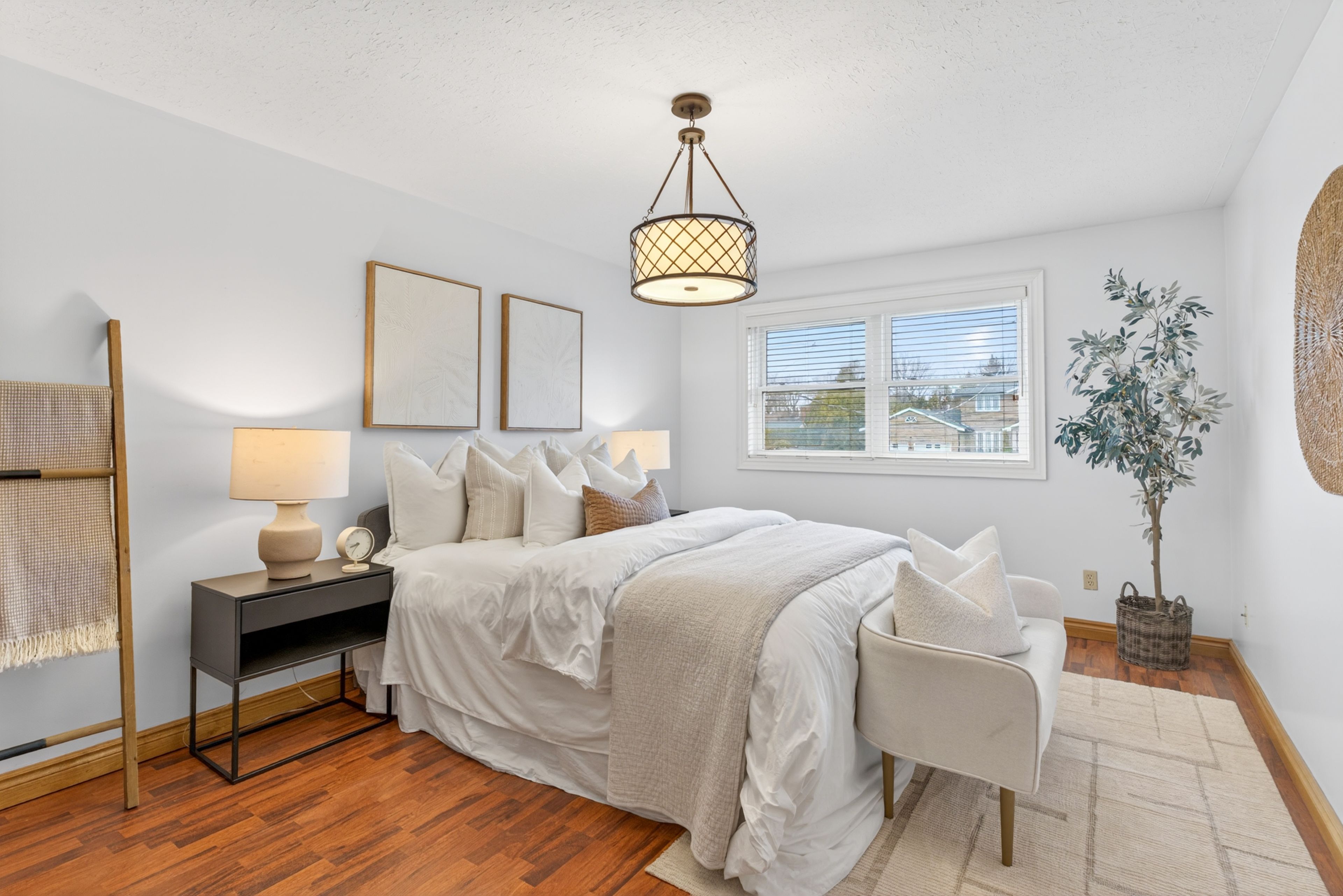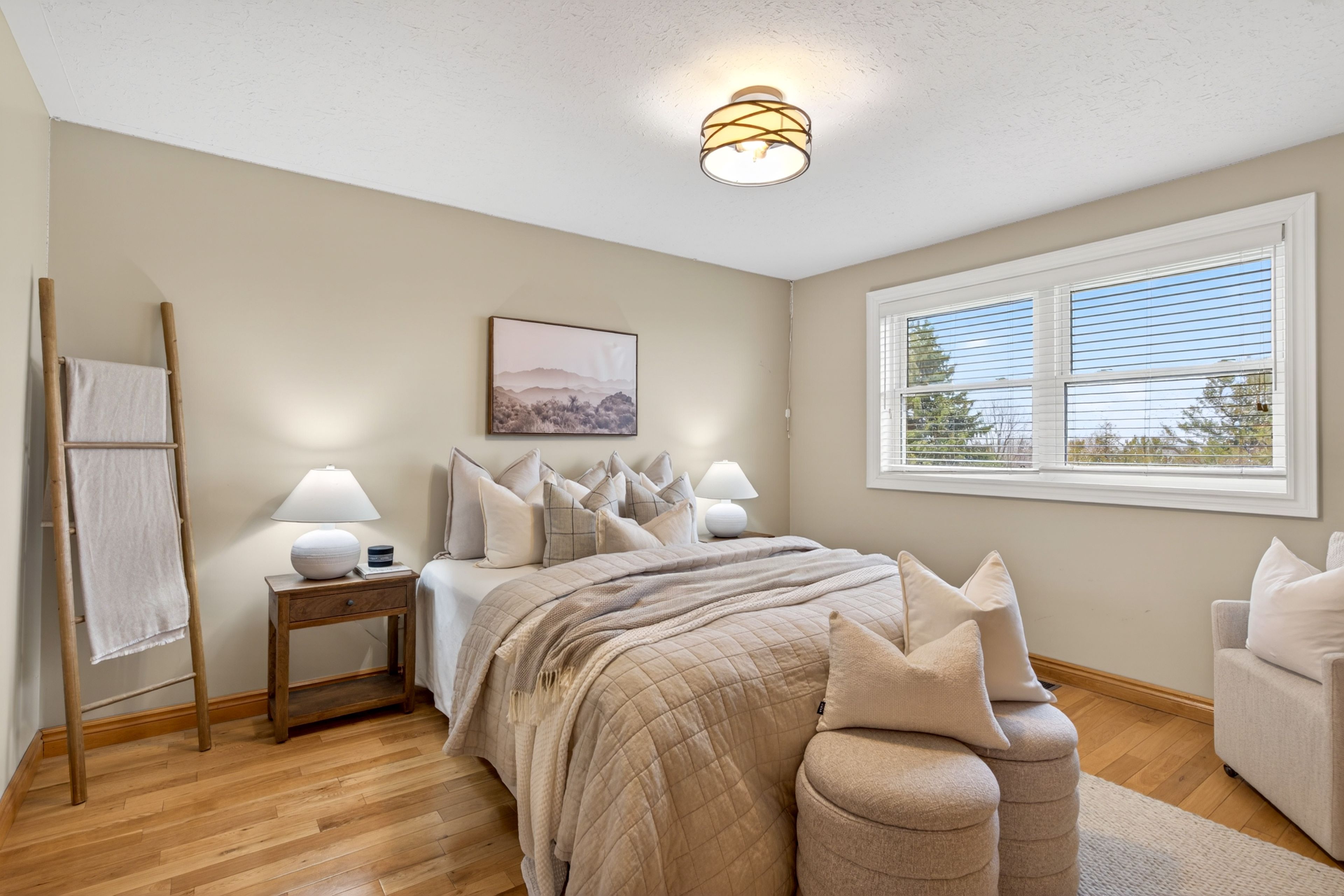 • Versatile layout with three upper bedrooms and additional lower bedroom for guests.