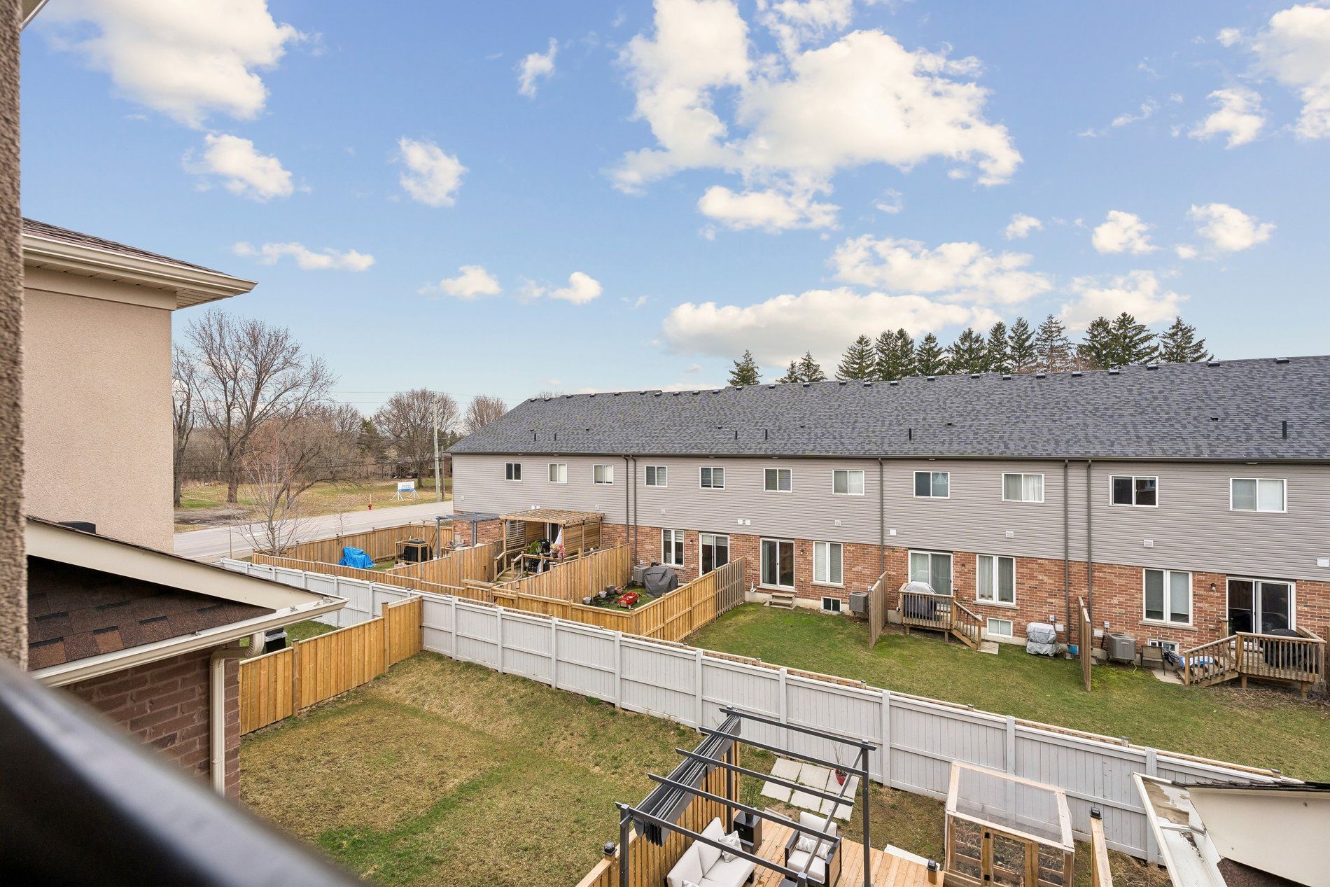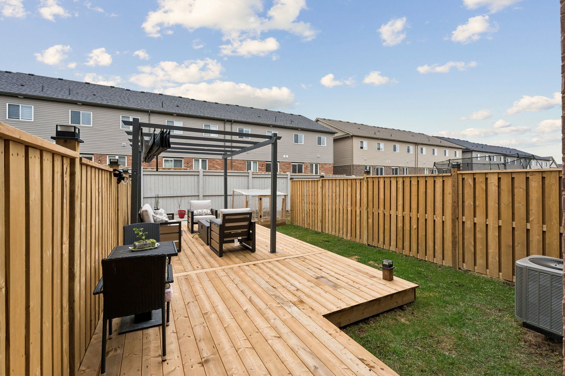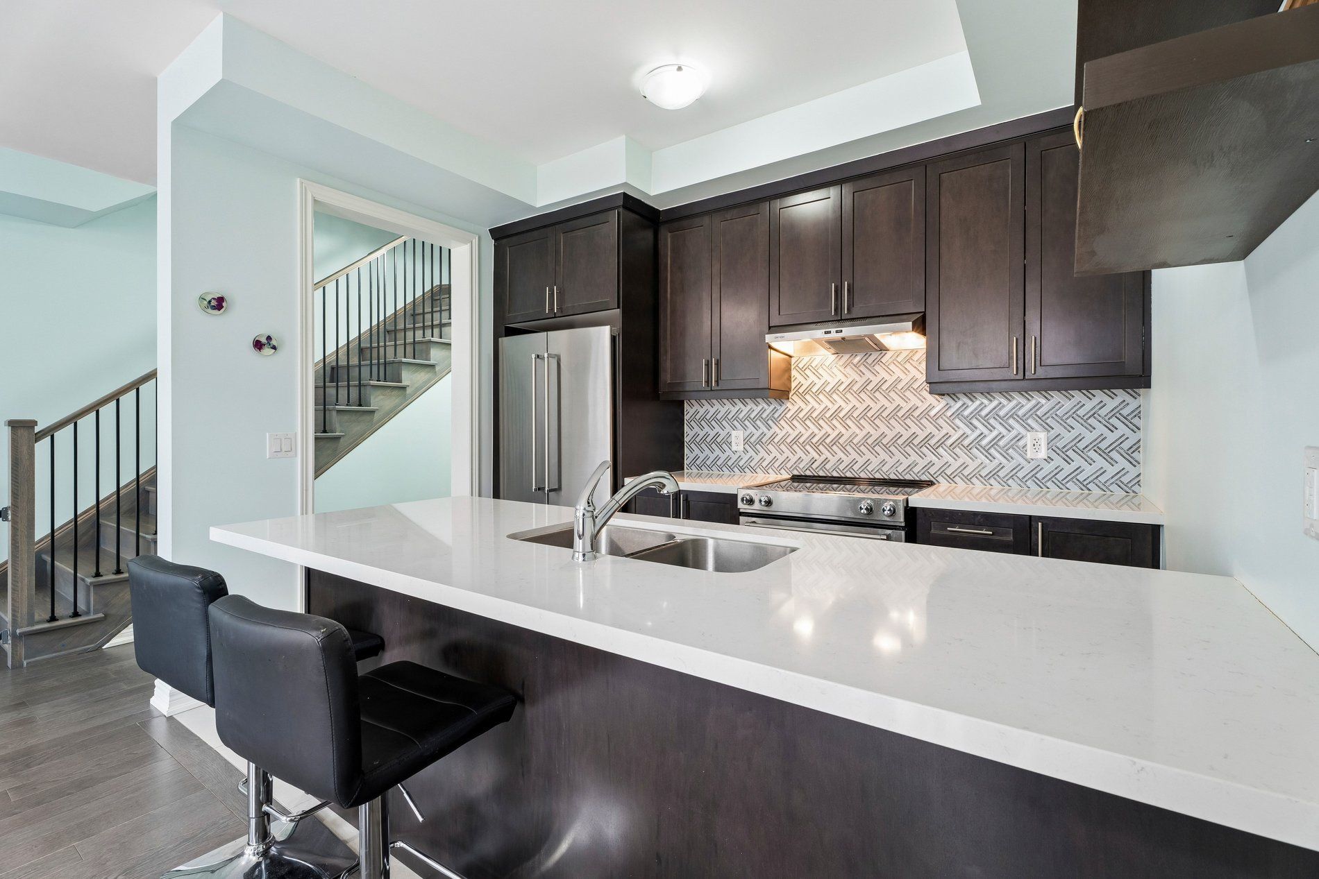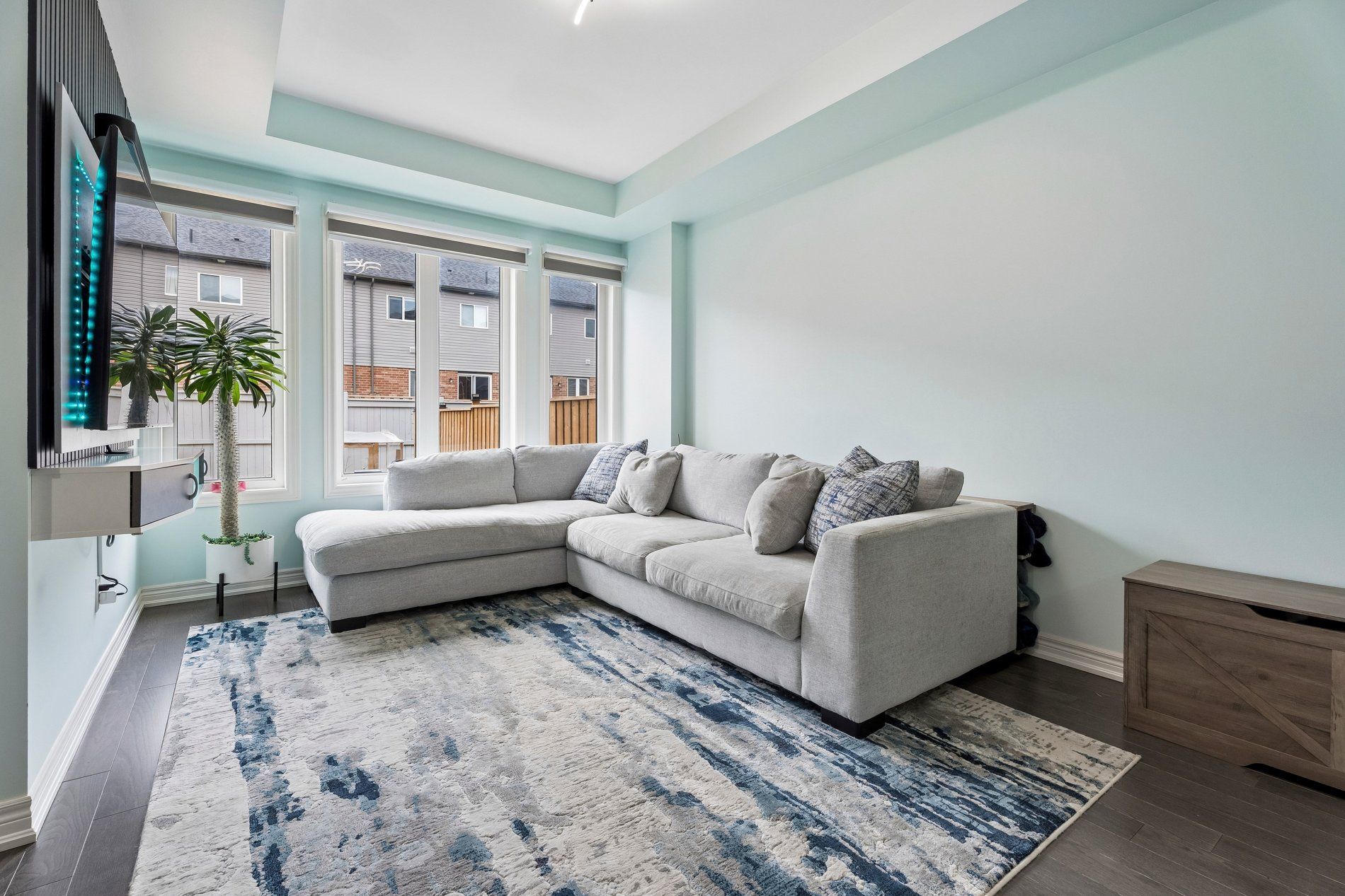Welcome to this stunning, recently built executive townhome in the heart of ancaster with a single-car garage. The main floor offers bright, open-concept living with a chef's kitchen featuring stainless steel appliances, quartz countertops, a peninsula with seating, and modern dark cabinetry. Enjoy the professionally upgraded deck, perfect for relaxing or entertaining, plus a convenient 2-piece bath and garage access. Upstairs, the primary retreat boasts a walk-in closet and spa-like ensuite, accompanied by a second large bedroom, full 4-piece bath, and dedicated office space. The third floor adds a versatile bonus suite with its own bedroom, ensuite, walk-in closet, and private balcony-ideal for guests or an alternative primary. An unfinished basement provides endless possibilities to customize. Just minutes from shopping, dining, schools, and amenities, this home combines style, comfort, and convenience-ready for you to move in and enjoy!