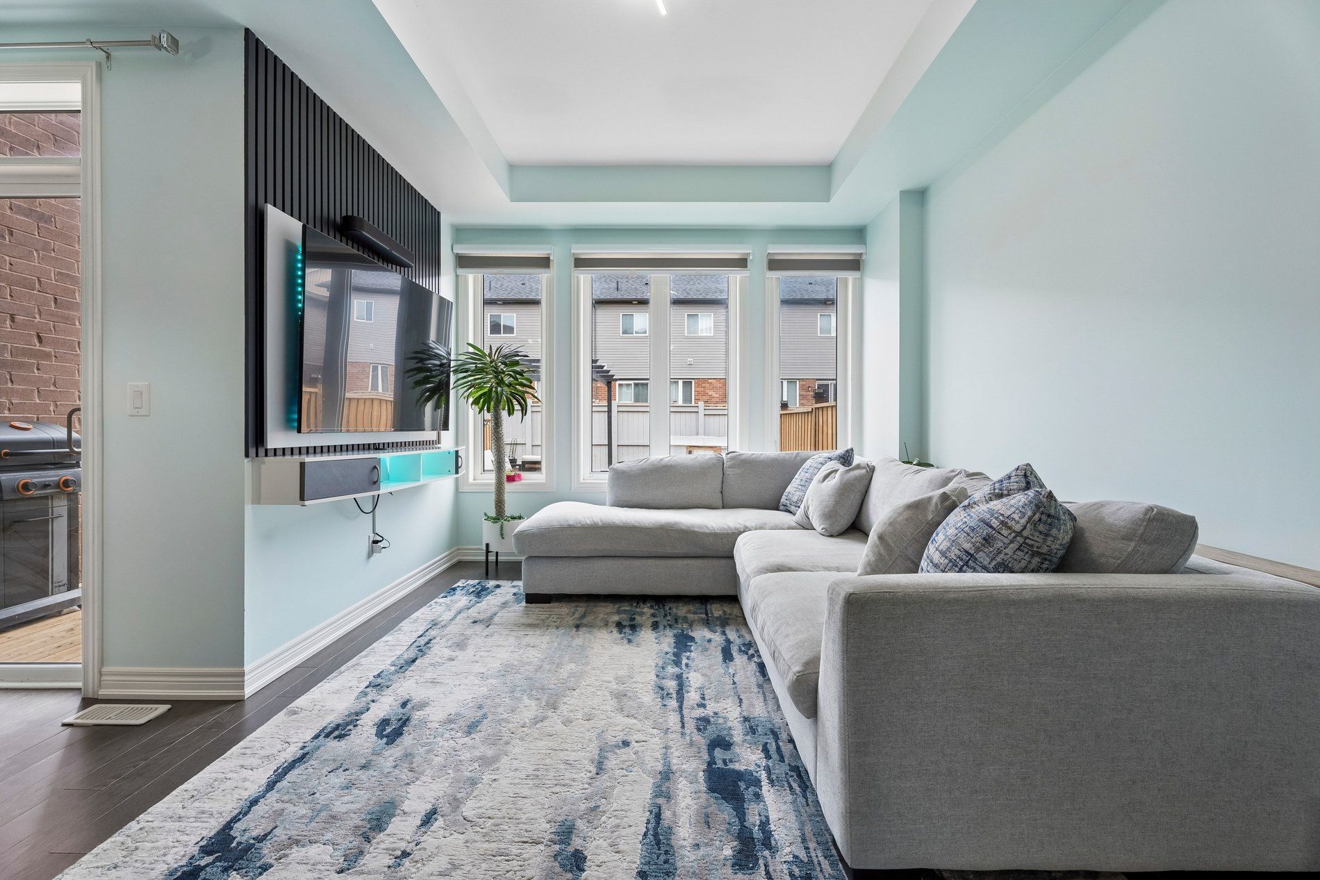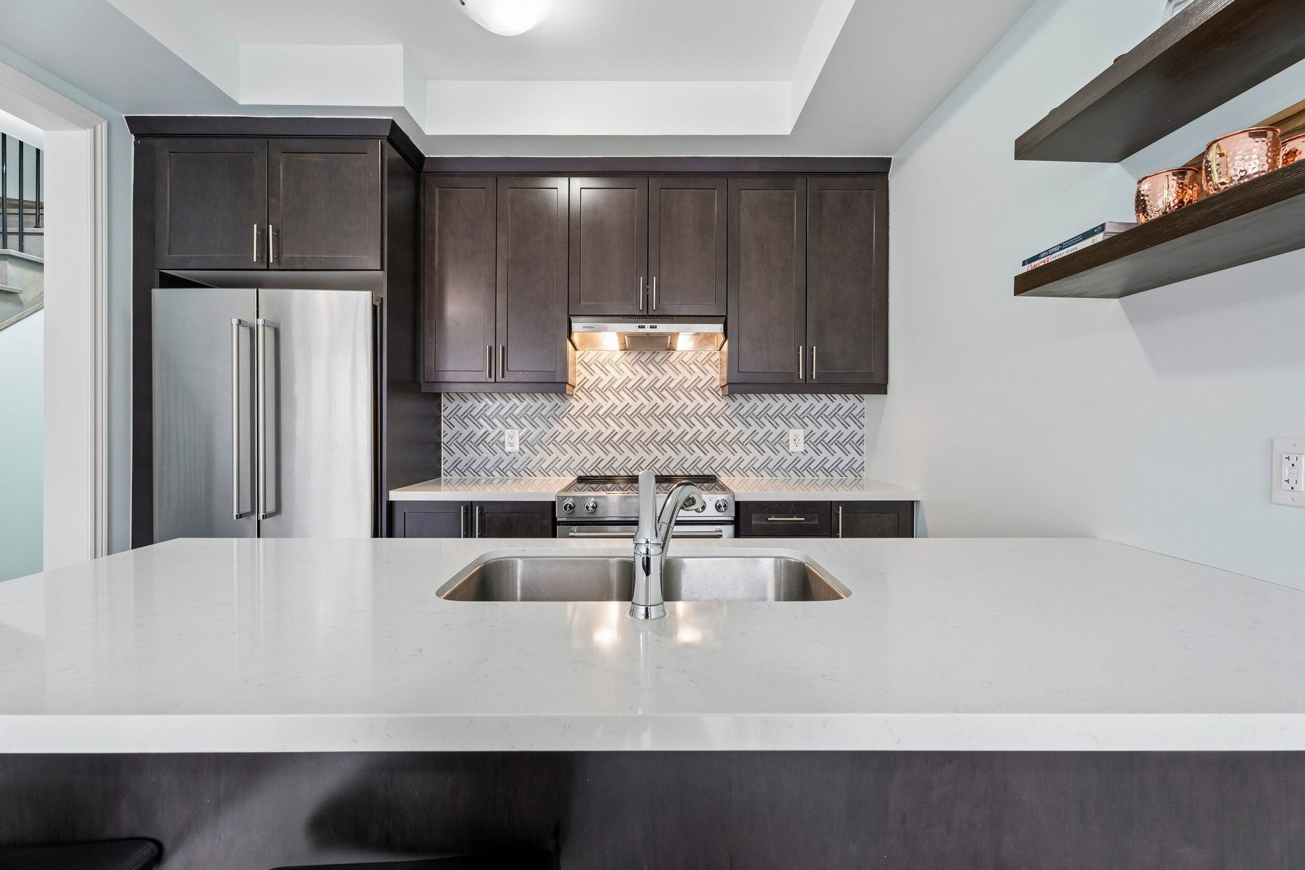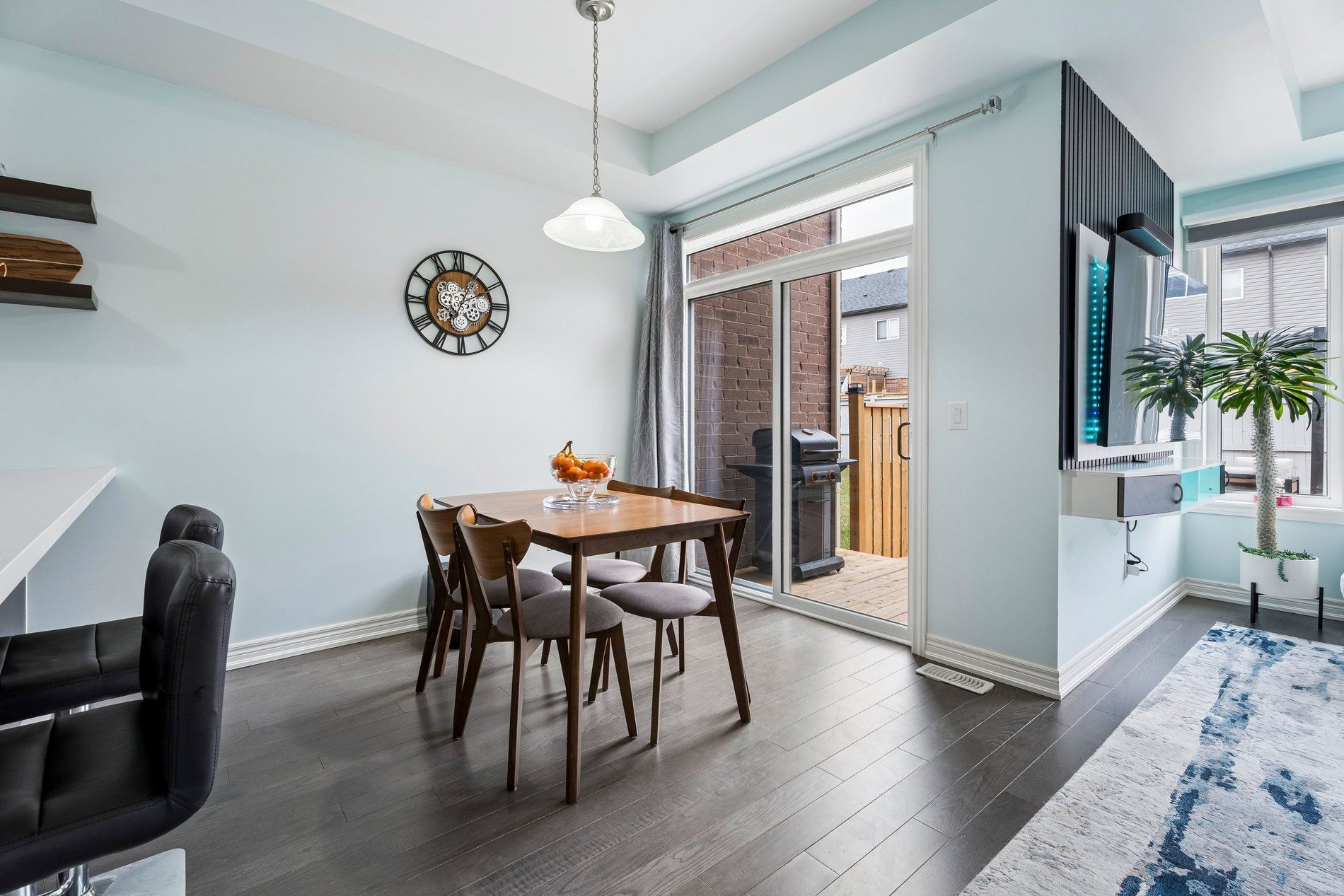 Welcome to this stunning, recently built executive townhome in the heart of ancaster with a single-car garage. The main floor offers bright, open-concept living with a chef's kitchen featuring stainless steel appliances, quartz countertops, a peninsula with seating, and modern dark cabinetry. Enjoy the professionally upgraded deck, perfect for relaxing or entertaining, plus a convenient 2-piece bath and garage access. Upstairs, the primary retreat boasts a walk-in closet and spa-like ensuite, accompanied by a second large bedroom, full 4-piece bath, and dedicated office space. The third floor adds a versatile bonus suite with its own bedroom, ensuite, walk-in closet, and private balcony-ideal for guests or an alternative primary. An unfinished basement provides endless possibilities to customize. Just minutes from shopping, dining, schools, and amenities, this home combines style, comfort, and convenience-ready for you to move in and enjoy!