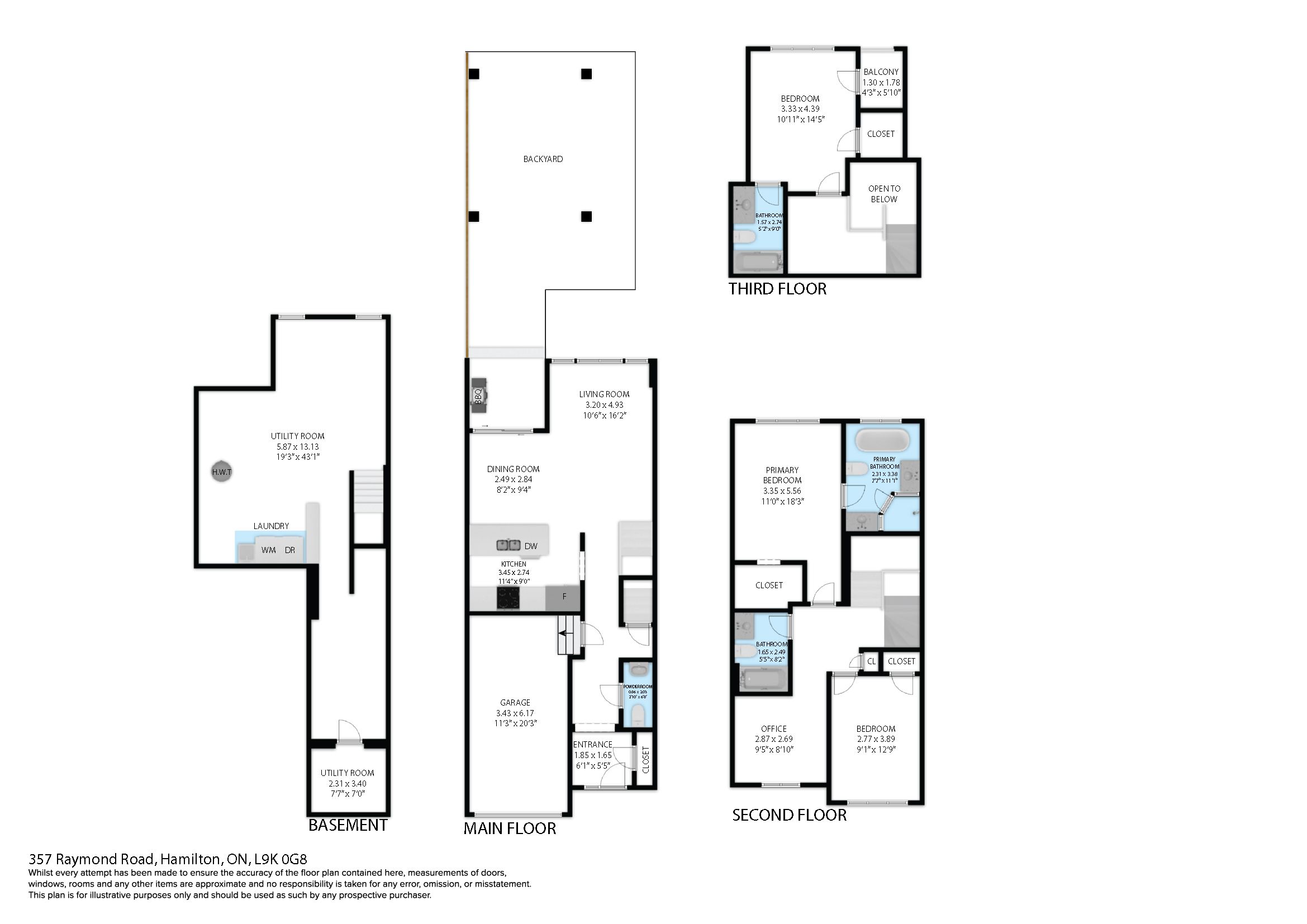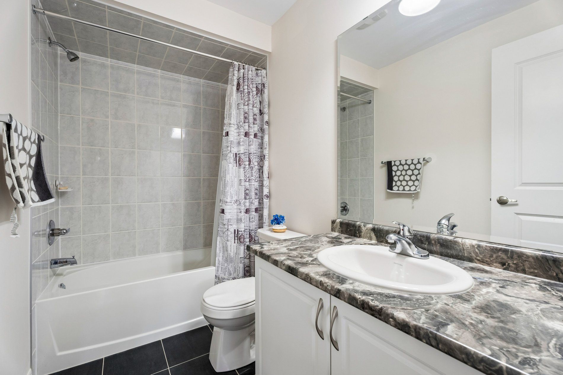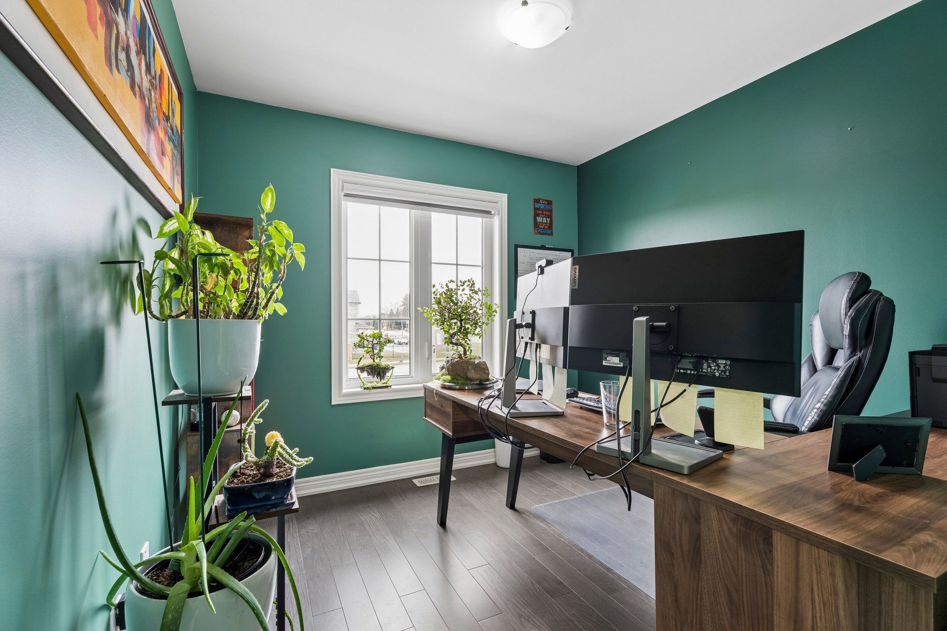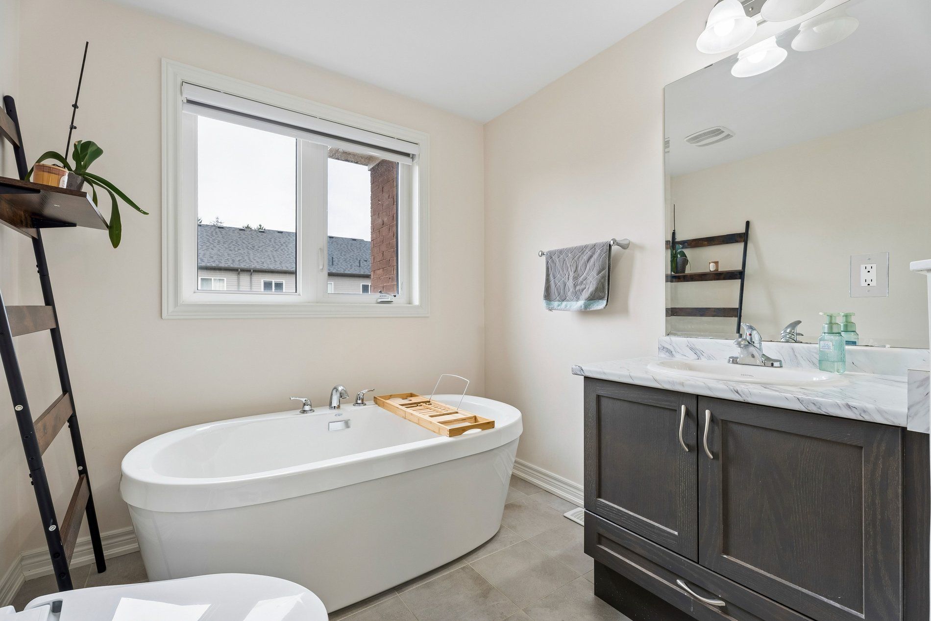 Welcome to this stunning, recently built executive townhome in the heart of ancaster with a single-car garage. The main floor offers bright, open-concept living with a chef's kitchen featuring stainless steel appliances, quartz countertops, a peninsula with seating, and modern dark cabinetry. Enjoy the professionally upgraded deck, perfect for relaxing or entertaining, plus a convenient 2-piece bath and garage access. Upstairs, the primary retreat boasts a walk-in closet and spa-like ensuite, accompanied by a second large bedroom, full 4-piece bath, and dedicated office space. The third floor adds a versatile bonus suite with its own bedroom, ensuite, walk-in closet, and private balcony-ideal for guests or an alternative primary. An unfinished basement provides endless possibilities to customize. Just minutes from shopping, dining, schools, and amenities, this home combines style, comfort, and convenience-ready for you to move in and enjoy!