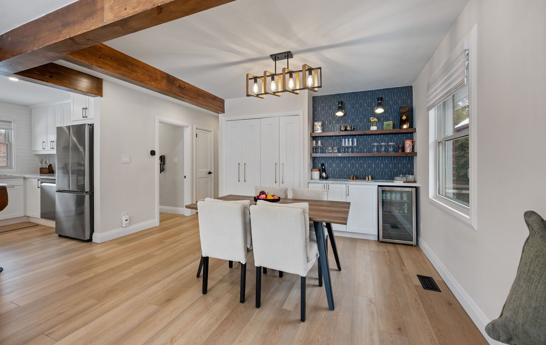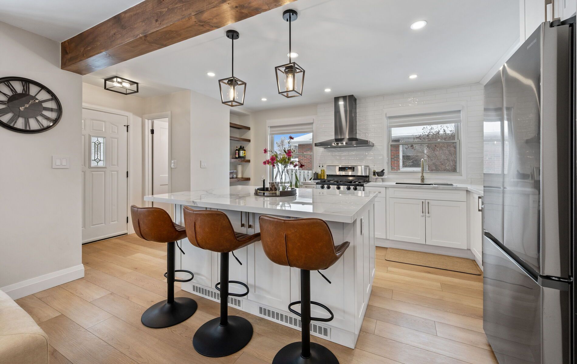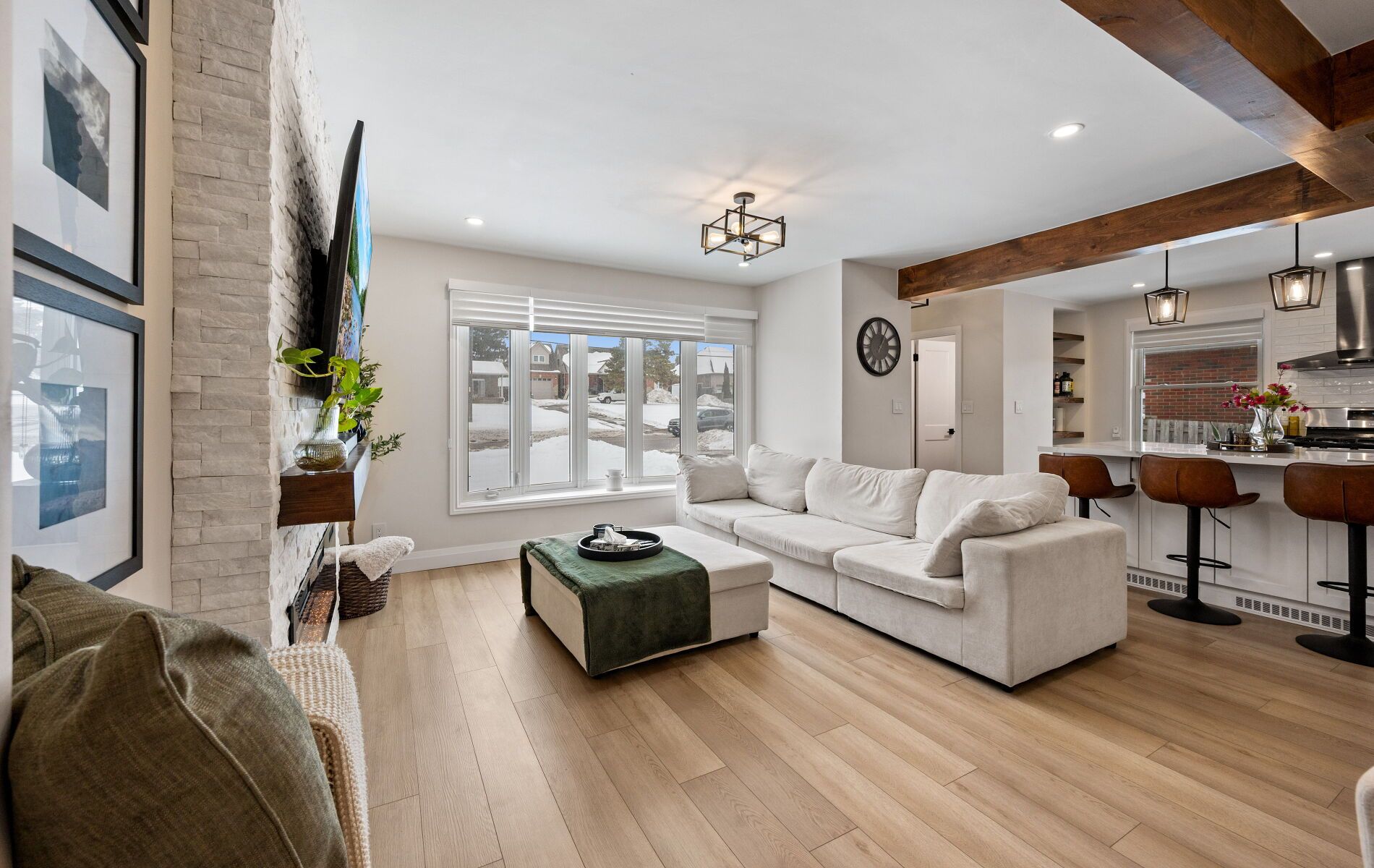 Modern comfort. Smart living. Turnkey convenience. This beautifully renovated home blends stylish upgrades with practical functionality, offering a rare turnkey opportunity for today's buyer - move in ready. Major improvements: fully renovated upper level (2024) and fully renovated lower level (2025). New appliances (2024) | stove (2022). Energy-efficient heat pump (2024) with 10-year warranty. Dual heating system: gas furnace + heat pump. Furnace upgraded (2020). No rental equipment. Carpet free. Smart-home convenience: app-controlled smart lighting with dimmers, front and rear video doorbells, remote smart lock and keyless entry, enhanced security and modern lifestyle integration. Functional living spaces: 2. 5 updated bathrooms, two laundry areas, elegant silhouette blinds, separate basement entrance, kitchen rough-ins for stove and microwave with exhaust. Ideal for in-law suite or multi-generational living. Details per area: the kitchen features an expansive open-concept layout for dining and living-ideal for entertaining-with an extra-wide island, breakfast bar seating, generous under-island storage, built-in recessed pantry with custom shelving, pull-out garbage, recycling and spice compartments, usb-enabled outlets, all new 2024 appliances (stove 2022), under-cabinet valance lighting, pot lights, designer island fixtures, and fully dimmable remote-controlled lighting. The living area includes a powder room and sit-down closet at the entrance, an electric fireplace with custom stone accent wall designed for tv mounting, a custom mantle crafted to match the home's aesthetic, and dimmable remote-controlled lighting. The dining area offers a built-in bar with custom shelving, mini-fridge, feature accent wall, and dimmable remote-controlled lighting. The main-floor laundry features a central laundry area discreetly enclosed, butcher-block countertop with cabinetry, and hanging rods. More features at inclusions.