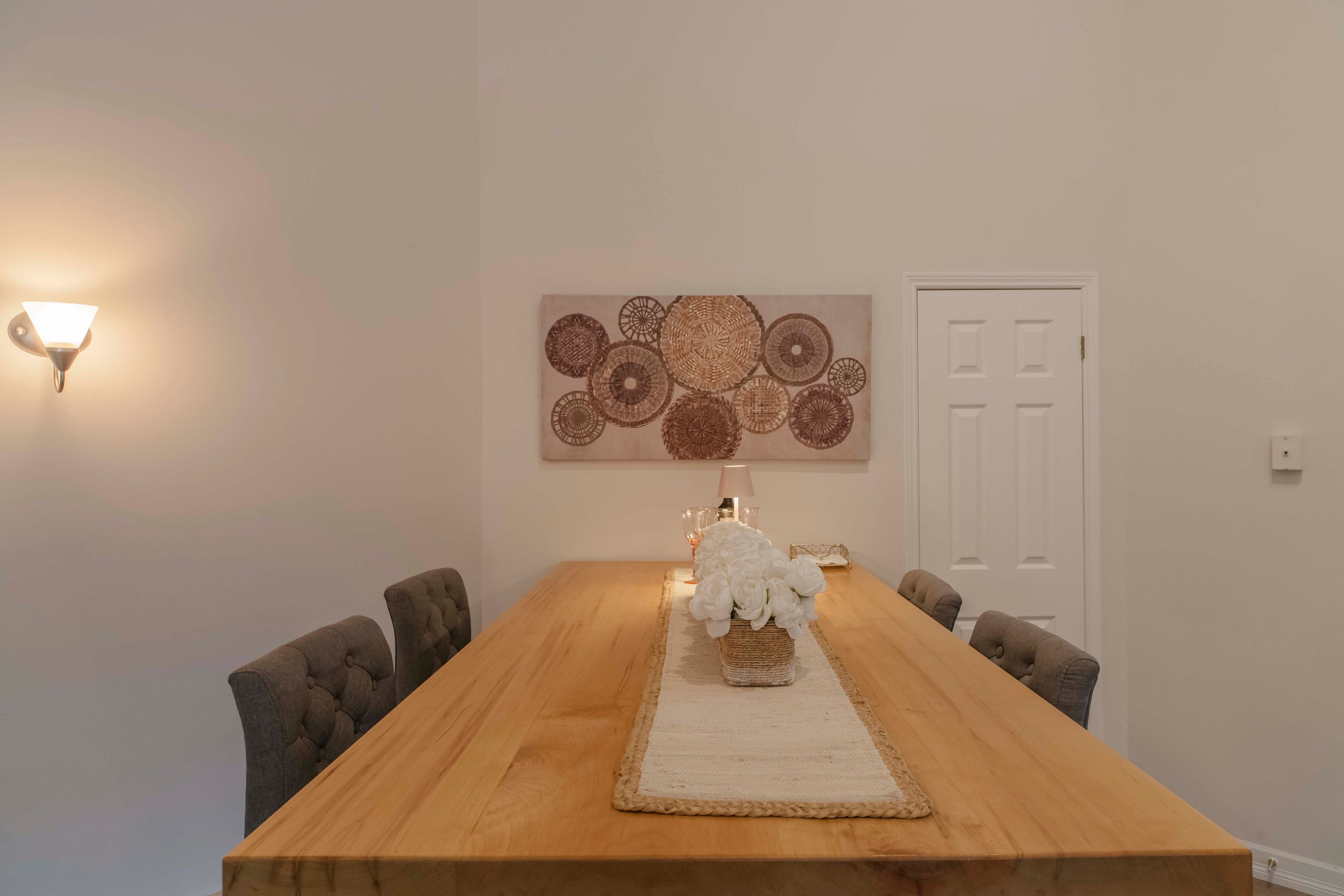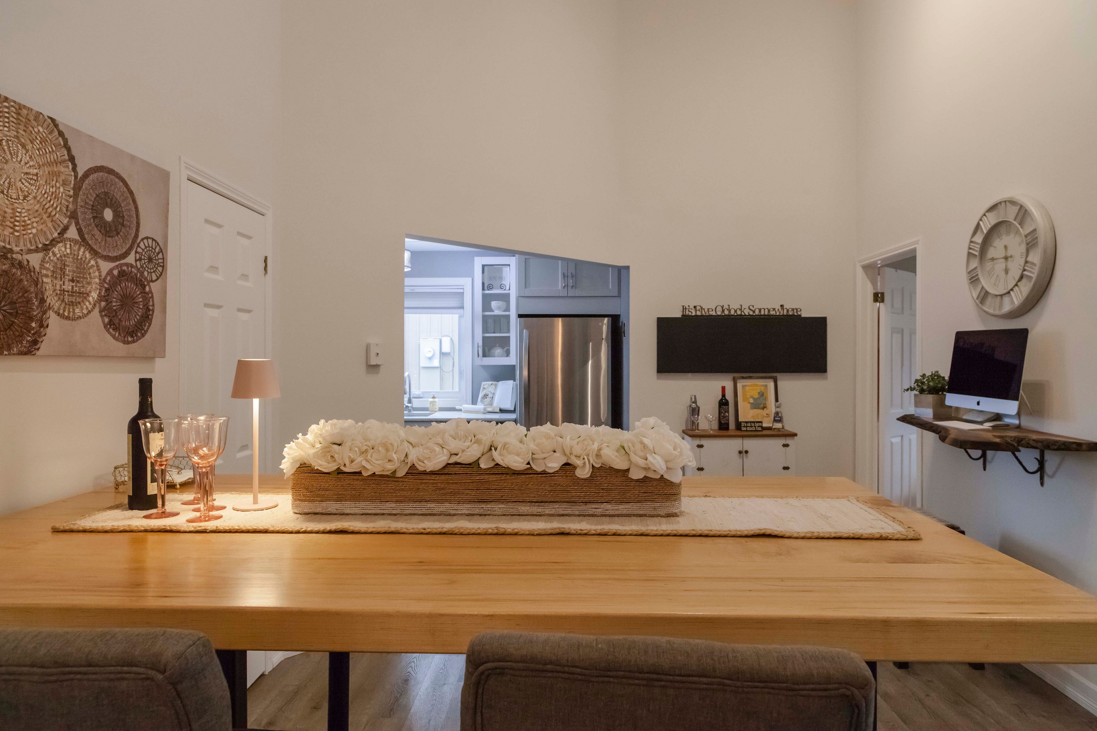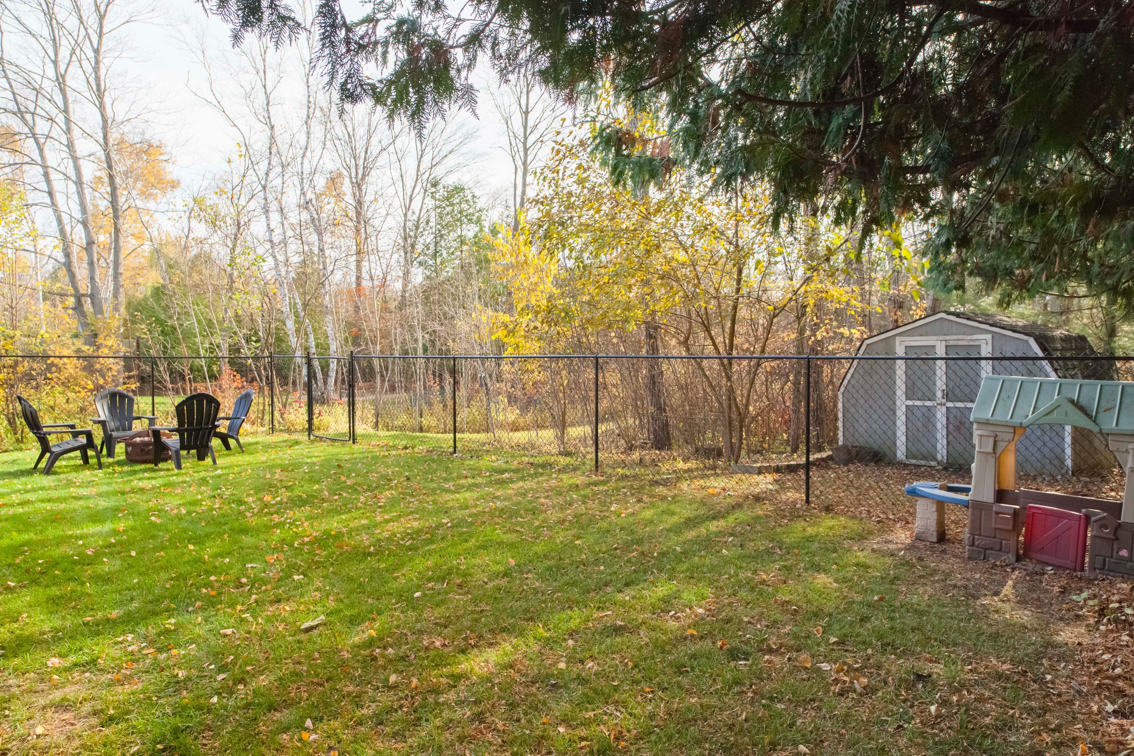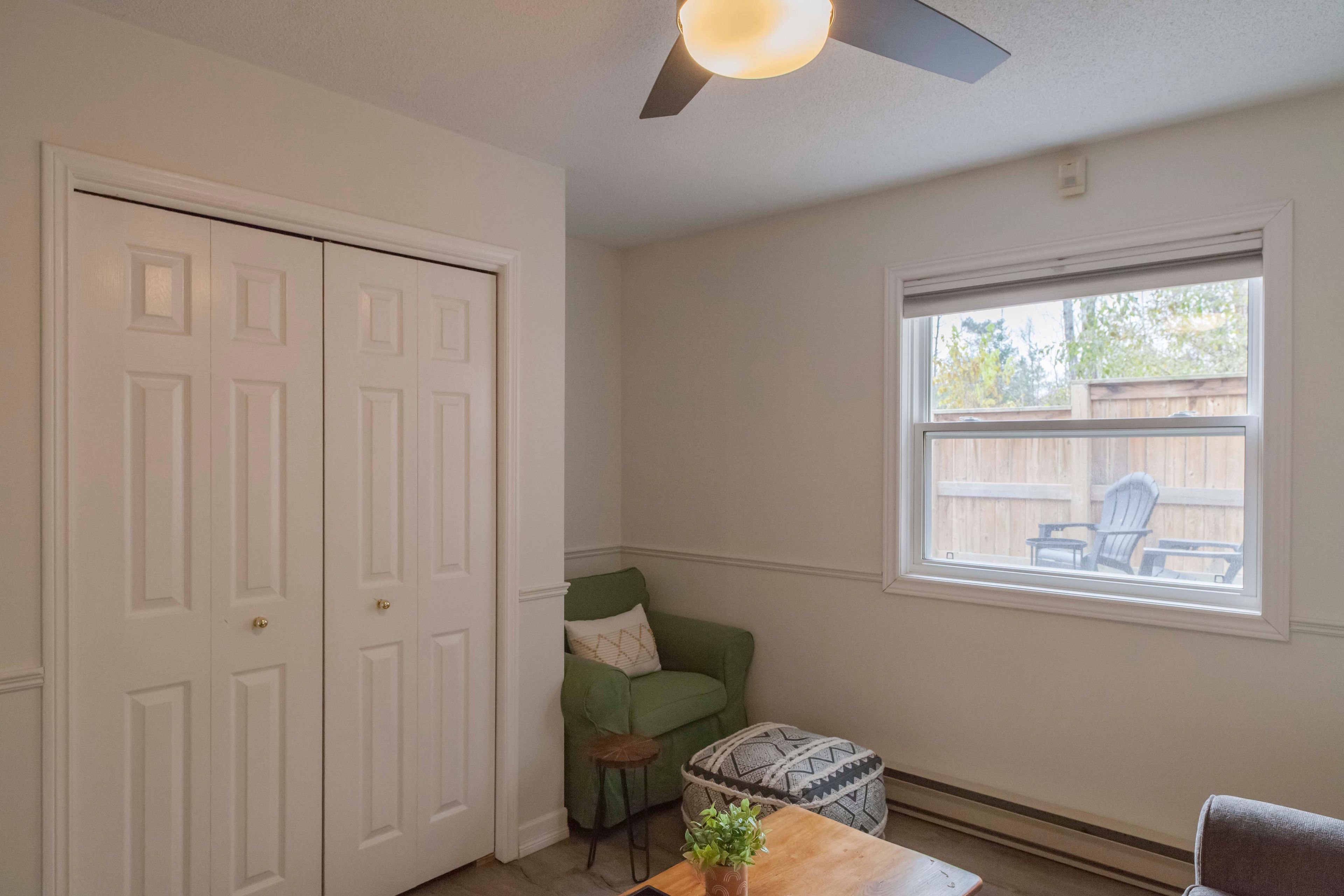 • Private south-facing deck overlooking a fenced yard for outdoor relaxation.