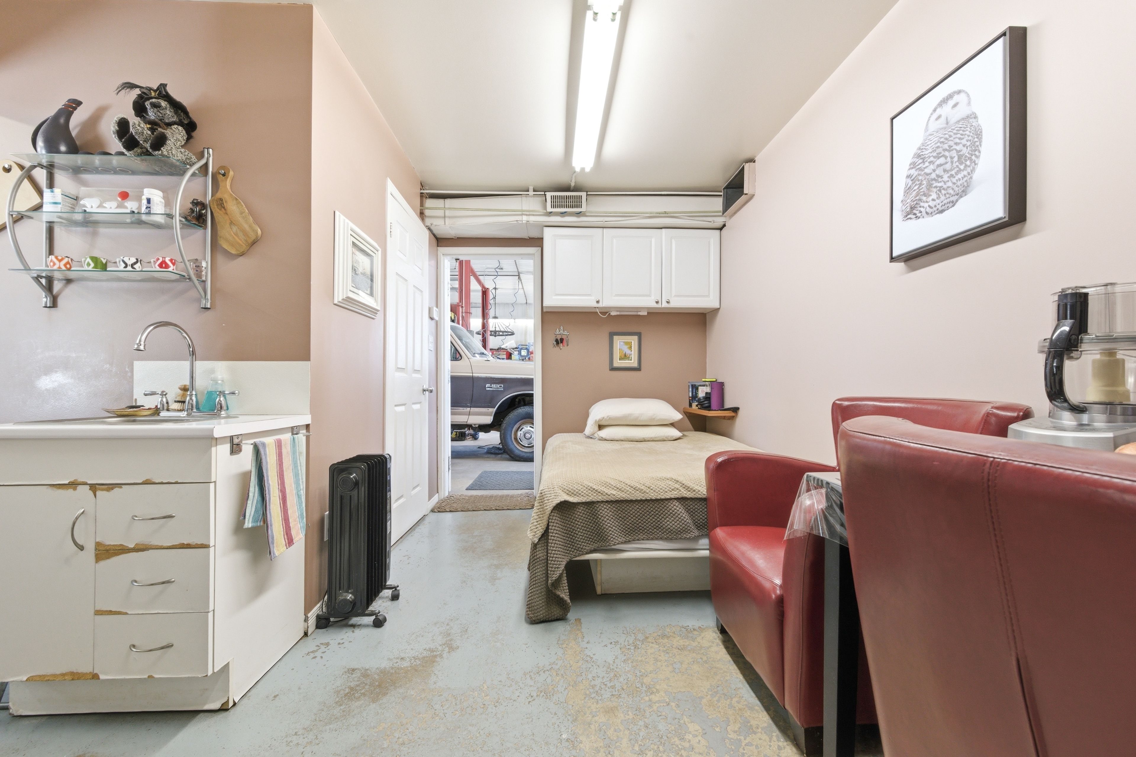 A truly unique and rare opportunity awaits with the purchase of the well-known former "paul's garage", a long-standing, successful local mechanic shop with endless potential. This versatile property is zoned residential with a rare exception permitting "the operation of any automotive and/or recreational vehicle repair shop," opening the door to a variety of uses. Whether you're an enthusiast dreaming of the ultimate personal workshop paired with comfortable living space, or an entrepreneur ready to step into a fully equipped automotive business, this property delivers. The building features a bachelor-style, one-bedroom apartment complete with a kitchenette and full 3-piece bath, ideal for on-site living or staff accommodations. A welcoming reception area with an additional 2-piece bathroom provides a professional front-facing space for clients. Meticulously maintained, the shop itself is impressively outfitted with 650 amp electrical service, abundant lighting, and a 650 volt, 3-phase, 10hp compressor system, soaring 14-foot ceilings and three 10' x 12' bay doors allow for easy access and functionality, while the included 10,000 lb and 8,000 lb hoists make this a turnkey operation for automotive work. Durable metal interior and exterior with efficient insulation, and a triple-reservoir drainage system designed to separate water and oil further showcase the thoughtful design and care put into this property. Adding even more value, a wide range of tools and accessories may be included with an acceptable offer... Giving you the opportunity to hit the ground running from day one. Properties like this don't come along often. Whether you're looking to live, work, or both, this is your chance to own a space that truly delivers on flexibility, function, and potential.