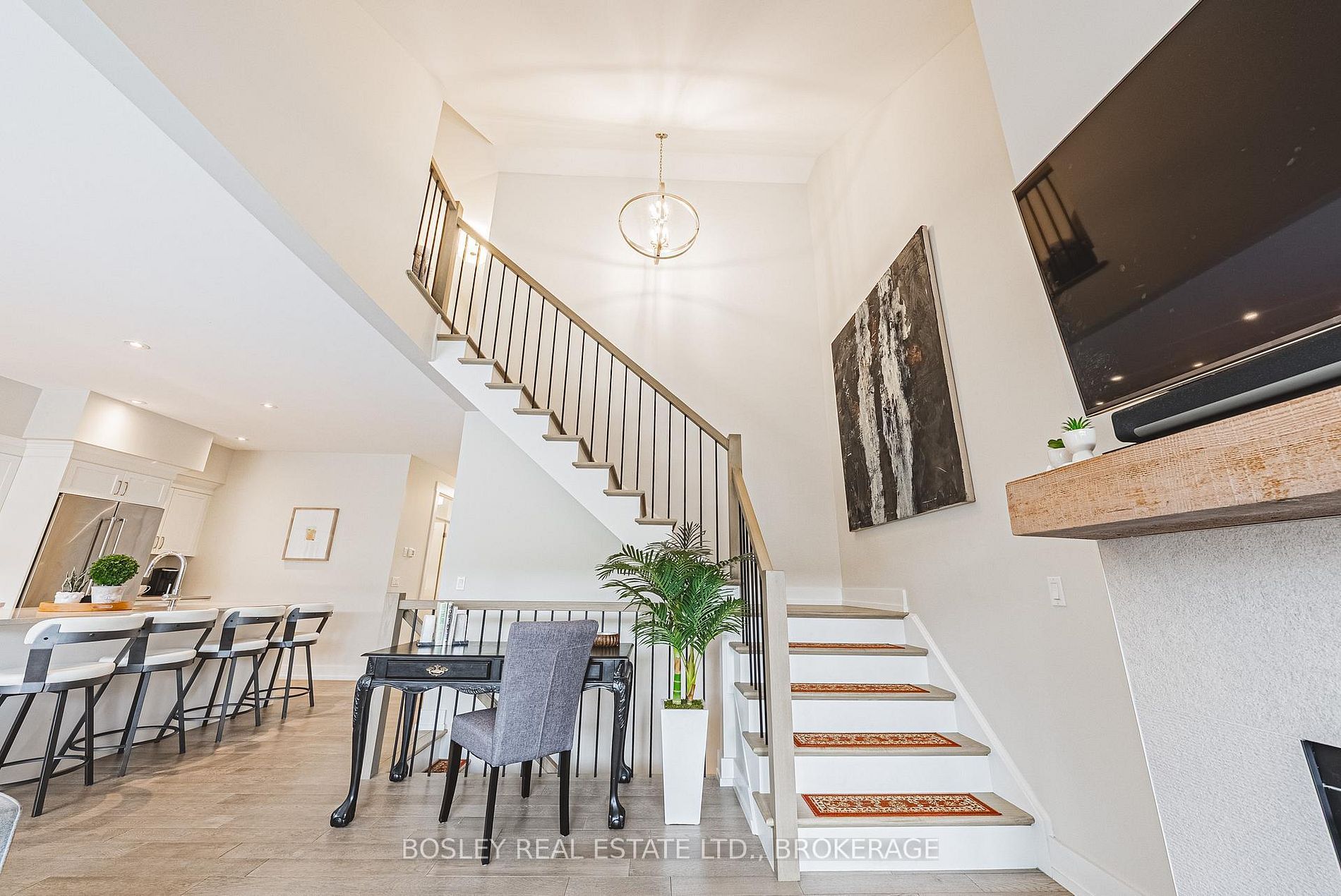 • Bright main floor features 9' ceilings and a cozy gas fireplace.