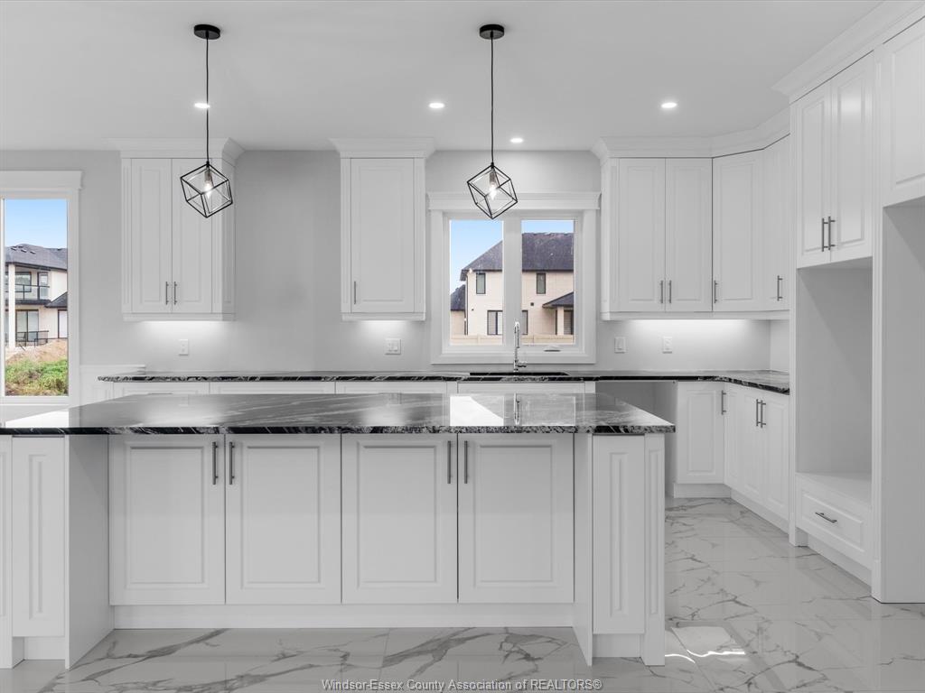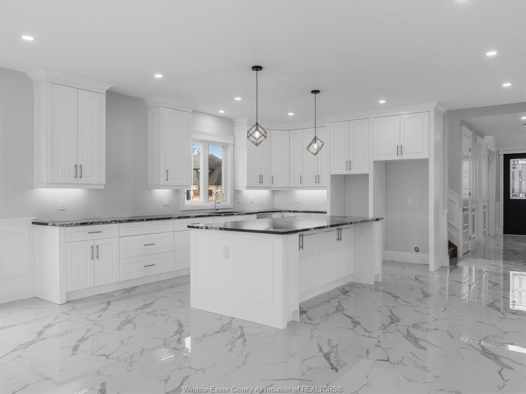 • Dream kitchen with quartz counters, a large island, and ample cabinetry.