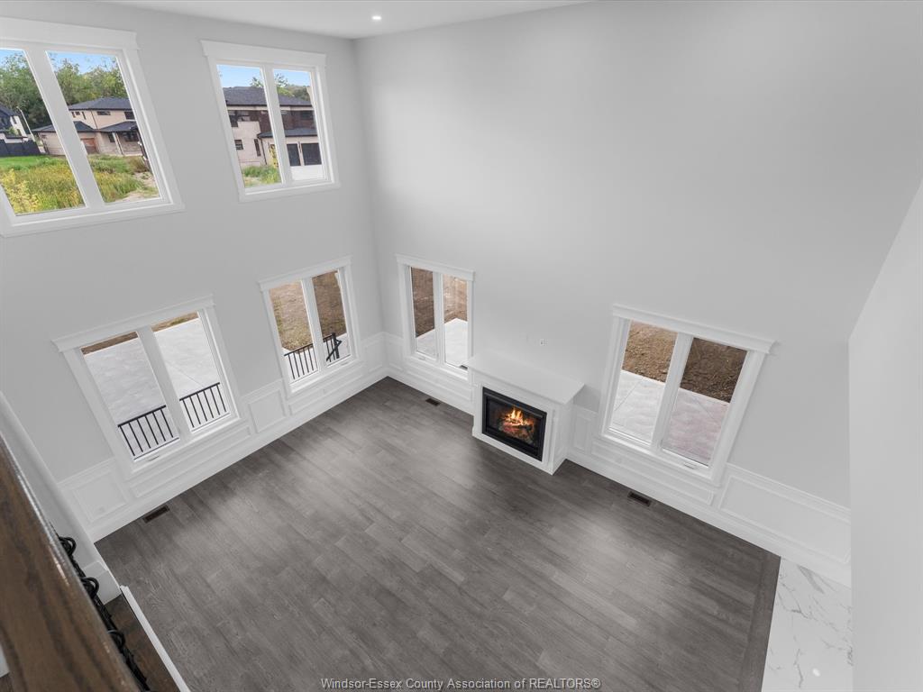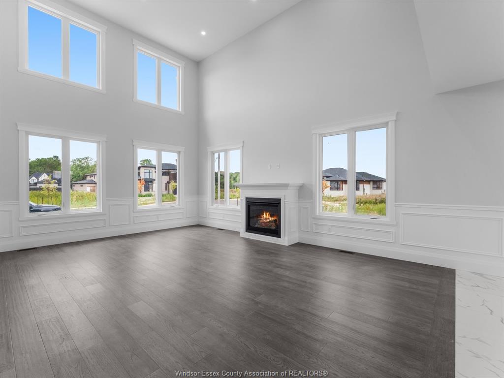 • Bright 2-storey great room featuring walls of windows and a gas fireplace.