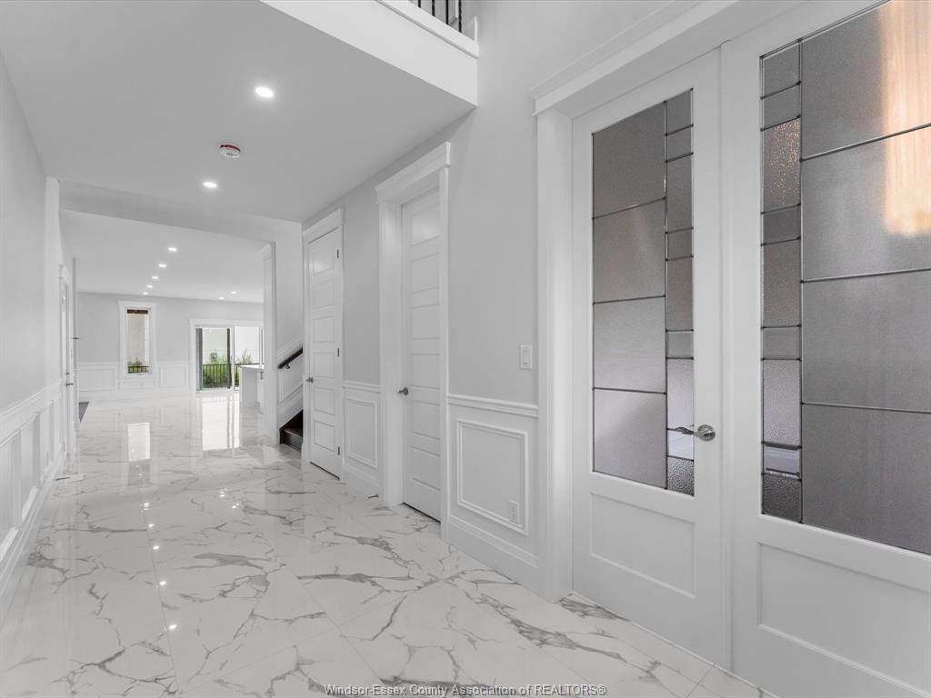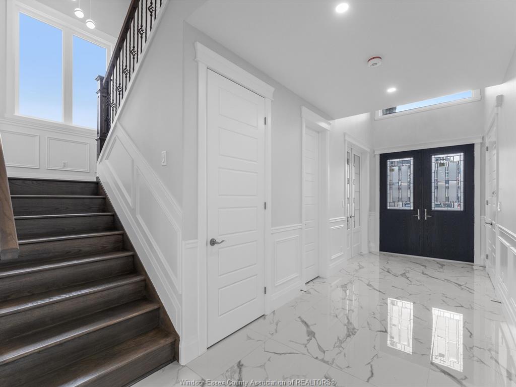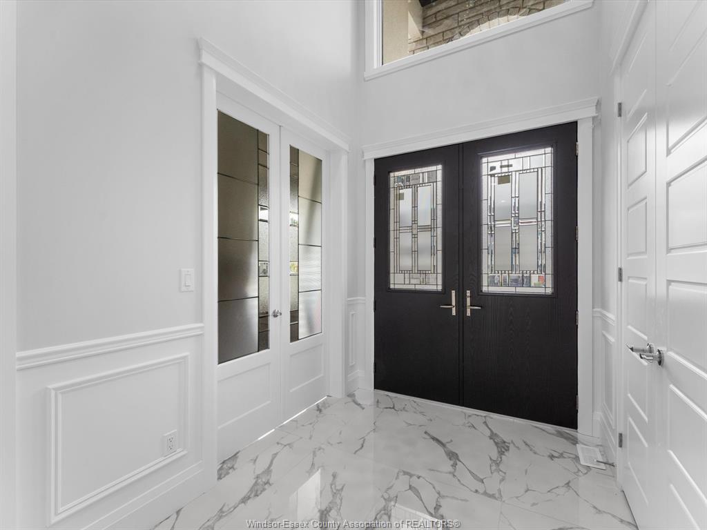 • Impressive custom-built home with a grand foyer and elegant wainscotting.