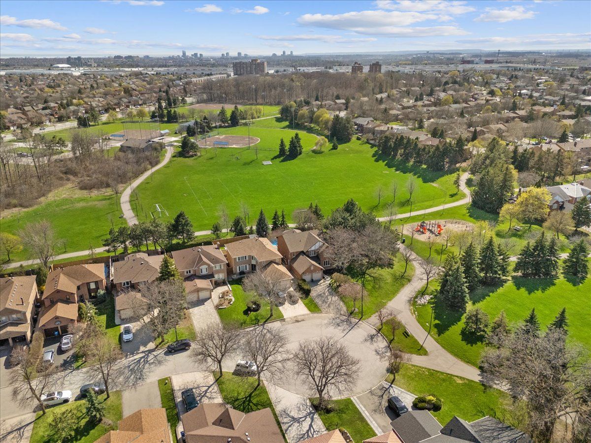 Welcome to 3574 irwin court. This meticulously maintained home has been owned and loved by the same family for over 30 years. This exceptional property showcases true pride of ownership throughout every detail. Set in a highly sought-after erin mills neighbourhood surrounded by parks and scenic trails, it offers a rare combination of privacy, space, and lifestyle convenience. Designed with entertaining in mind, the home features a bright open-concept layout that flows seamlessly between principal rooms. The elegant living room and separate dining room provide refined, functional spaces for both formal gatherings and everyday living, while the chef-inspired kitchen is equipped with high-end built-in appliances, ample cabinetry, breakfast bar and a sunken breakfast area that overlooks the backyard oasis. The spacious family room and combined library create additional versatile living spaces ideal for both relaxation and work-from-home needs. Upstairs, you'll find four generously sized bedrooms, each thoughtfully appointed with ample closet space. The primary suite serves as a private retreat, complete with a 5-piece ensuite bath and spacious walk-in closet. The fully finished basement extends the living space and is ideal for multi-generational living or entertaining, featuring a wet bar, recreation area, and a fifth bedroom that adds flexibility for guests, in-laws, or a home office. Step outside to your private backyard escape featuring an inground pool and hot tub, perfectly positioned with a clear view of tom chater park, creating a serene and picturesque setting. A lawn irrigation system ensures the grounds remain beautifully maintained with ease. This is a rare opportunity to own a well-cared-for home in a prestigious community, offering timeless charm, functional design, and an unbeatable location close to parks, trails, schools, and everyday amenities.
