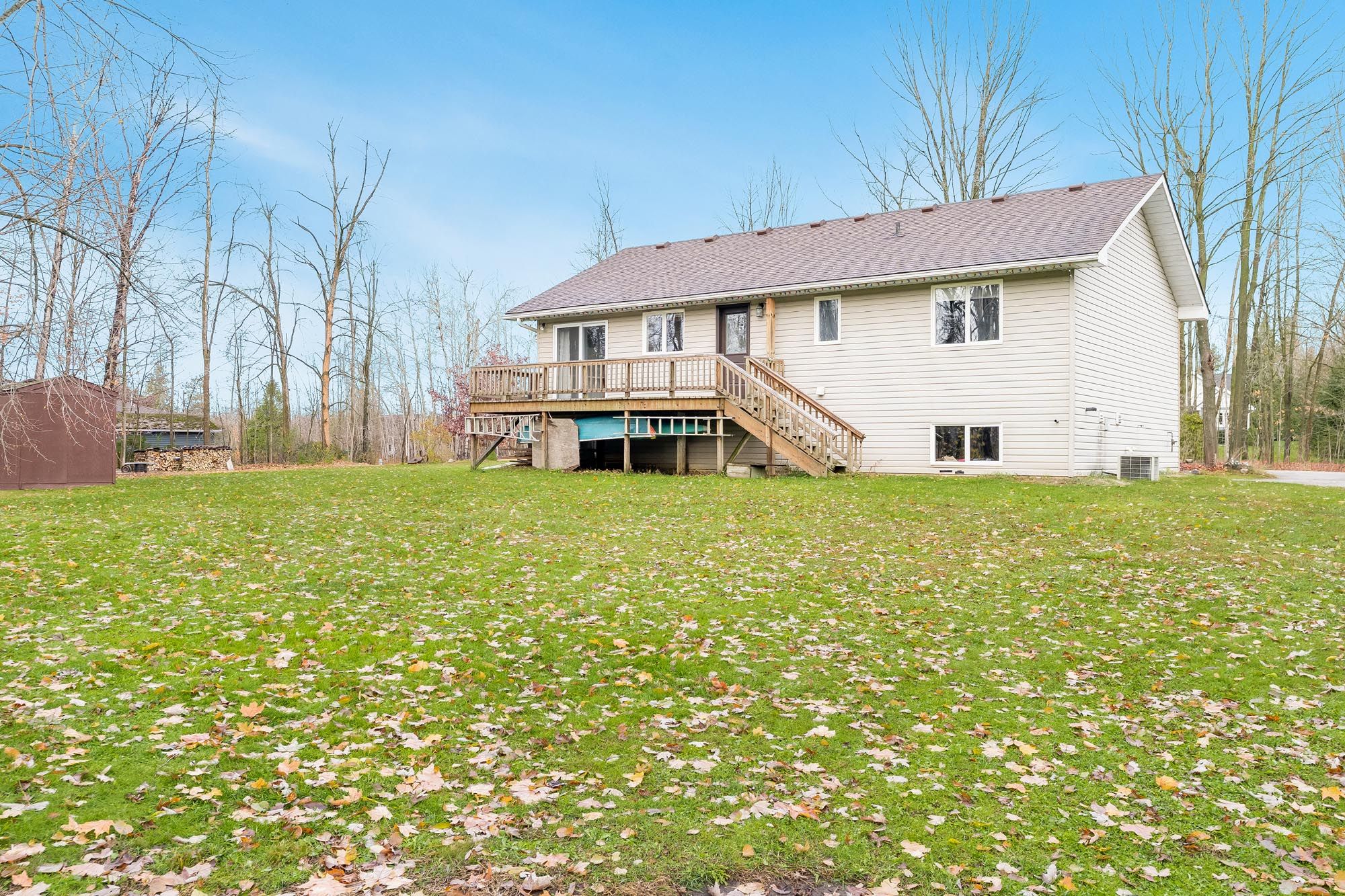 Top 5 reasons you will love this home: 1) appreciate the peace and privacy of over an acre of land in a quiet rural neighbourhood, creating the perfect setting for families, hobbyists, or anyone looking to escape the city while staying close to amenities 2) open-concept living room and eat-in kitchen creating a warm, inviting space ideal for entertaining and family gatherings, with a walkout to the large back deck overlooking the expansive yard 3) featuring three bedrooms on the main level plus an additional bedroom and recreation room in the partially finished basement, offering flexible living space for guests, a home office, or growing families 4) relax, garden, or host summer barbeques in your private backyard oasis, alongside a detached single-car garage and garden shed, providing ample space for tools, toys, and outdoor projects 5) experience the best of both worlds with a peaceful country setting just minutes from orillia's shopping, dining, schools, and lake couchiching's waterfront recreation. 1,282 above grade sq. Ft. Plus a partially finished basement.