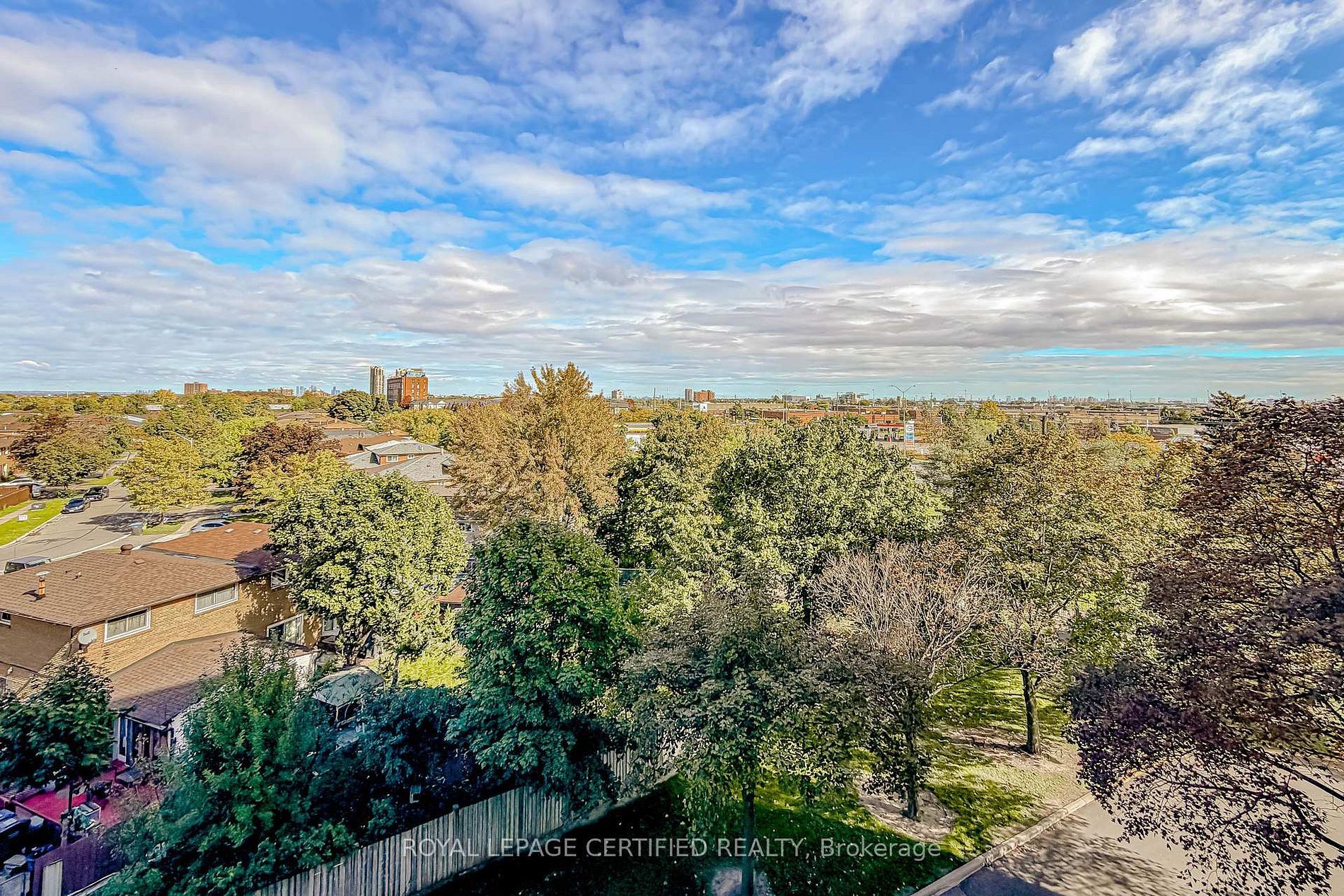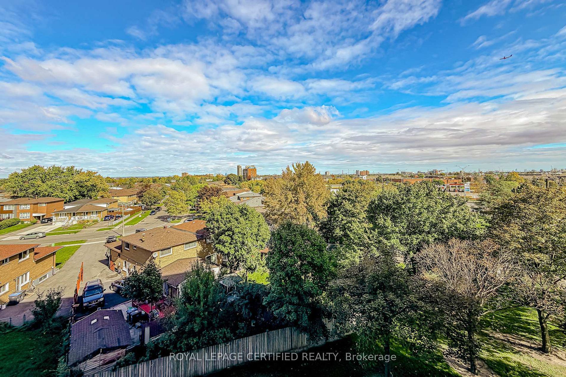 Welcome : move in ready, great size : 3 bedrooms, 2 full washrooms, desirable functional size great room: living, dining kitchen area with new flooring: w/o to long balcony adds outer space showing great views of east toronto, open concept kitchen with granite countertops, center island; high-end ss appliances new counter depth dd wi-fi ss fridge, 36' (2025) w/ ice and water dispenser, autofill pitcher, ss stove 2024, built in ss microwave, dishwasher. Ensuite laundry w/ front load washer/dryer. Highly sought after area in mississauga; recently upgraded : n/ paint, new living area floors new light fixtures, new replaced windows and patio door. Common element amenities : outdoor pool, party rm, kids play rm, saunas for men and women. Minutes to westwood mall, hwy 427, 401/403, malton go, transit, ample visitor parking, don't miss it! Extras: