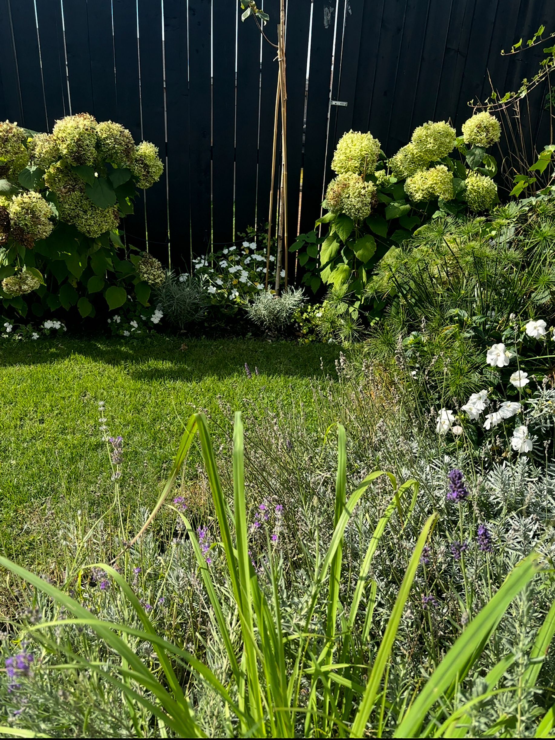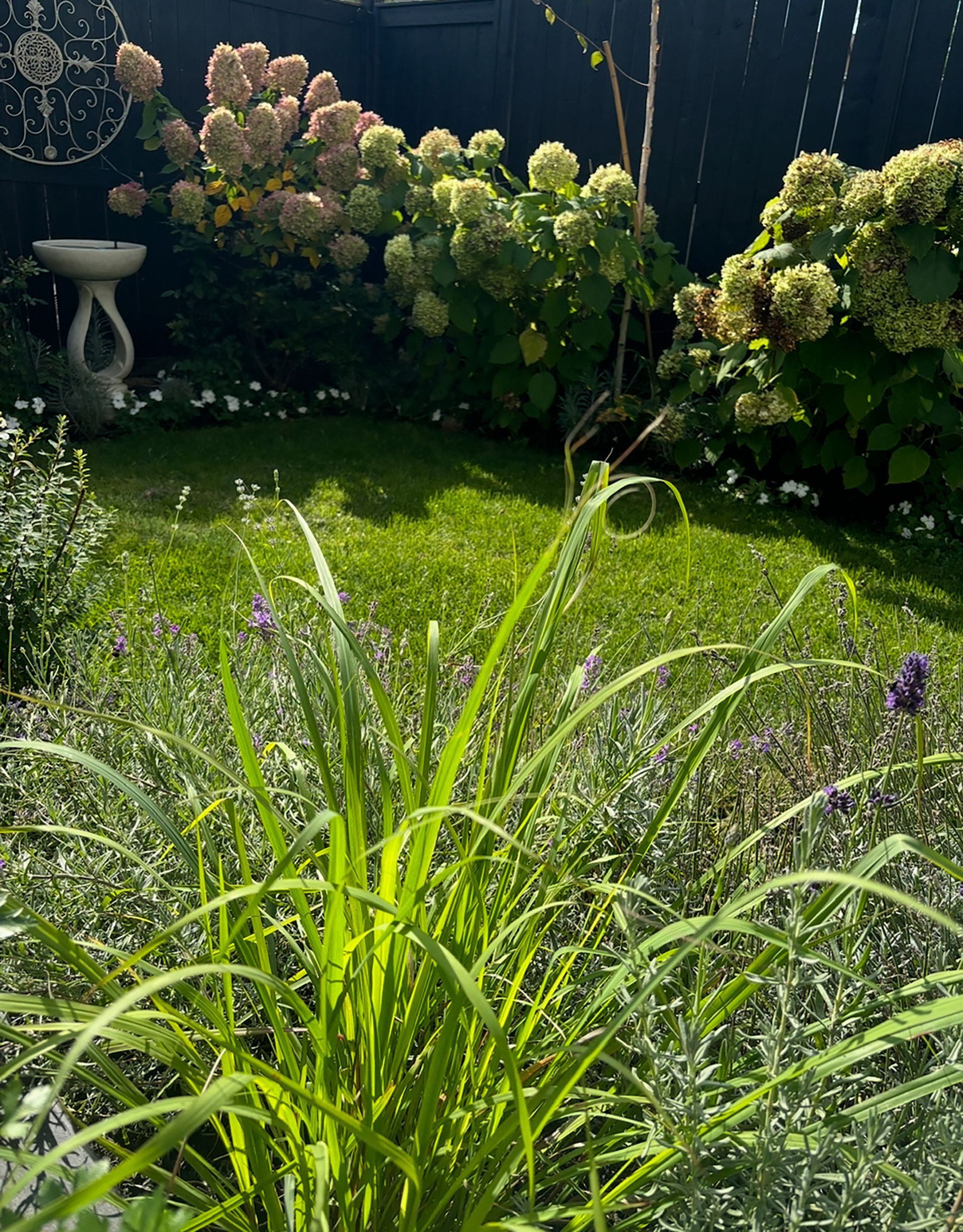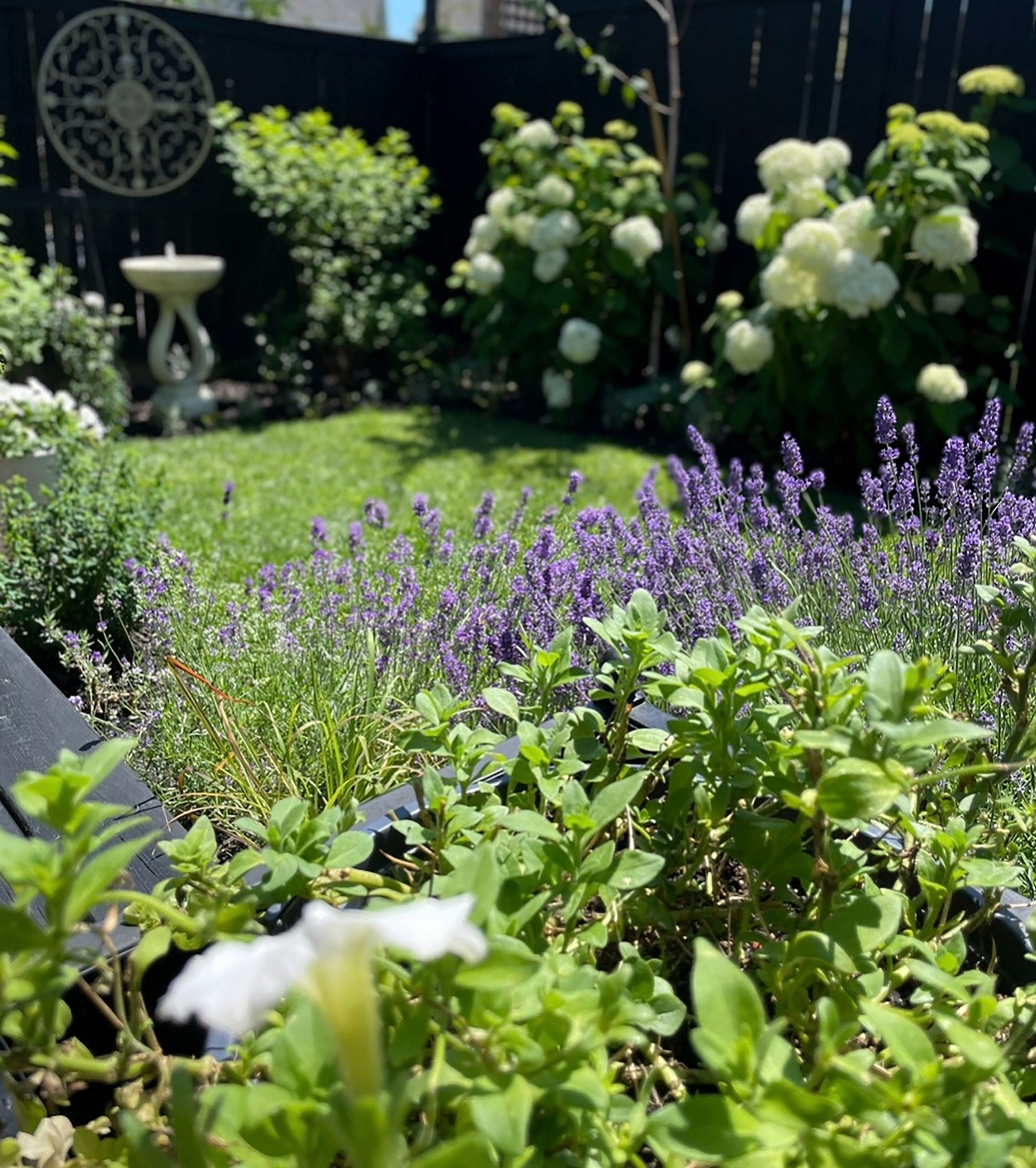 • Private rear yard with a large deck and beautiful flower gardens.