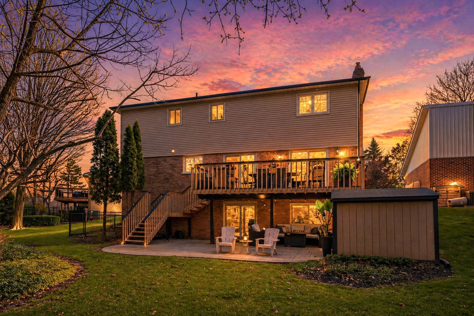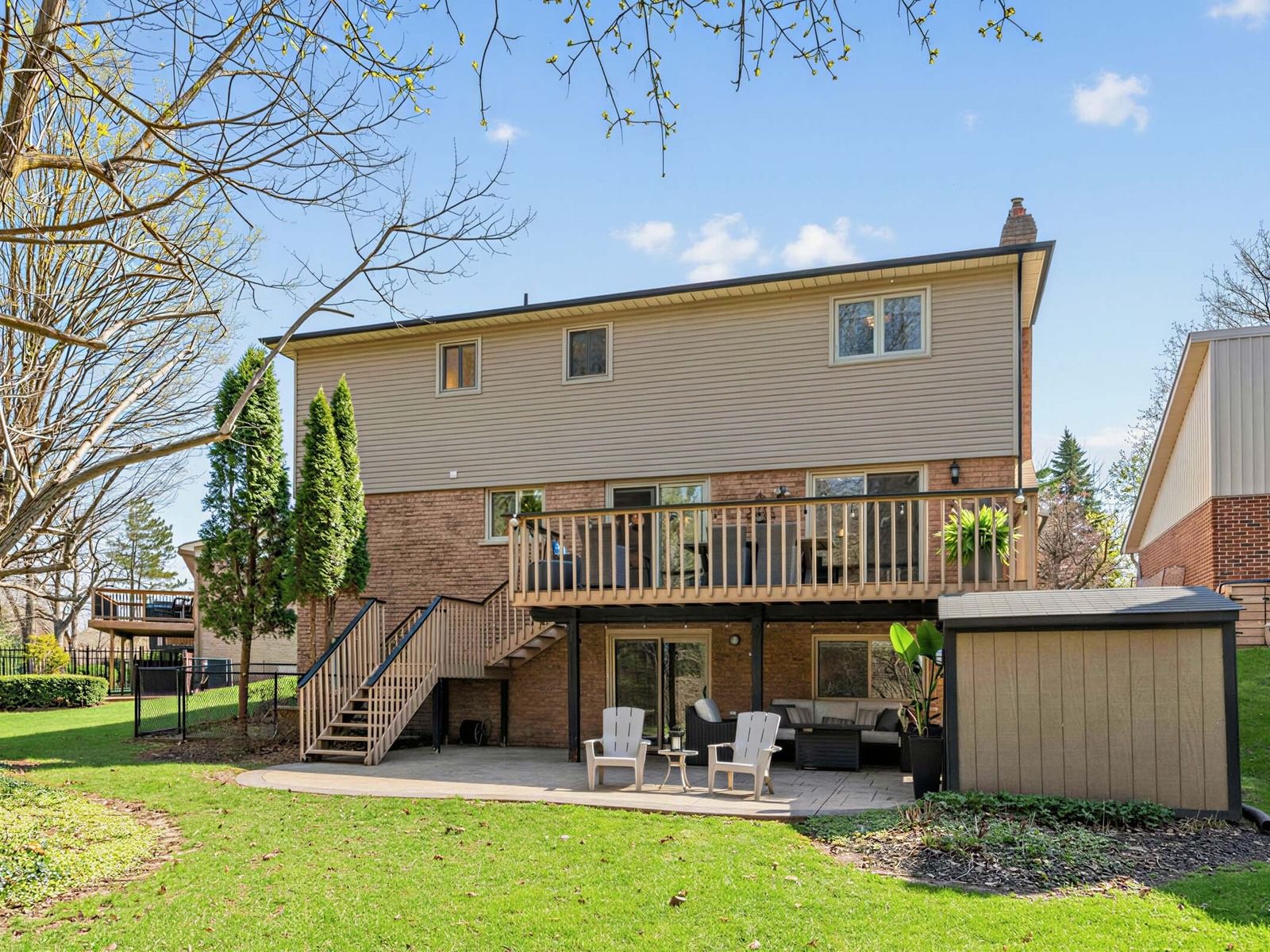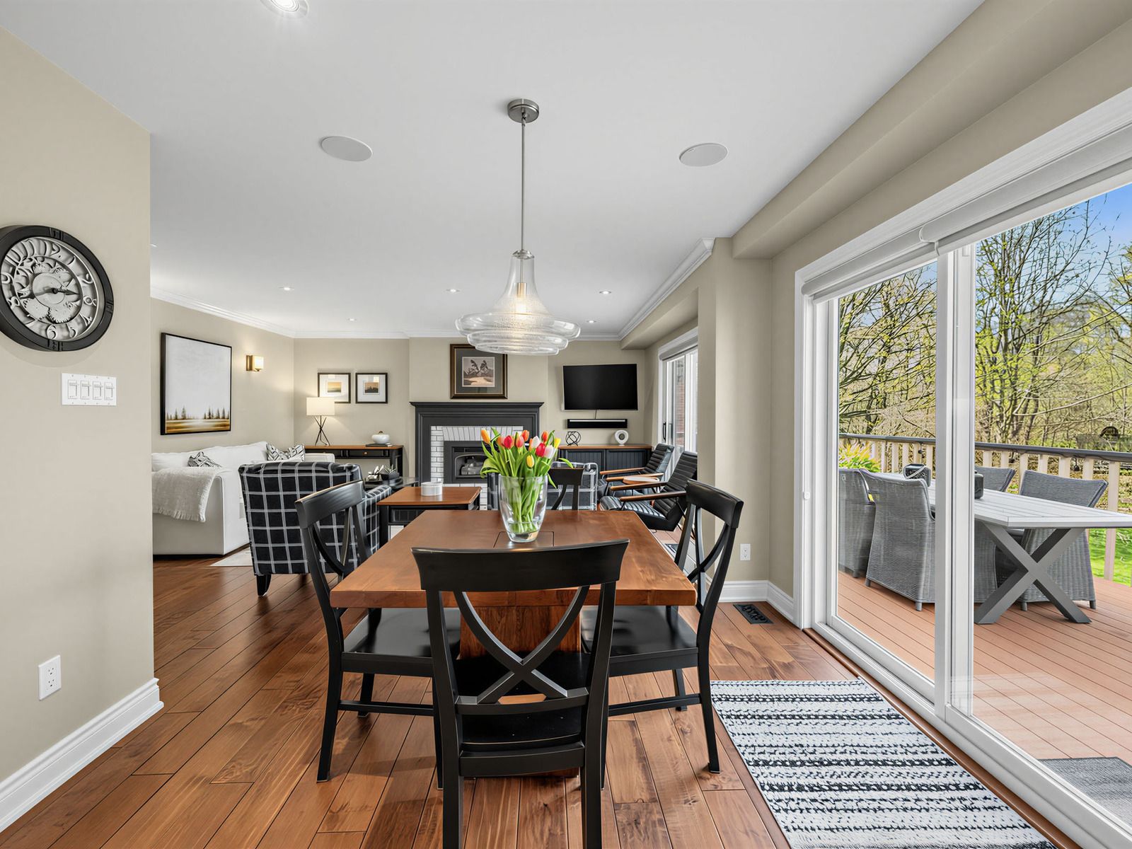 Find the charm of old milton in this updated spacious family home. Aspirational cul-de-sac pie shaped lot with loads of privacy and room to roam. From the inviting stamped concrete front porch to the centre hall plan, you will feel at home as soon as you enter. An entertainer's main floor with renovated chef's kitchen and an open concept plan featuring a living room to gather. Curl up on cool nights by the gas fireplace, or in summer you can walk out to the over-sized deck for outdoor dining perched over your impressive lot. With an abundance of trees around and sixteen16 mile creek in sight, imagine the tranquility of a cottage just steps out of your glass patio doors. Host family dinners in the formal dining room with the character of wainscotting and an impressive bay window. Rounding off a perfect floor plan you can enjoy a main floor powder room and benefit from the direct access mud room/laundry room from the double garage entrance. The second floor has four well appointed bedroom with tons of natural light throughout. The primary bedroom features a walk-in closet and renovated bathroom with glass enclosed curbless shower & double sink vanity. The fully finished basement was designed with entertaining in mind with full renovation (2020). Ease into the recreation room with custom built in wall unit and electric fireplace. Honourable mention goes to the focal point-the high top custom hand made quartz bar table with room to seat 6+ guests. The built-in cabinets with 2 under mount beverage fridges has everything on demand. With a lower 3 pc bathroom, additional bedroom and flex space you can truly enjoy every square foot of this home. The lower level has a walk out patio for casual outdoor lounging while you soak in the sights and nature sounds of this unique, rarely offered treed lot.
