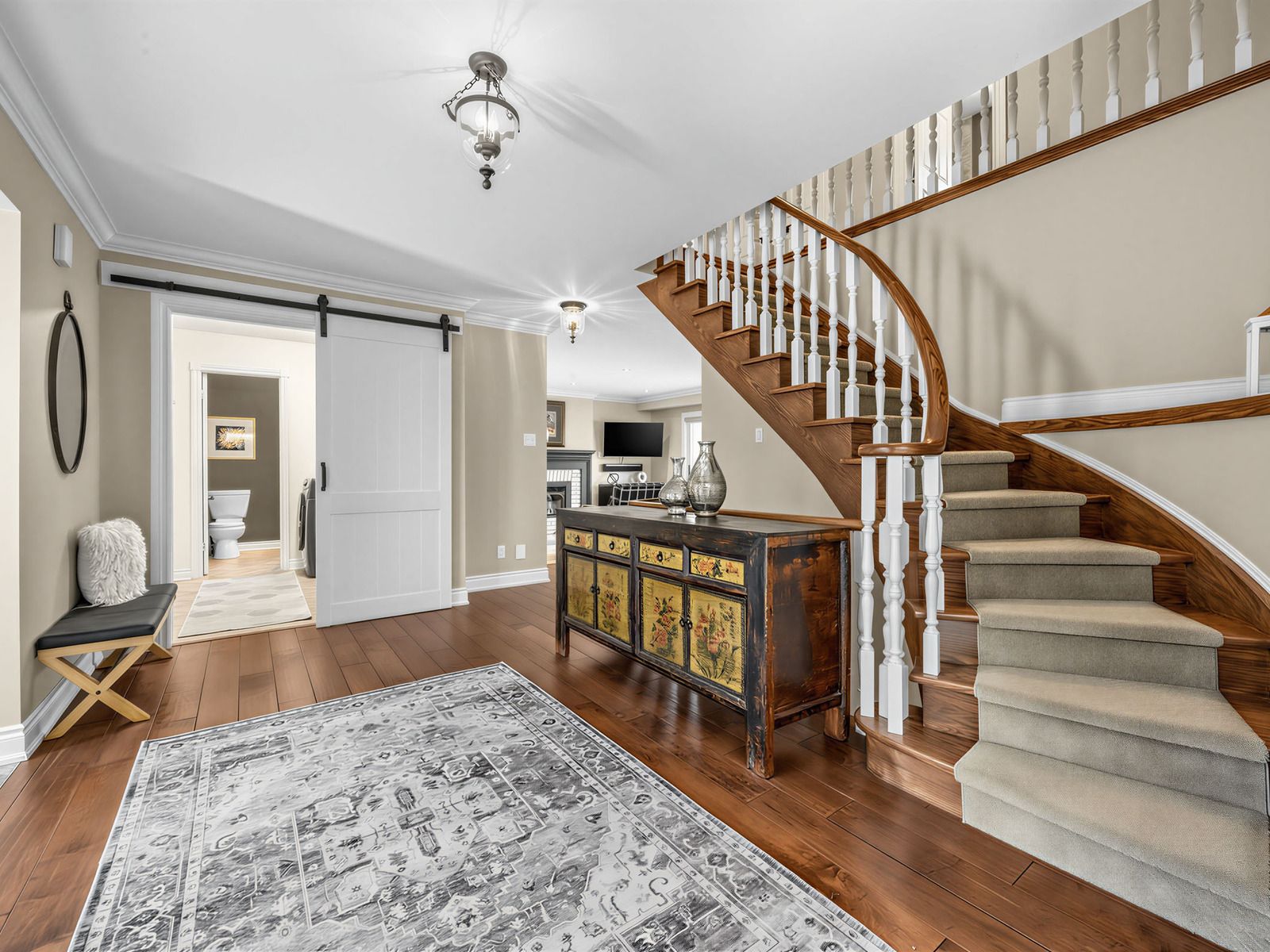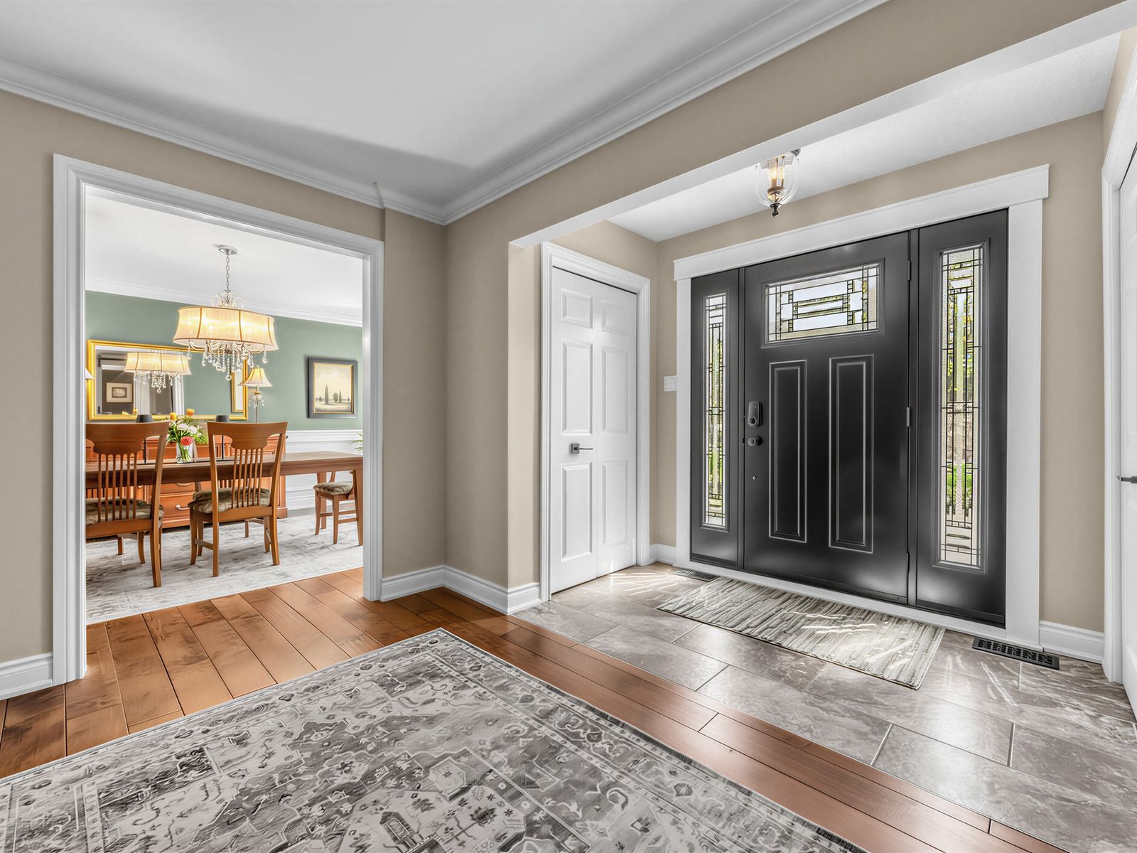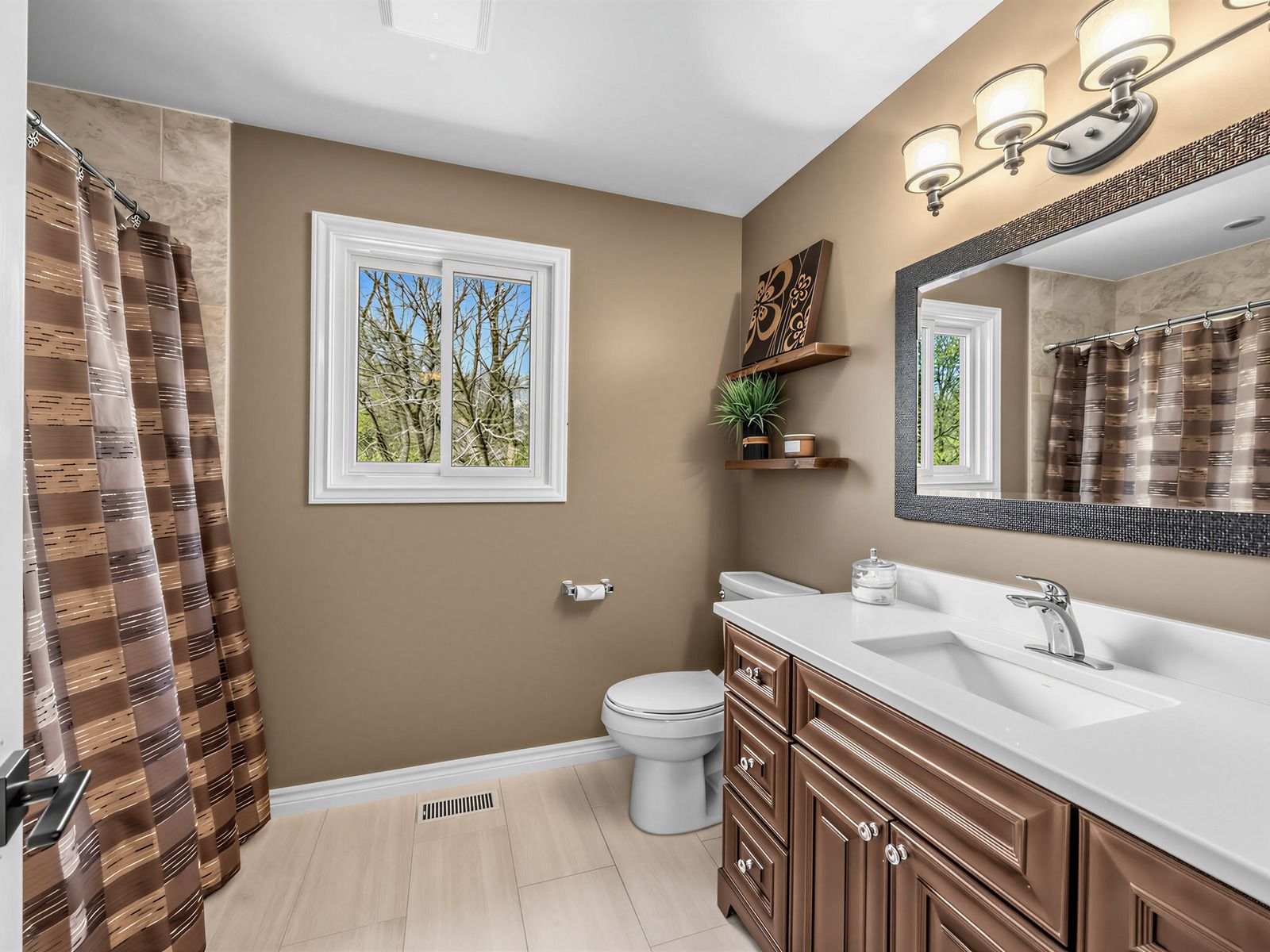 Find the charm of old milton in this updated spacious family home. Aspirational cul-de-sac pie shaped lot with loads of privacy and room to roam. From the inviting stamped concrete front porch to the centre hall plan, you will feel at home as soon as you enter. An entertainer's main floor with renovated chef's kitchen and an open concept plan featuring a living room to gather. Curl up on cool nights by the gas fireplace, or in summer you can walk out to the over-sized deck for outdoor dining perched over your impressive lot. With an abundance of trees around and sixteen16 mile creek in sight, imagine the tranquility of a cottage just steps out of your glass patio doors. Host family dinners in the formal dining room with the character of wainscotting and an impressive bay window. Rounding off a perfect floor plan you can enjoy a main floor powder room and benefit from the direct access mud room/laundry room from the double garage entrance. The second floor has four well appointed bedroom with tons of natural light throughout. The primary bedroom features a walk-in closet and renovated bathroom with glass enclosed curbless shower & double sink vanity. The fully finished basement was designed with entertaining in mind with full renovation (2020). Ease into the recreation room with custom built in wall unit and electric fireplace. Honourable mention goes to the focal point-the high top custom hand made quartz bar table with room to seat 6+ guests. The built-in cabinets with 2 under mount beverage fridges has everything on demand. With a lower 3 pc bathroom, additional bedroom and flex space you can truly enjoy every square foot of this home. The lower level has a walk out patio for casual outdoor lounging while you soak in the sights and nature sounds of this unique, rarely offered treed lot.
