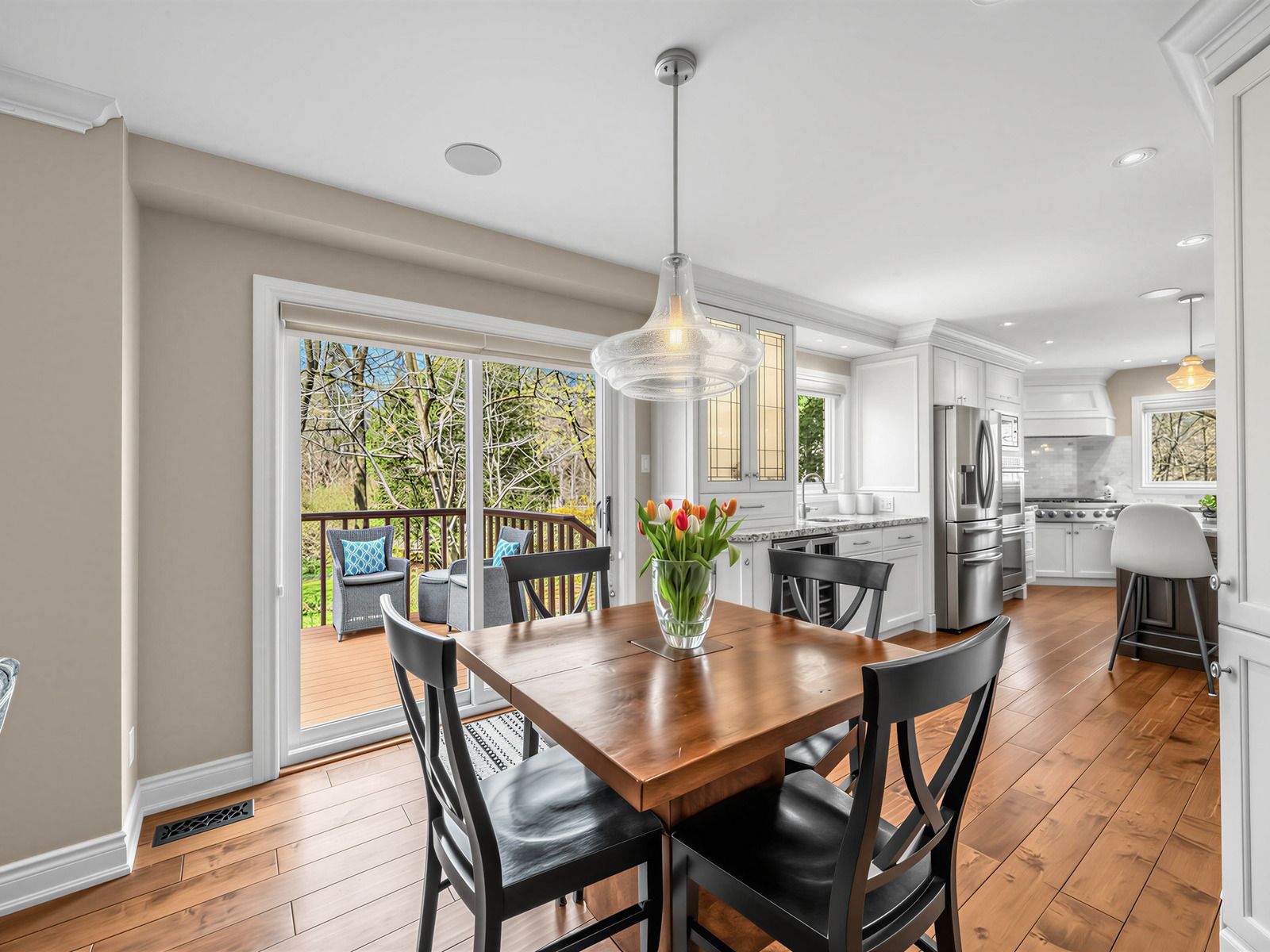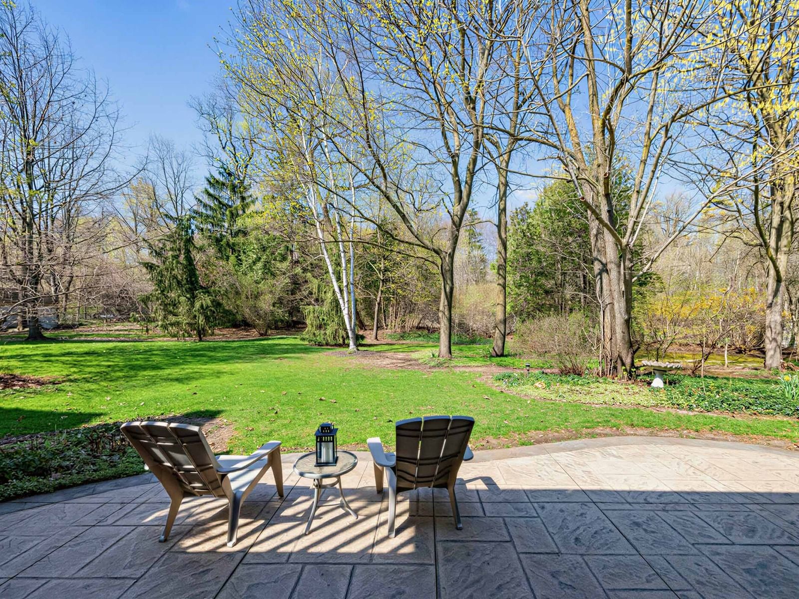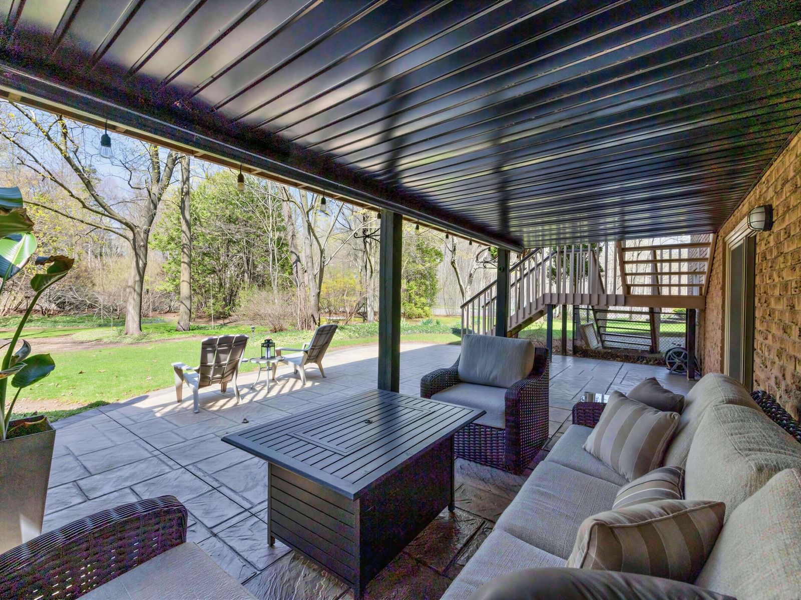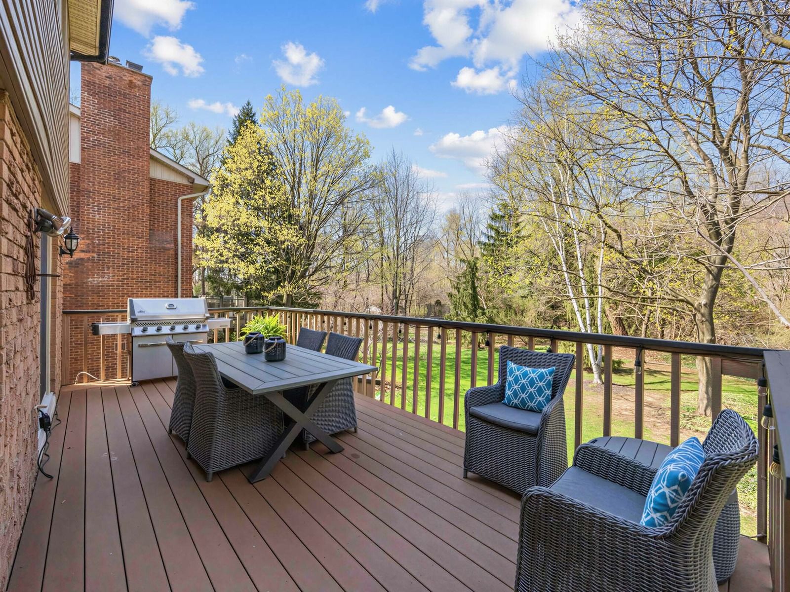 • Tranquil outdoor deck overlooking lush greenery and Sixteen Mile Creek.