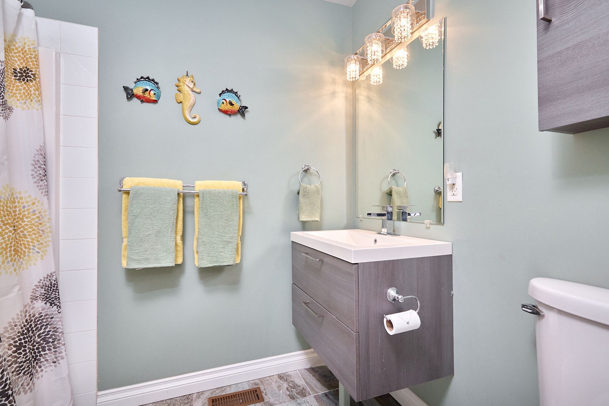 • Modern kitchen and updated bathrooms throughout the home.