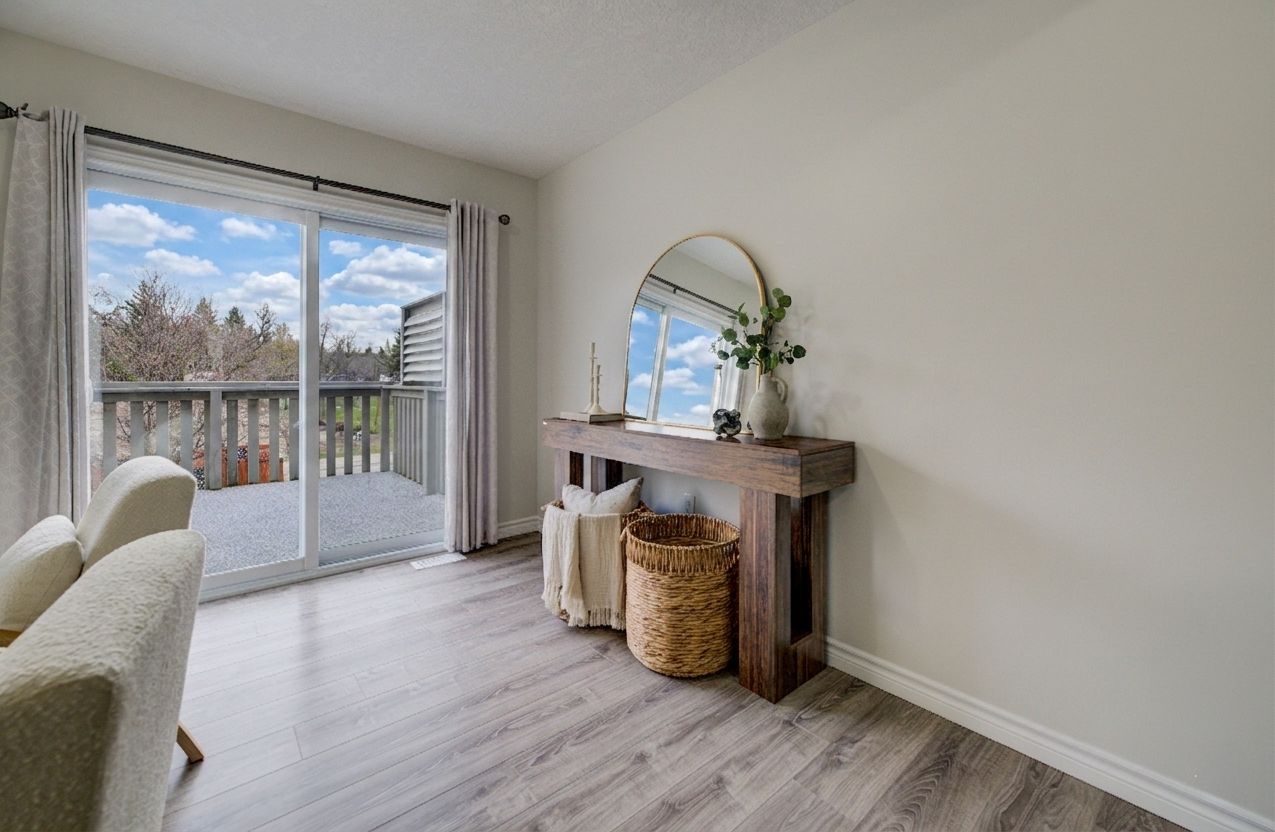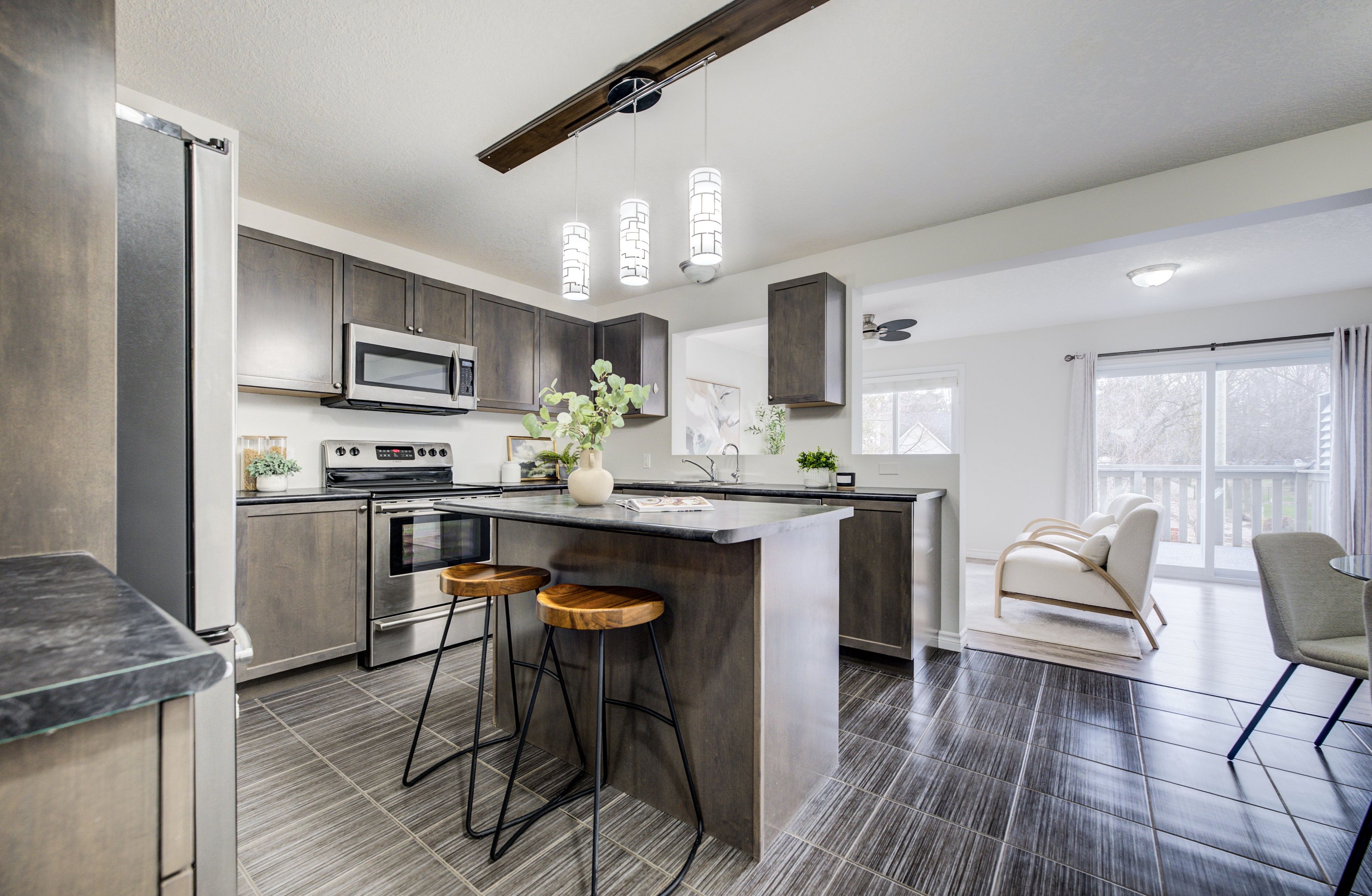 Welcome to this well-maintained freehold townhouse offering a perfect blend of comfort, functionality, and location. Featuring 3 spacious bedrooms, the primary suite includes a walk-in closet and private bathroom, while the additional two bedrooms provide ample space for family, guests, or a home office. The main floor showcases a beautiful, modern kitchen complete with a large island-ideal for cooking and entertaining-along with a bright dining area and sliding doors that lead to a private deck, perfect for outdoor relaxation. Additional highlights include a one-car garage and an unfinished walk-out basement, offering excellent potential for future customization. Situated on a quiet dead-end street in a fantastic, family-friendly and sought-after neighbourhood, this home provides a peaceful setting while being just steps to schools, parks, sports complexes, shopping, and all essential amenities. An ideal opportunity for families, first-time buyers, or investors alike.