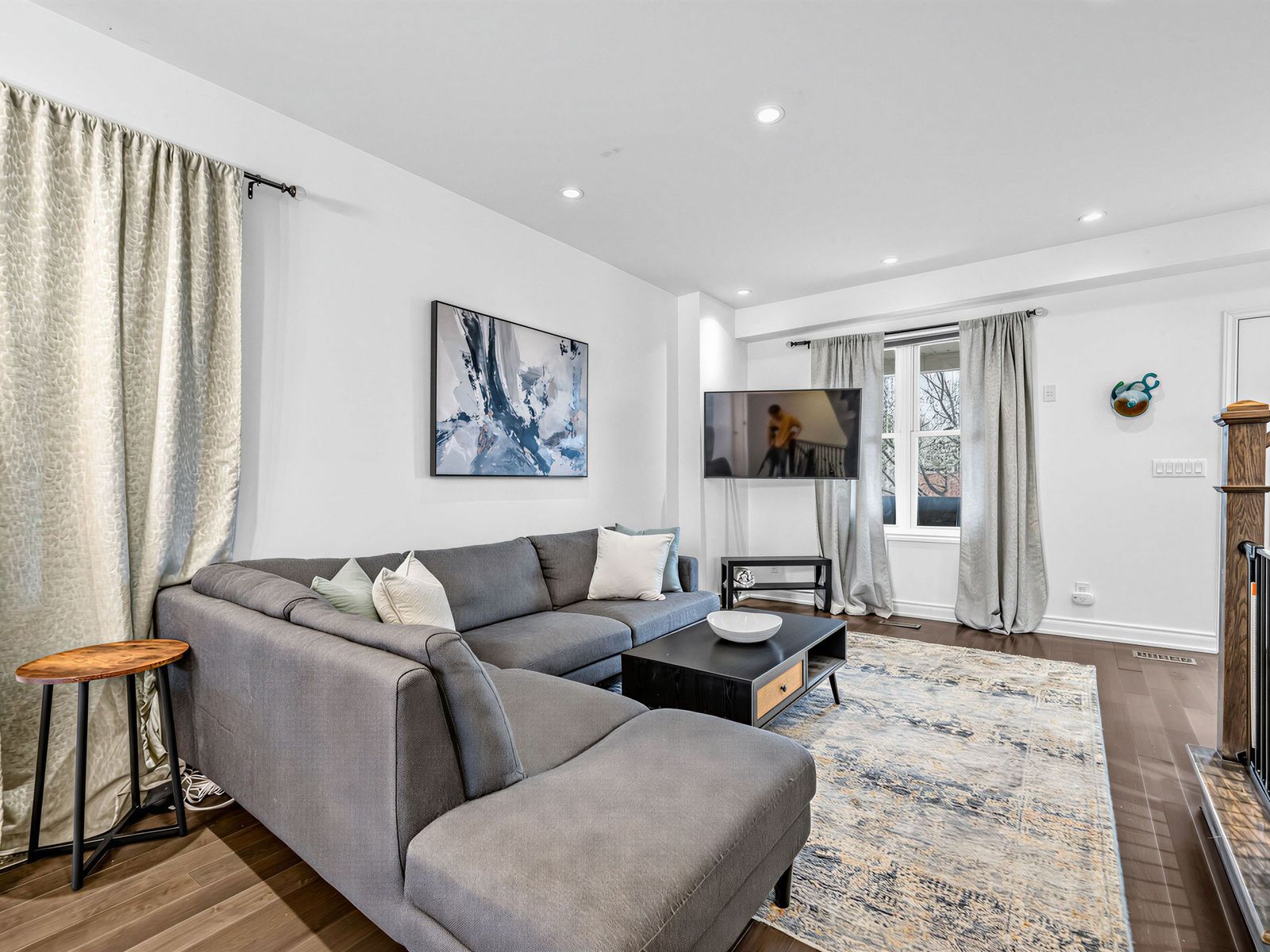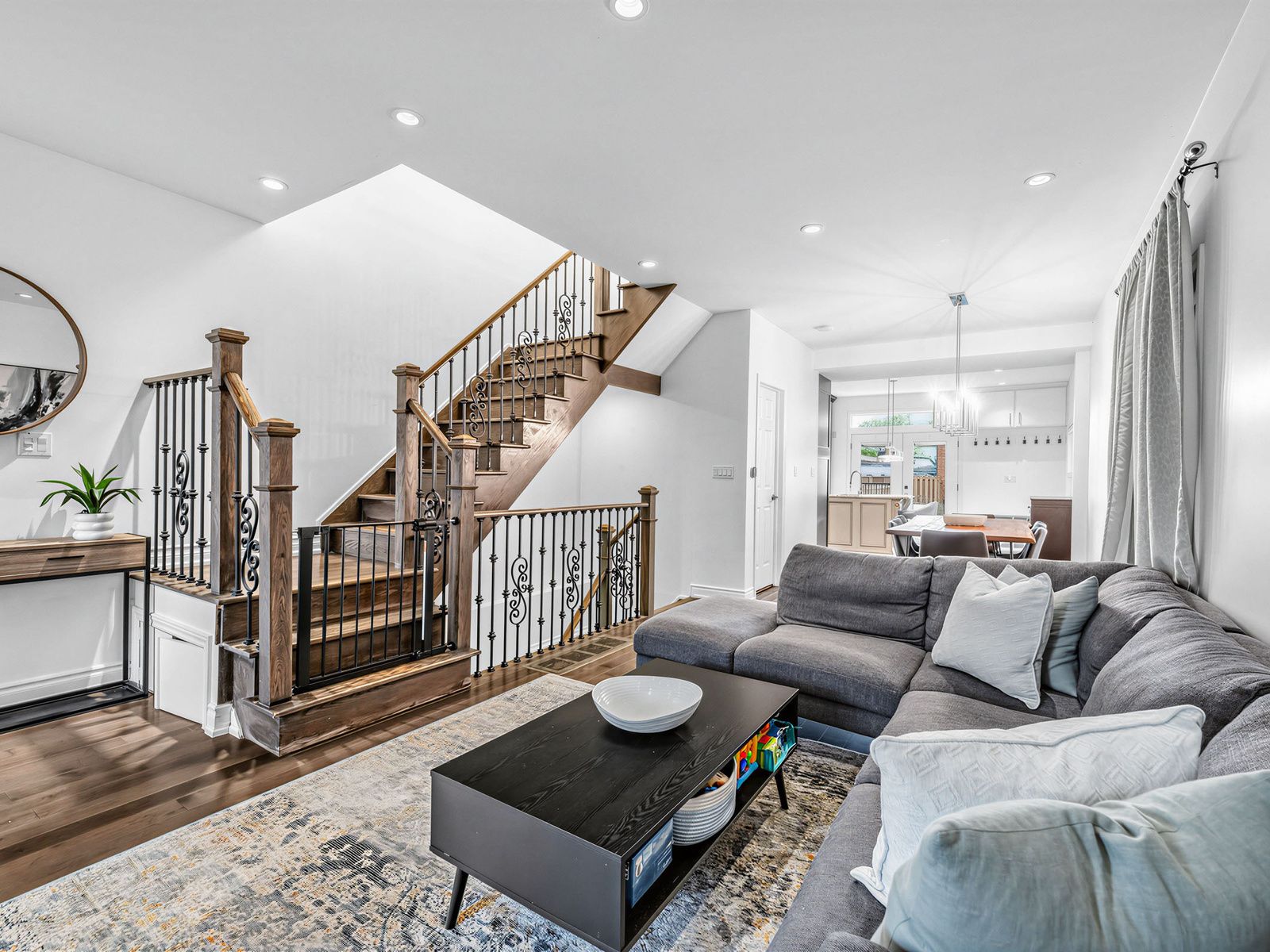 • Open-concept layout with 9-ft ceilings and modern finishes throughout the home.