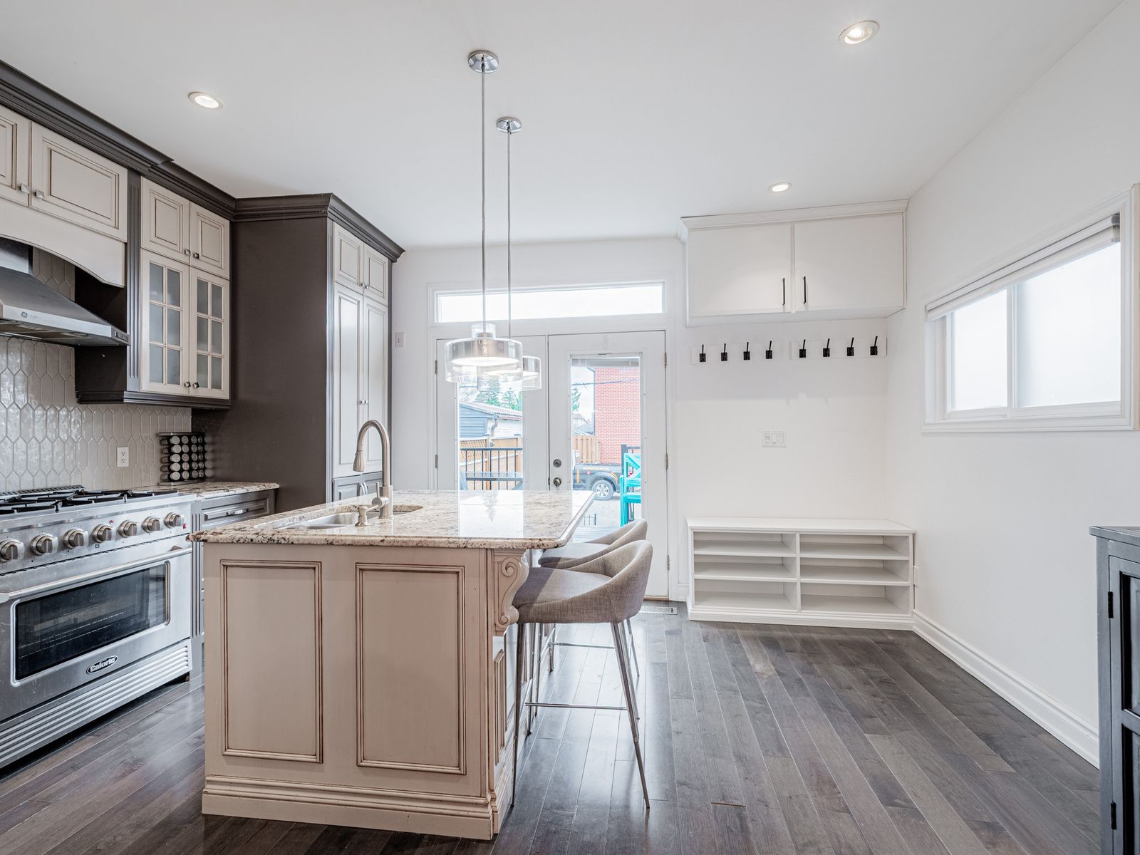 Spectacular 3-bedroom home with a loft and finished lower level with 8 ft ceilings offers over 2,300 sq ft of total usable living space across three floors and a flexible 3+2 bedroom, 4-bath layout with two dens ideal for home offices, playrooms or guest rooms. Bright open-concept living with 9-ft ceilings, led pot lights, oak staircase and hardwood floors flows to a gourmet kitchen with center island, granite countertops, 6-burner gas range and large pantry and walk-out to rear deck and patio; the private laneway provides quiet residential access and parking for two cars. . Built-in mudroom area with ample storage at back door for all your day to day needs. The professionally dug-out and underpinned basement features over 7. 5f oot ceilings, a separate entrance and a spacious 5-piece bathroom with whirlpool tub and separate shower -easily converted to an in-law suite. Located a short (~10-minute) walk to shops, cafes and the ttc on the danforth and close to parks, the public library and top schools (r. H. Mcgregor ps, cosburn ms, east york ci)