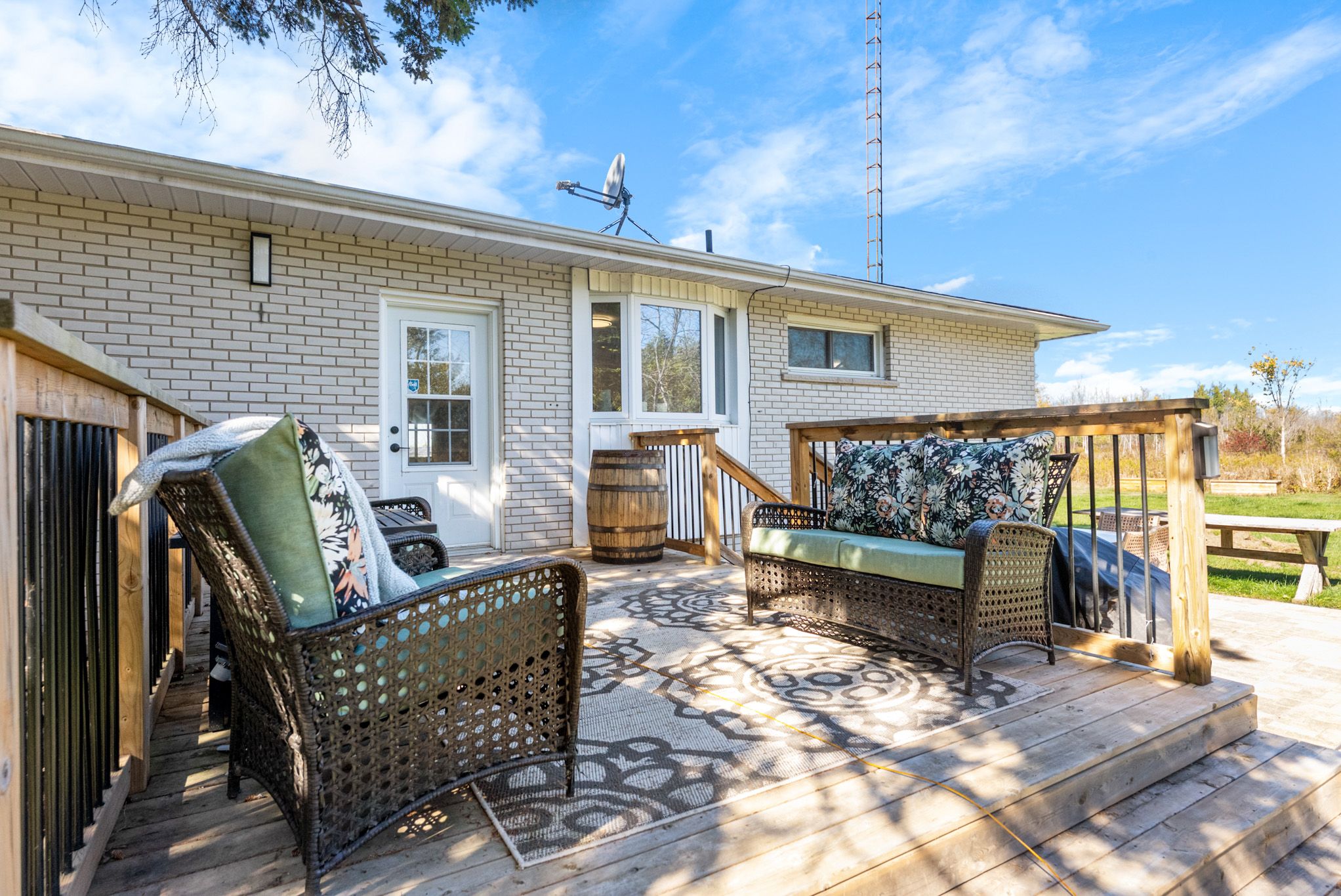 Welcome to 3580 drake road, a charming bungalow located on a quiet road just north of kingston. This charming 3 bedroom home is situated on a 200 foot lot and boasts over 1,600 square feet of finished living space with no rear, front, or side neighbours being the only home on this road making it a perfect blend of country style living while being just a quick few minutes from kingston's west end! Alongside the 3 bedrooms and 1. 5 bathrooms, the home features a spacious living room with a wood burning fireplace and a huge bay window letting lots of natural light in while also showcasing the private outdoor scenery. As you continue through the home you'll find an updated kitchen with newer appliances and a walk-out to the newer deck and patio (2021) accompanied by the huge open yard which is great for the family dog to run around in, outdoor family activities, summer bonfires, or even a pool! Other features of the home include a dining area, another family/living room with an entertainment bar, pellet stove, and another entrance to the outdoors. Alongside all of the home's updates and cozy features, you'll find tons of storage throughout and a detached double car garage which can be used for parking the cars in the winter, more storage, or making it your own personal workshop! Sellers have done vinyl plank flooring throughout (2021), painting (2020), kitchen cabinets and countertops (2020), new appliances (2024), wainscoting in guest bedroom (2021), accent wall in primary bedroom (2024), trim (2020) and new light fixtures over the 5 years they have lived here! Ready to call this place home? Come and check this beautiful spot out today!