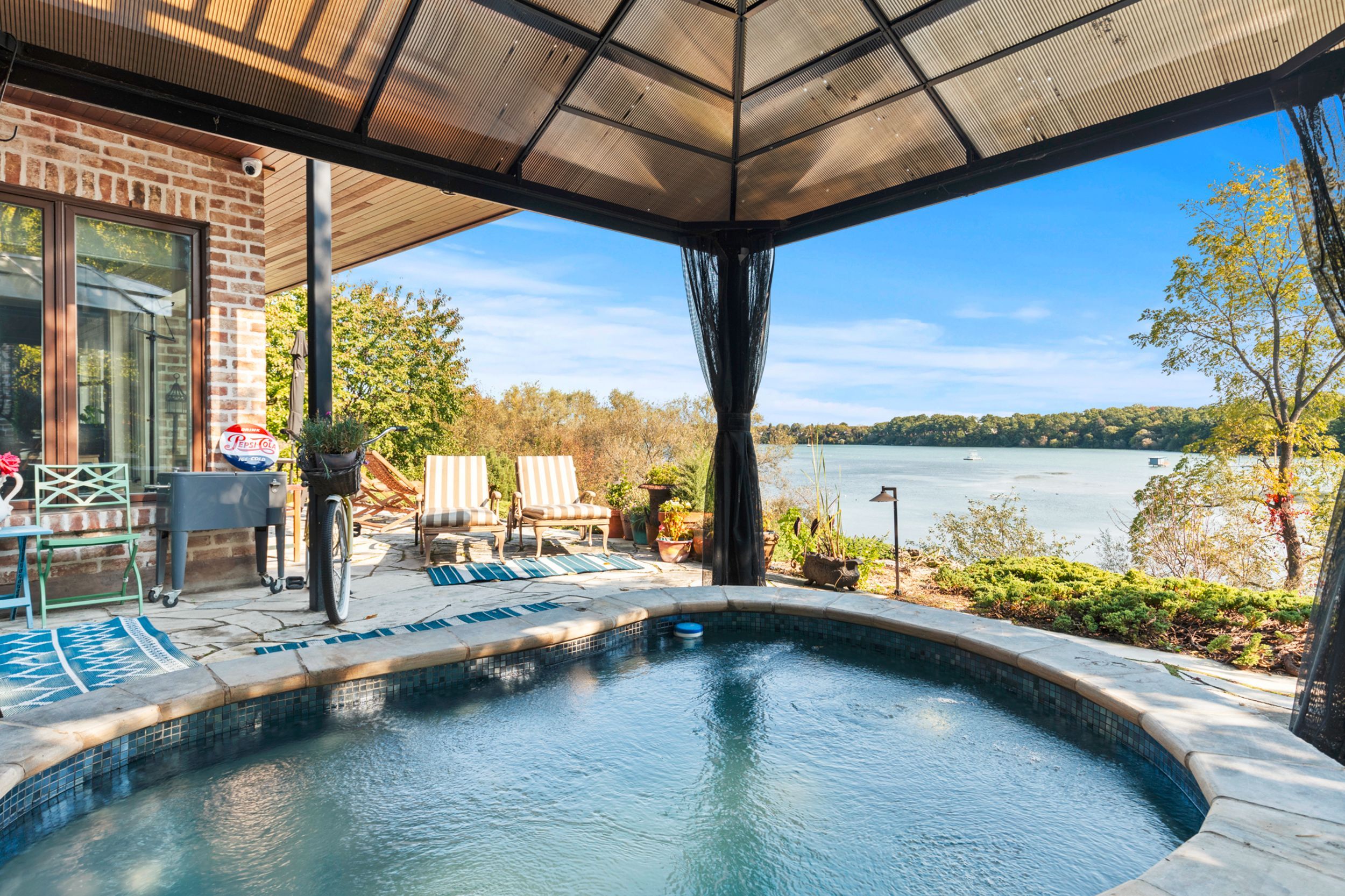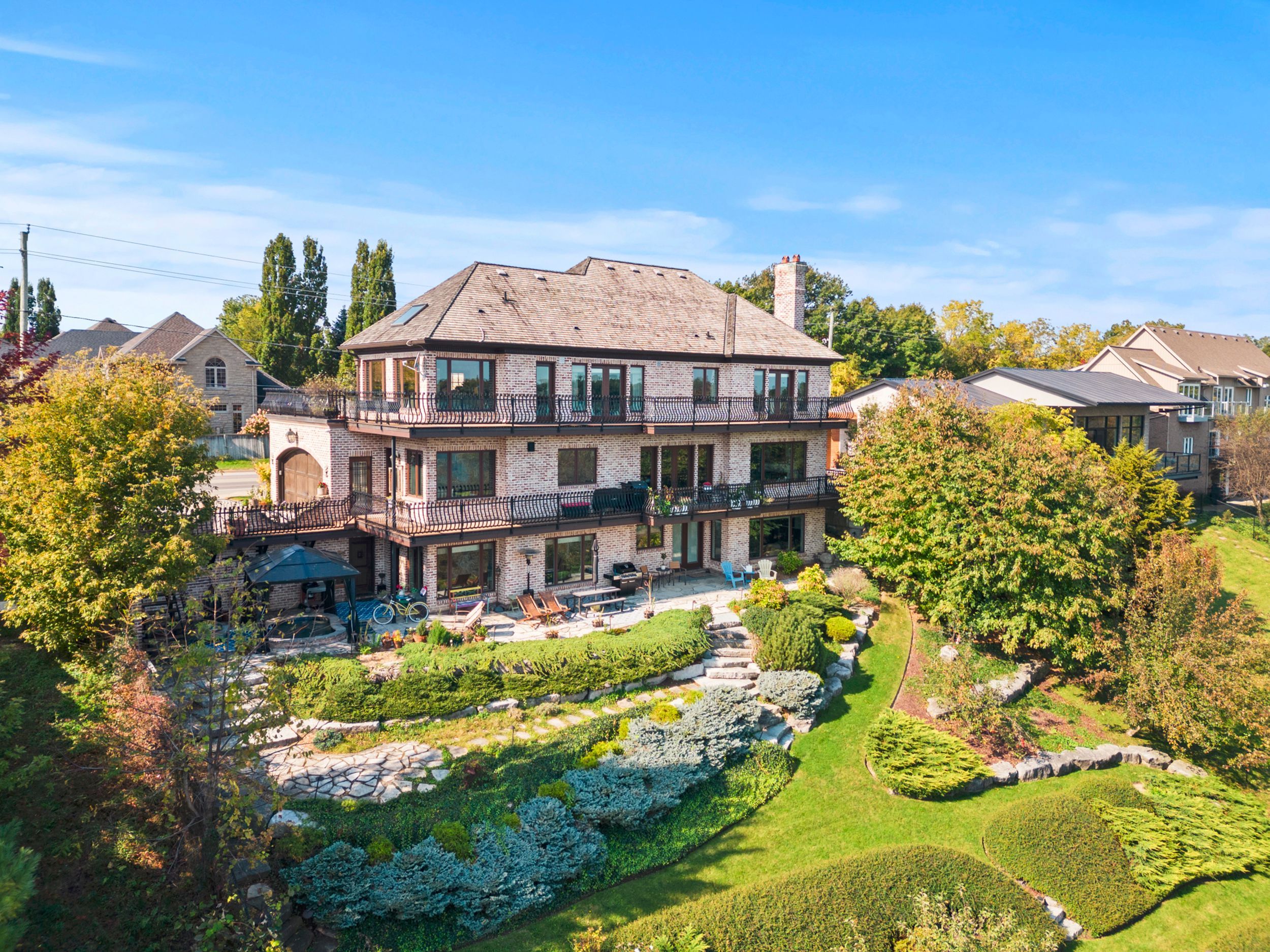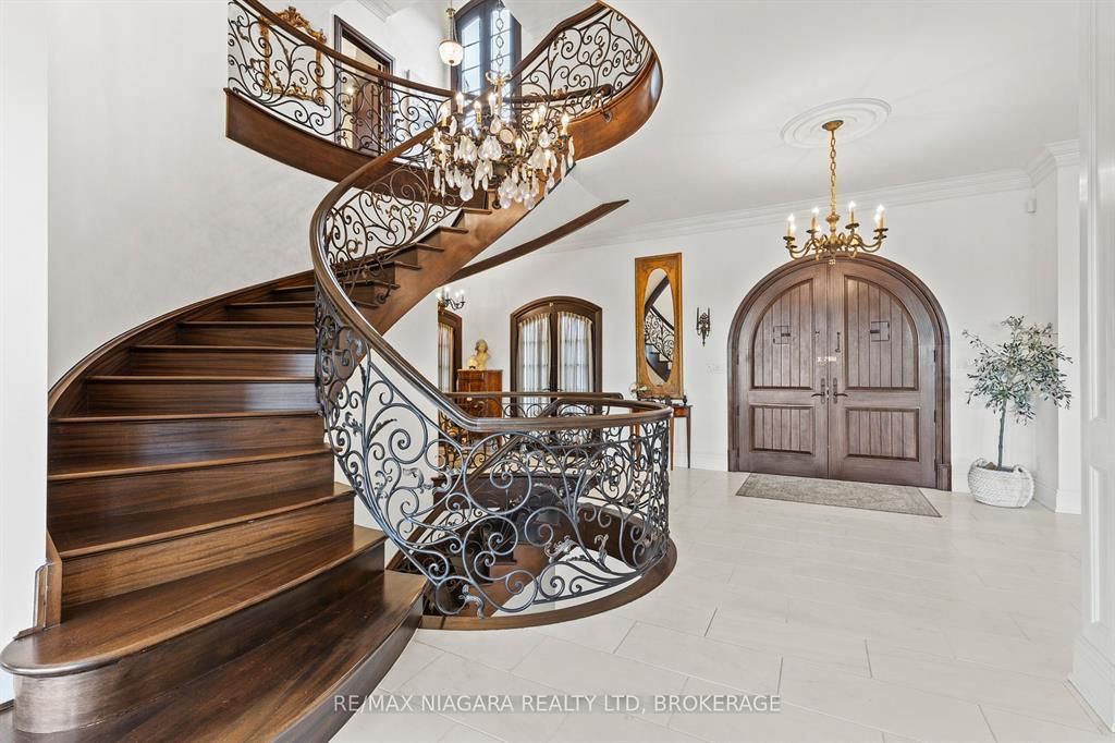 Pristine waterfront living meets timeless european elegance. This extraordinary custom built two-story residence offers over 4500 sq ft of beautifully crafted living space, designed to capture panoramic views of martindale pond. Home to the prestigious royal canadian henley rowing course. From its graceful archways and terracotta rooflines to its warm brick exterior and charming wrought-iron accents, this home exudes mediterranean charm and architectural sophistication. Step inside and be greeted by sun-drenched interior, soaring ceilings, elegant tile, custom hardwood flooring and expansive windows that frame tranquil water views in nearly every room. The heart of the home features a grand spiral staircase spanning three floors and a gourmet chefs kitchen that flows into spacious open-concept living and dining areas. Multiple walkouts lead to peaceful terraces, private gardens, and an intimate outdoor living area where you can enjoy morning espresso or evening wine by the waters edge. The second floor has a 15ft x 18ft primary suite with 17ft x 8ft custom walk-in closet and 5-pc ensuite featuring floor to ceiling tiled glass shower and spa-like tub with double sinks. The large second bedroom also includes beautiful panoramic views of the pond. Make your way to the third bedroom with large windows overlooking the pond with access to a roof-top patio for relaxation. The lower level features an additional living space with second kitchen, two additional bedrooms, large laundry area and built-in sauna to keep the relaxation going. The backyard features a custom inground stone hot-tub with outdoor shower area for enjoying those zen moments in life. With pond access, the water enjoyment is limitless. Whether you're savoring the peaceful ambiance, hosting unforgettable gatherings, or simply enjoying the beauty of nature from your own backyard oasis, this property offers a lifestyle of serenity and sophistication. Luxury certified.