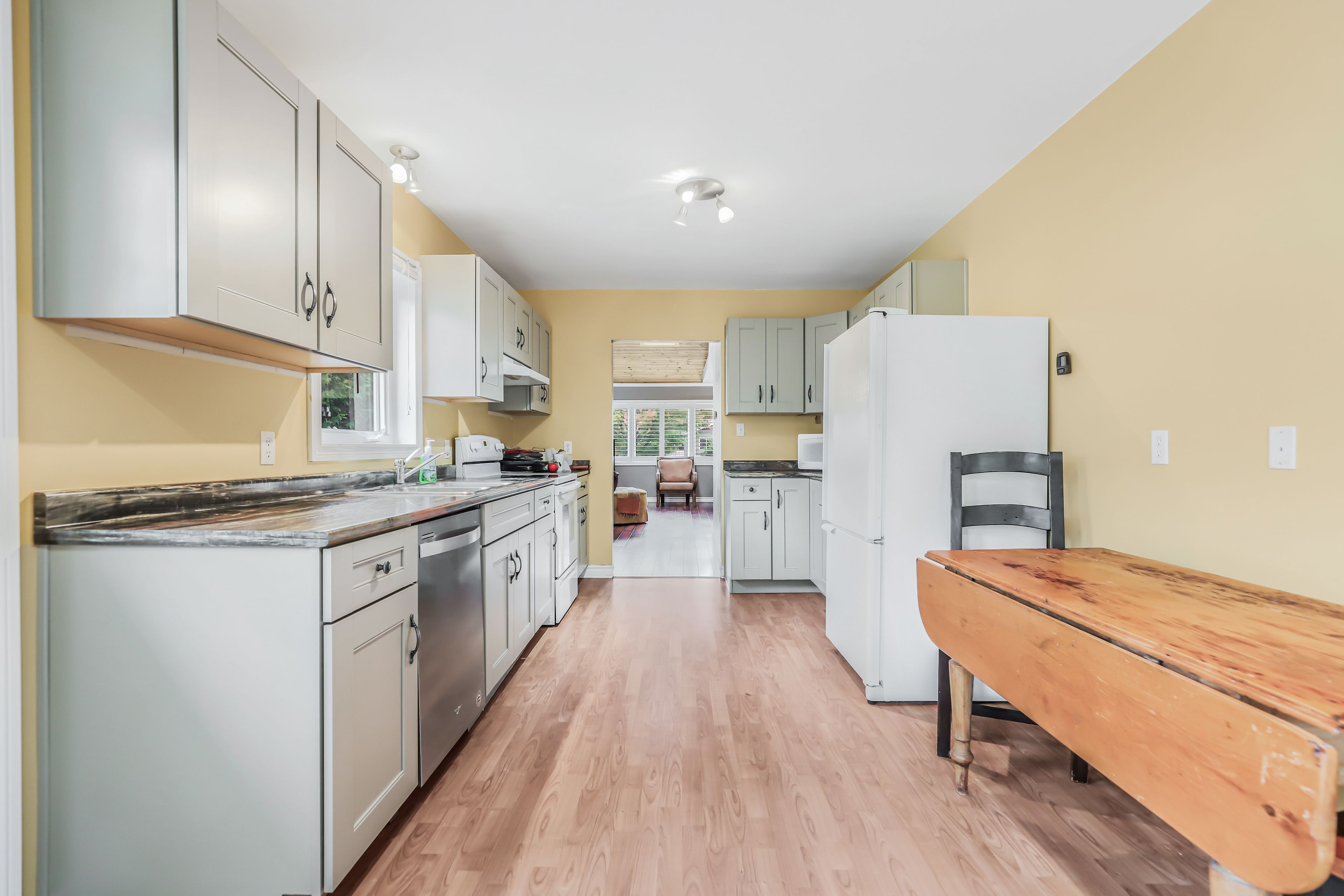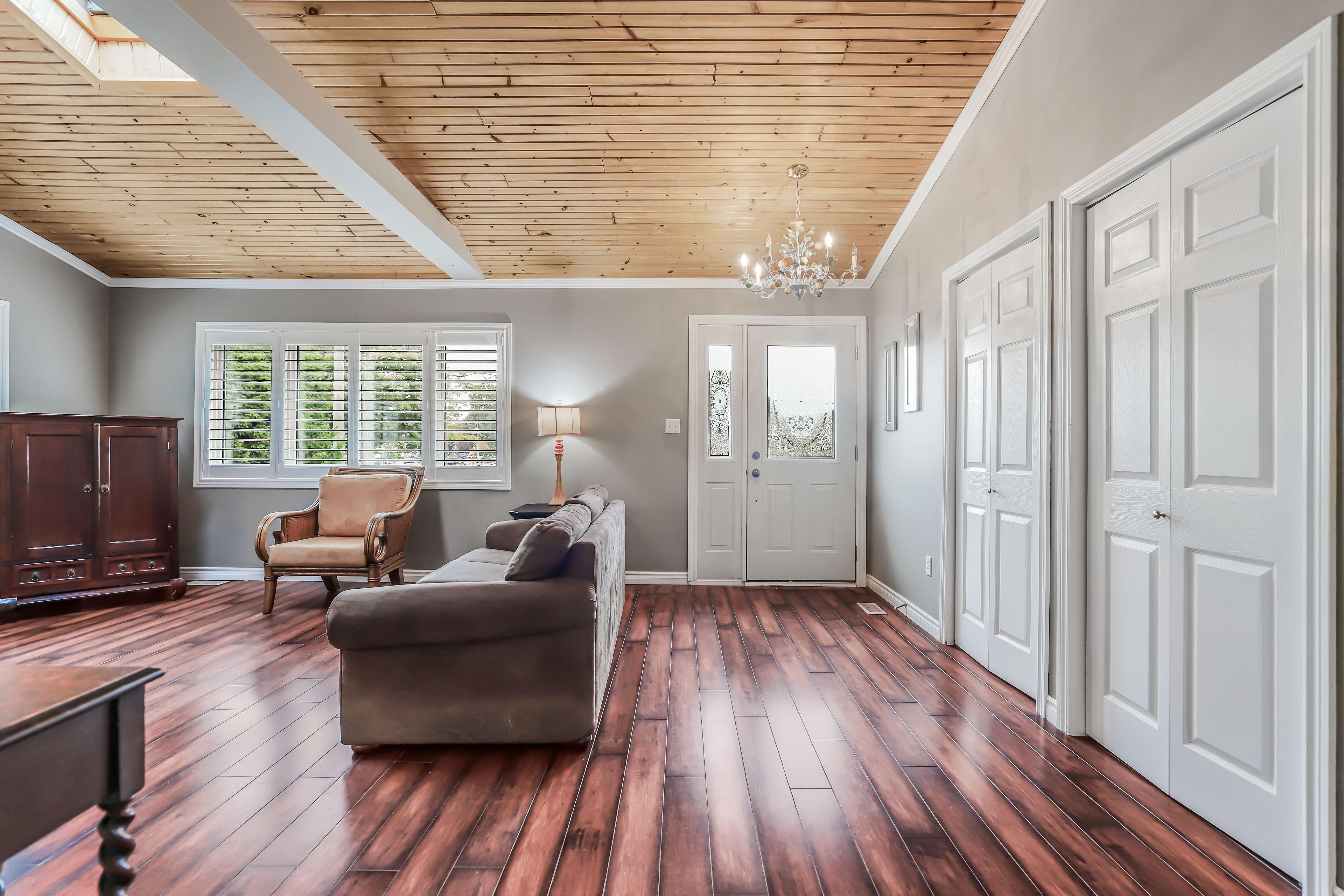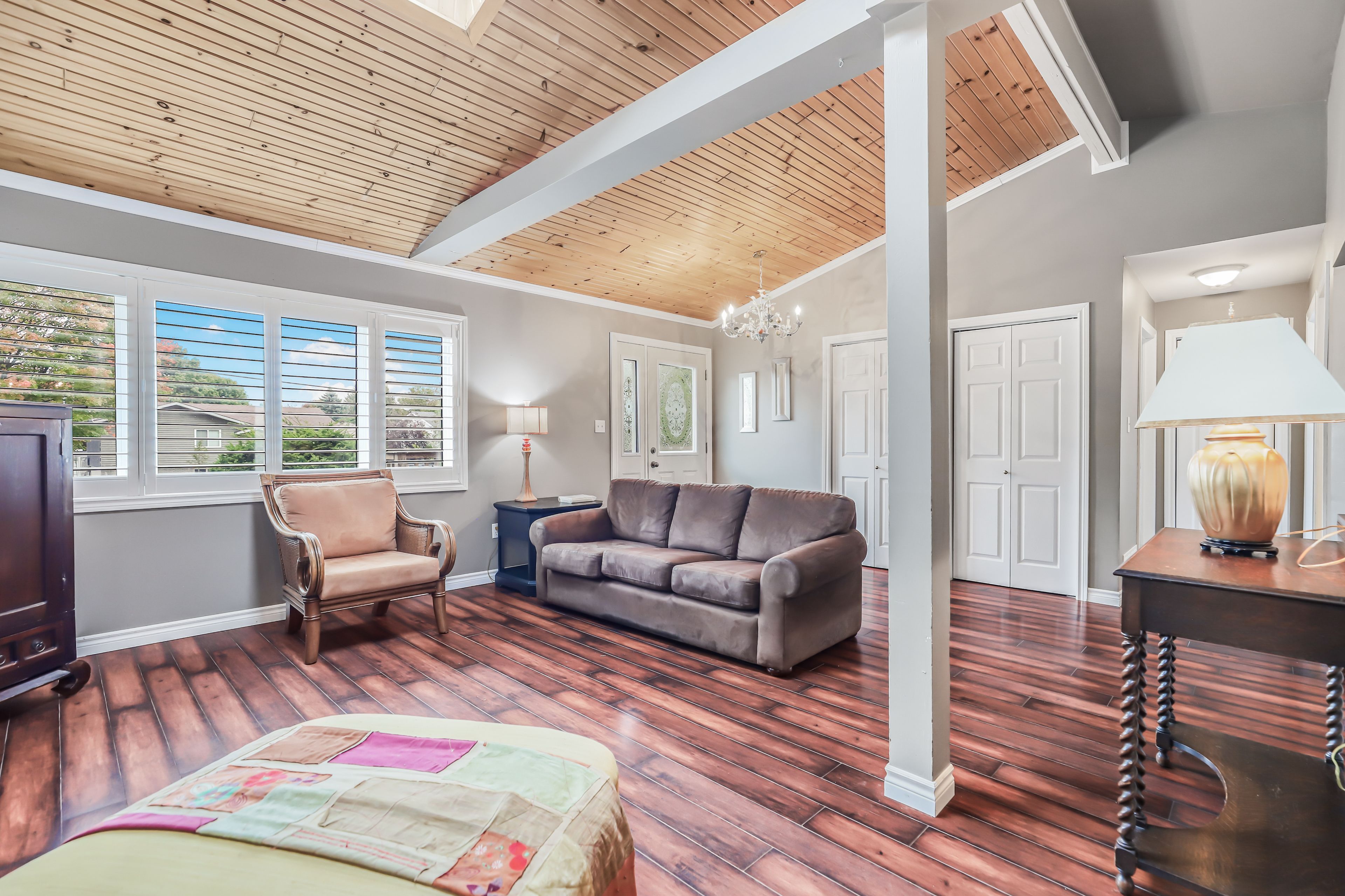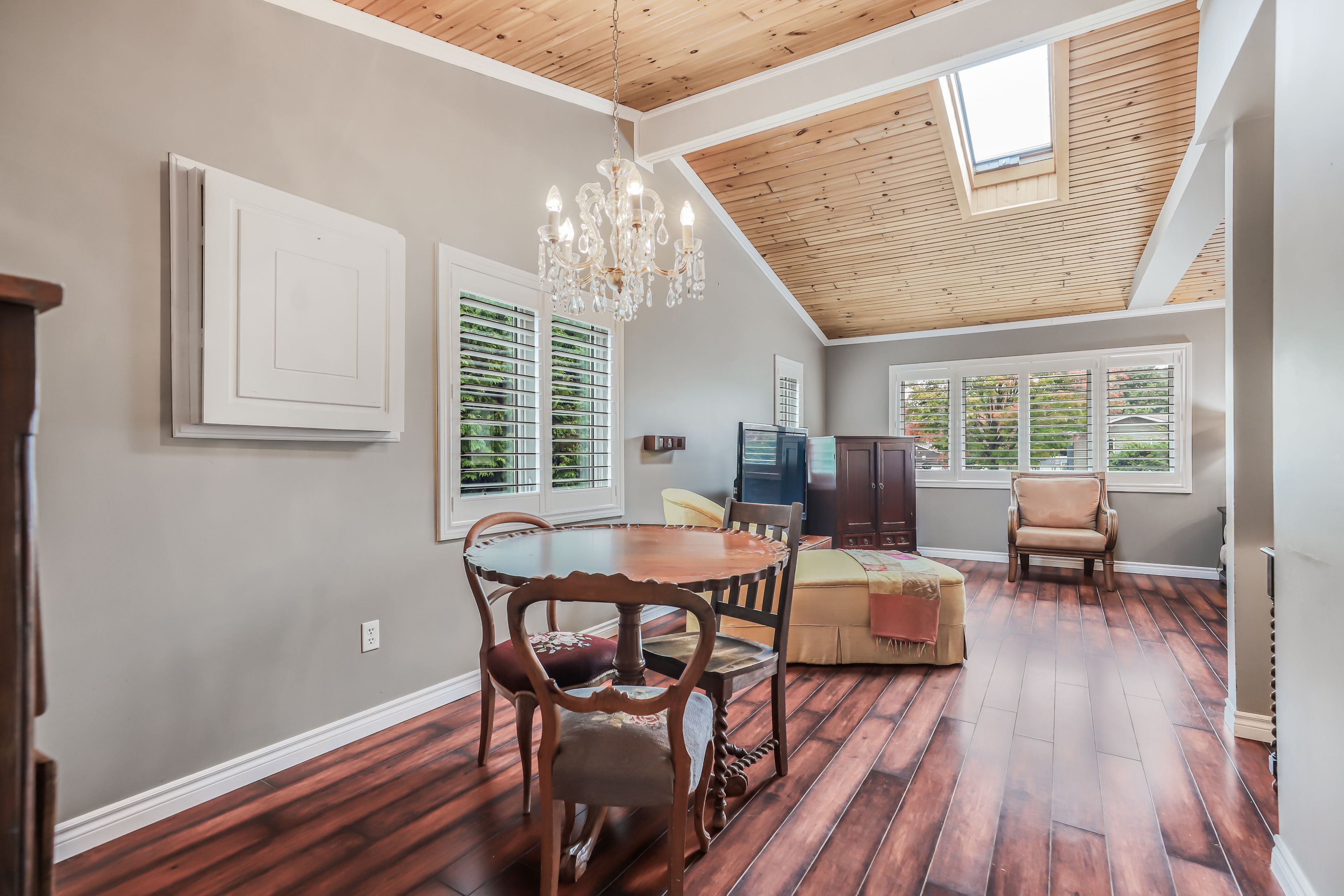 • Bright living room with skylight and cathedral ceiling for ample light.