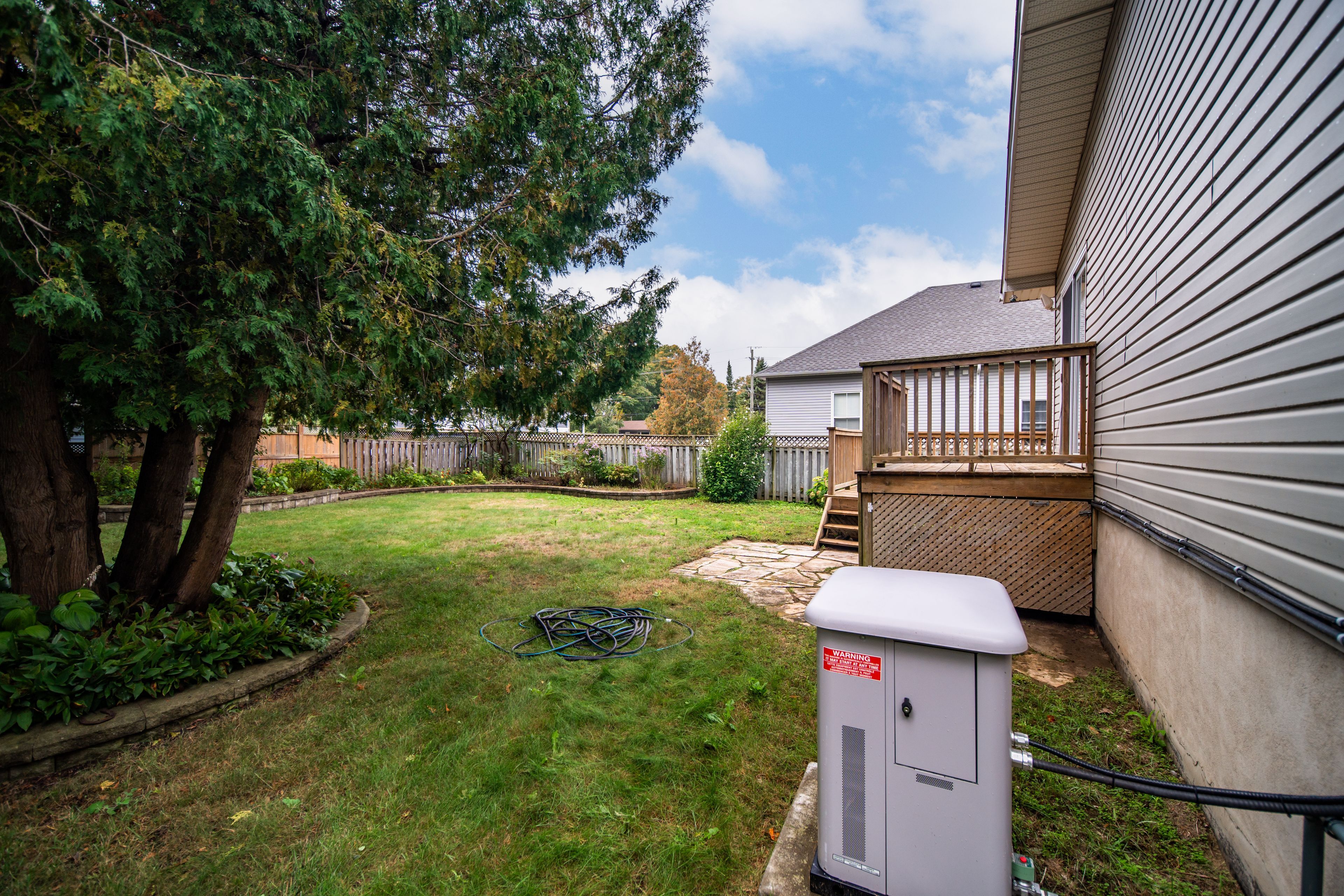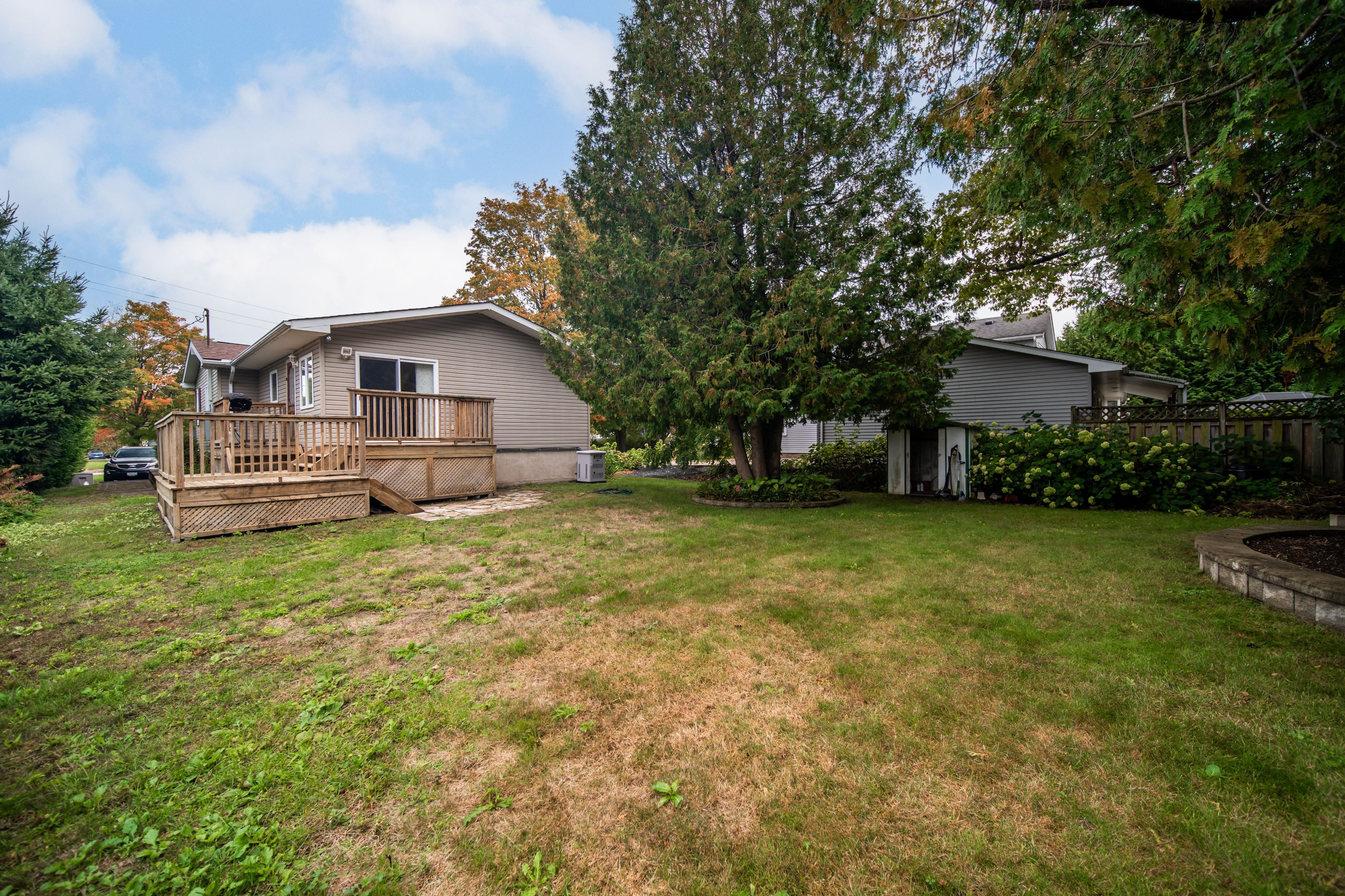 • Private rear yard with garden shed and mature gardens for relaxation.