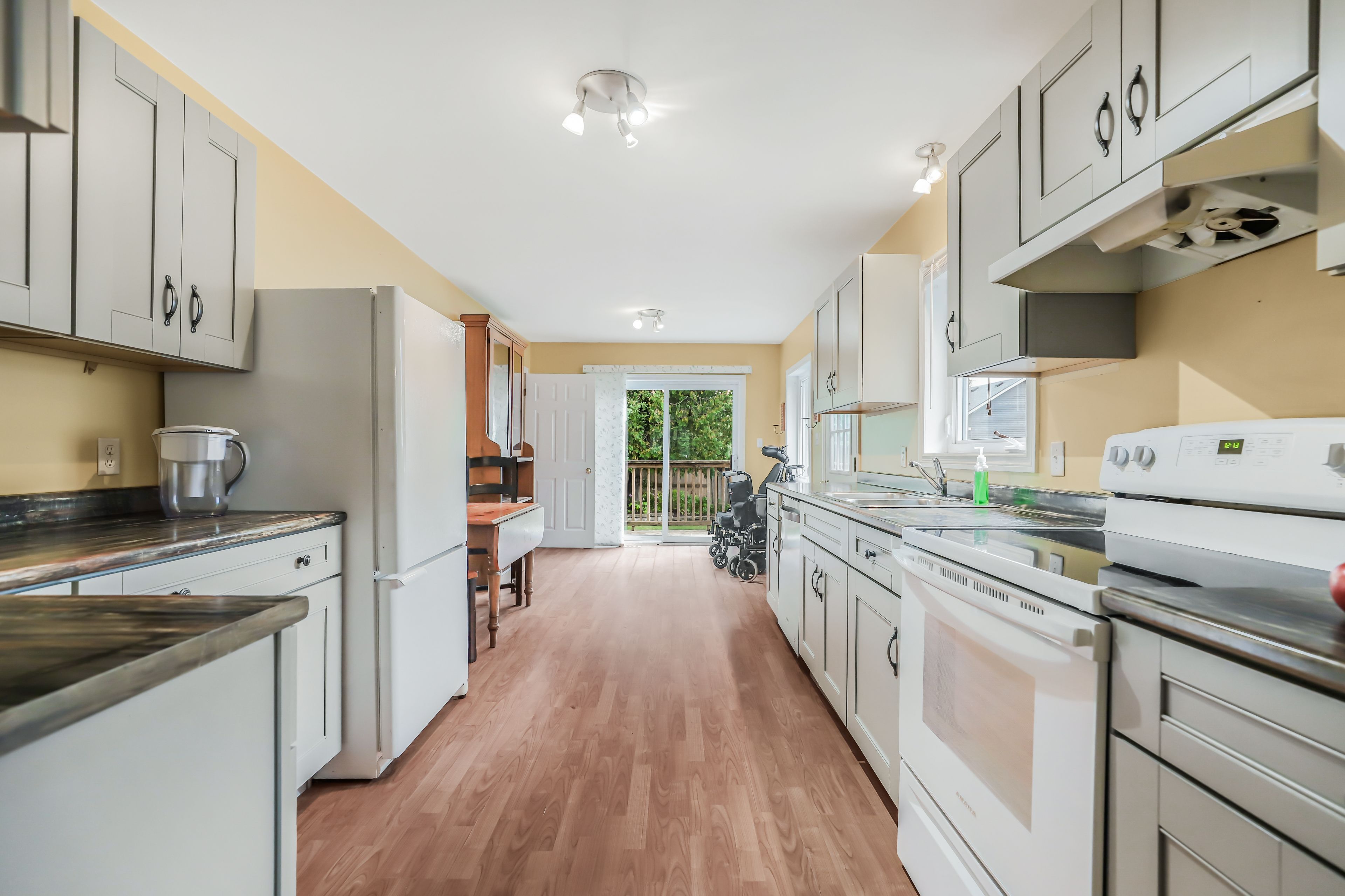 • Eat-in kitchen overlooks a spacious rear deck and yard.