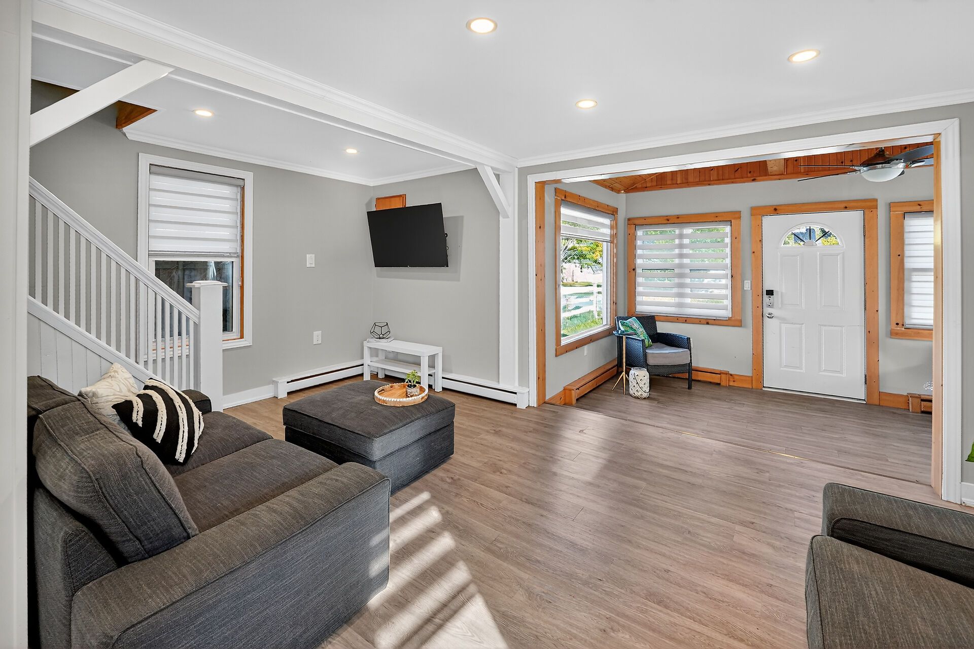 Welcome to this perfect lakeside investment property in the heart of crystal beach! This beautifully maintained 3 bedroom home is just steps from bay beach, making it an ideal opportunity for a great home, investors or those seeking a personal beach retreat. Upon entering this 1. 5 storey 3 bedroom, 1 bath home you'll be greeted with tons of natural lighting. The open concept main floor layout includes kitchen, dining room, living room, 3pc bath and an additional sunroom/den. Venture upstairs and discover two spacious bedrooms adjacent from one another. Patio door just off the kitchen leads to a fully fenced, hard-scaped, low maintenance private backyard- perfect for entertaining. The property features two car parking with additional space to add more. Convenient highway access to buffalo ny and niagara falls, on. Many updates, some include; foundation, boiler, windows, flooring and more! Home is in the r2b zone and has been legally operating as a short term rental. The licences are not transferrable but we can help make the process easy for you!! Don't miss your chance to own a piece of crystal beach paradise!