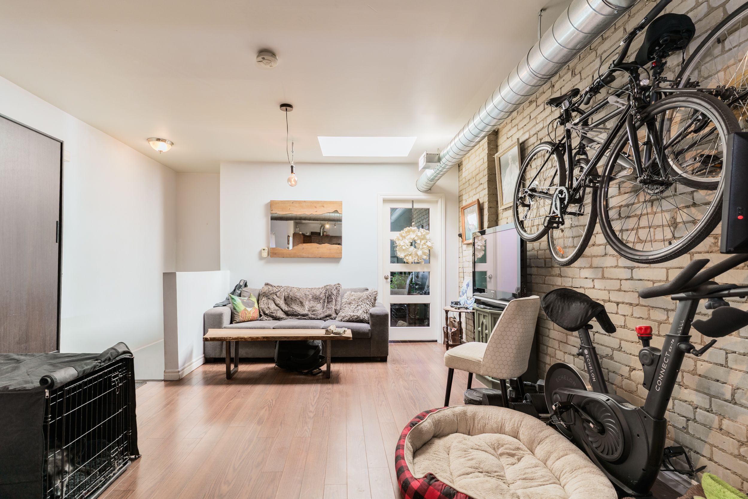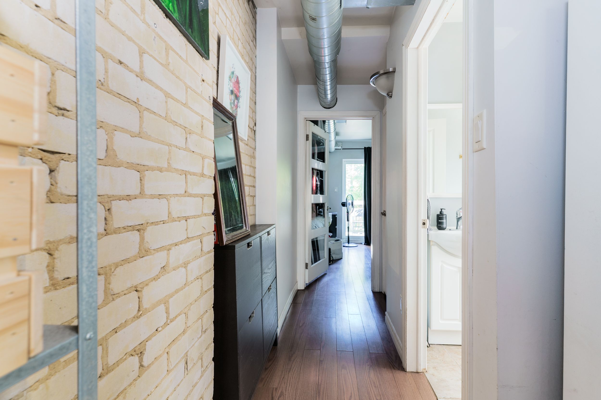 • Exposed brick walls and wood flooring create a unique vibe.
