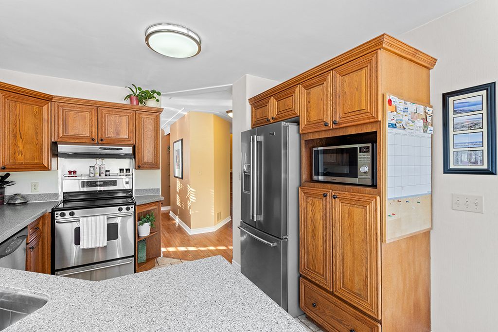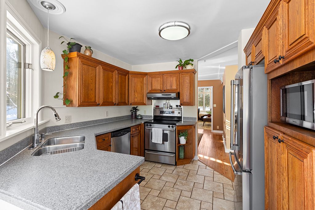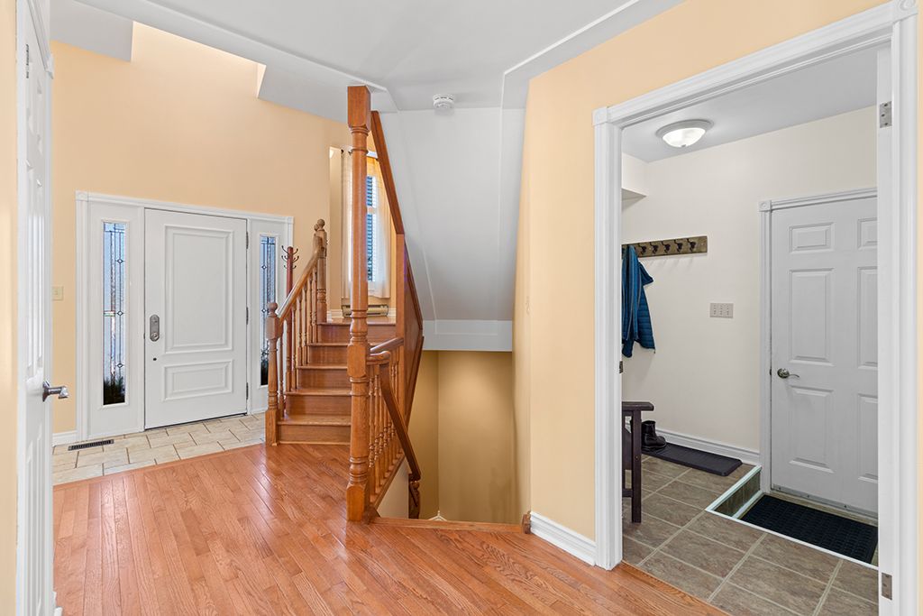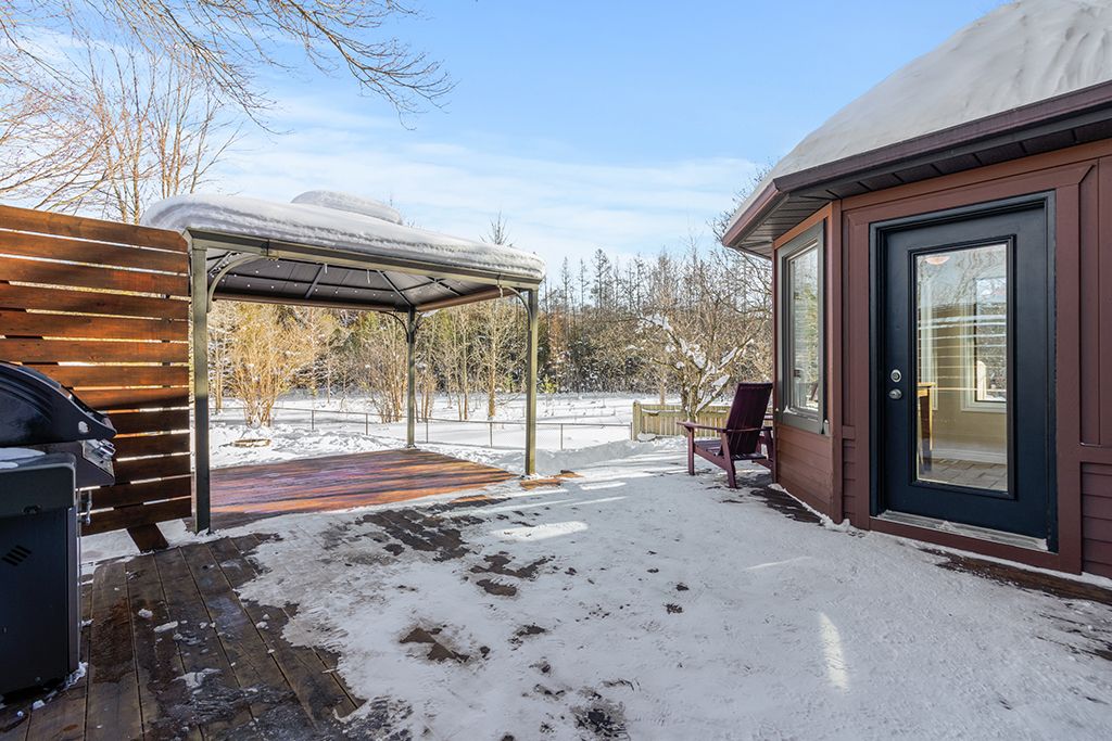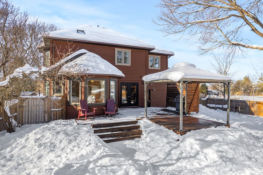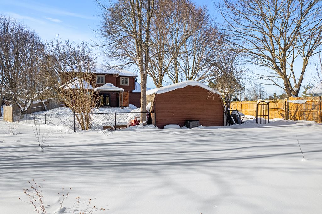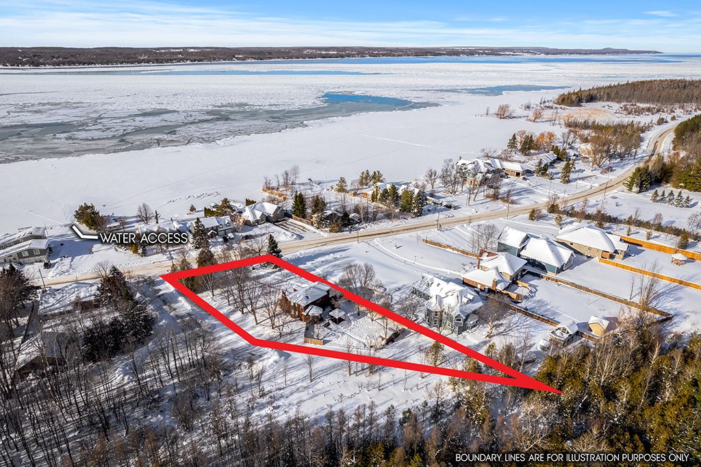 Welcome to this well-appointed and beautifully maintained two-storey home offering privacy, functionality and a serene natural setting across the road from georgian bay. Situated on a landscaped lot with a fully fenced rear yard and a wooded backdrop, this property provides a peaceful vibe while benefiting from modern conveniences including natural gas, a paved driveway and a double car garage. The main floor offers a bright and practical layout featuring a living room with vaulted ceilings, a separate formal dining room ideal for entertaining and a spacious kitchen with a breakfast nook and walk-out to an oversized deck with pergola; perfect for outdoor dining and relaxation. There is a separate main floor office with a walk out to the deck. Could easily double as a main floor den. A functional mudroom with direct access to the garage enhances everyday convenience. The second level includes three good-sized bedrooms, highlighted by a primary bedroom with a 4-piece ensuite bathroom. A recently updated guest bathroom completes the upper floor, providing comfort for family and guests. The partially finished lower level extends the living space with a welcoming rec room featuring a cozy gas fireplace, creating an ideal space for relaxation or entertaining. A combined bathroom and laundry room adds efficiency and functionality. Outdoors, the property continues to impress with a private fire pit area, garden shed and a backyard bordered by mature woods. An unopened road allowance located across the road offers convenient public access to the water, adding to the home's lifestyle appeal. Walk your kayak to georgian bay! This home is thoughtfully designed for relaxed living, entertaining and enjoying the natural surroundings. Just on the outskirts of owen sound, mins to hibou conservation area with trails and a sandy beach. A truly special property offering space, privacy and lifestyle all in one exceptional package.