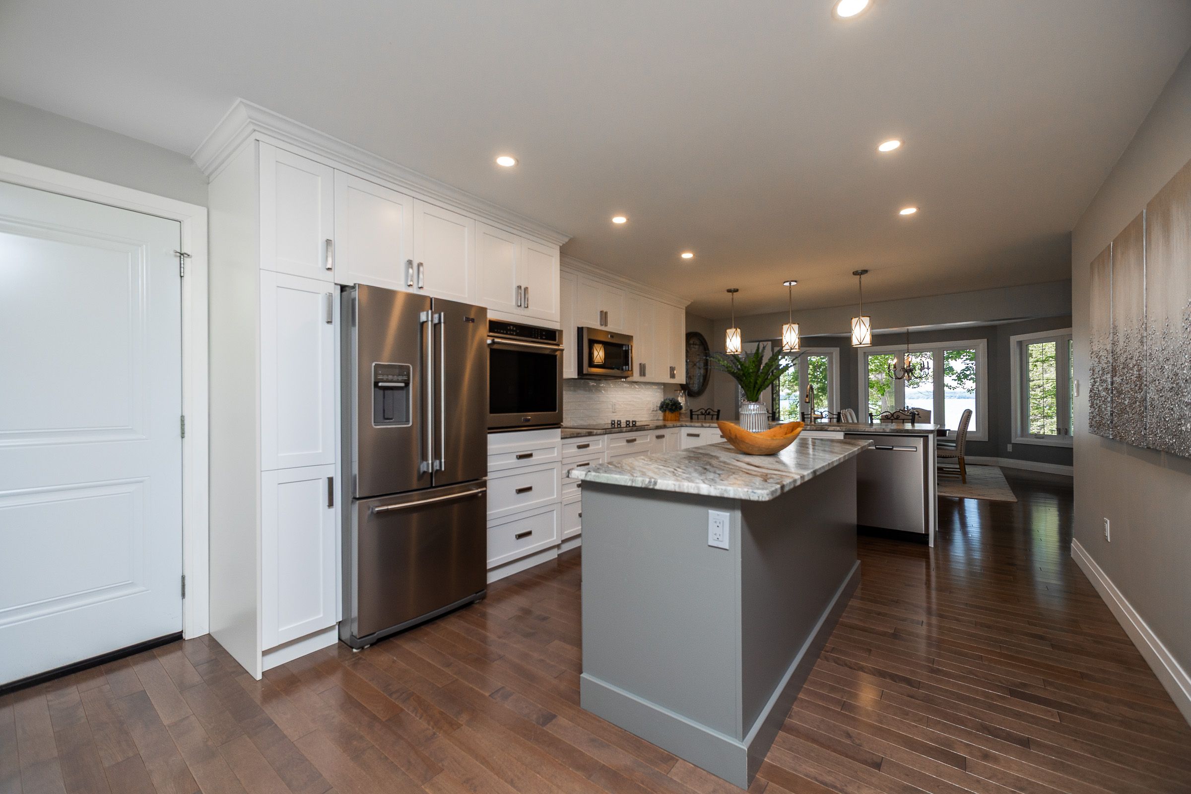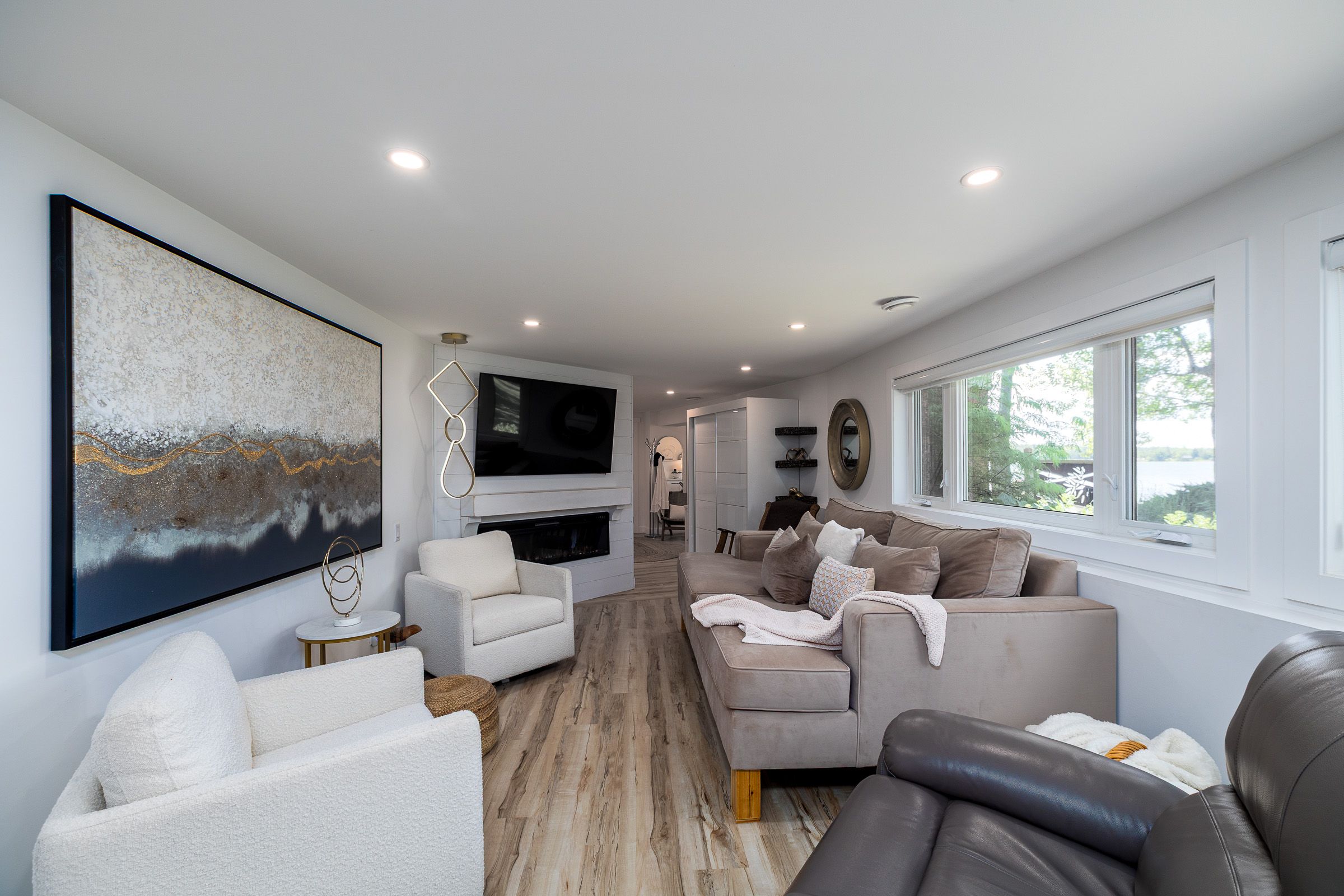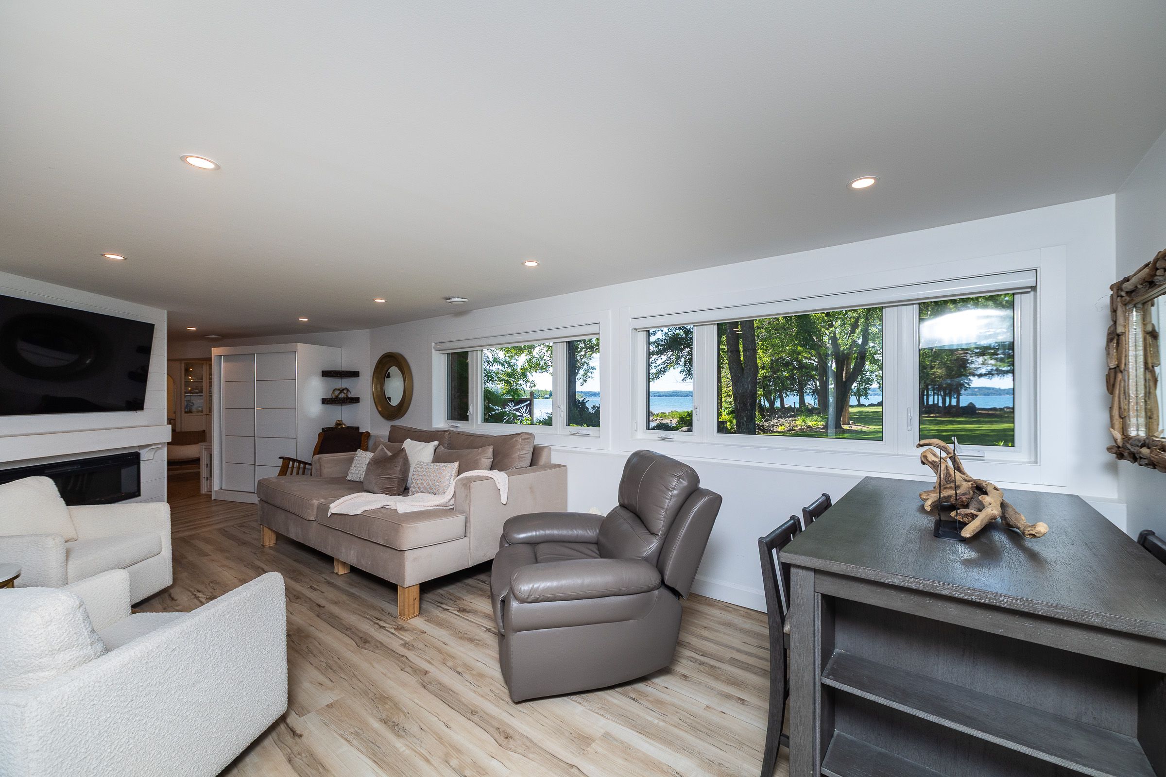 Welcome to 359288 grey rd 15, a beautifully updated georgian bay waterfront retreat just minutes from owen sound. This impeccably maintained 4-bedroom, 3 bathroom bungalow with attached garage offers over 400 ft of pristine shoreline, and is nestled on a sprawling, beautifully landscaped 0. 65 acre lot with panoramic views and unforgettable sunsets. Designed with both comfort and sophistication in mind, the main level features a spacious, open concept eat-in kitchen complete with a granite island- ideal for entertaining- flowing seamlessly into a stunning dining room addition with expansive windows that frame the captivating waterfront. The main floor also hosts a powder room, living room with gas fireplace, two generously sized bedrooms and a spa-inspired bathroom showcasing exquisite tilework and glass walk-in shower. Energy-efficient ground source heating ensures year-round comfort. The fully finished lower level, with its own private entrance, offers exceptional versatility- perfect for extended family or guests- featuring a second dine-in kitchen with quartz countertops, a welcoming living room with electric fireplace, two additional bedrooms, and a beautifully appointed 4-pc bath with soaking tub and tiled shower. Step outside and the multiple entertaining areas, a spacious dock, and thoughtfully designed spaces invite you to relax and enjoy the very best of refined waterfront living.