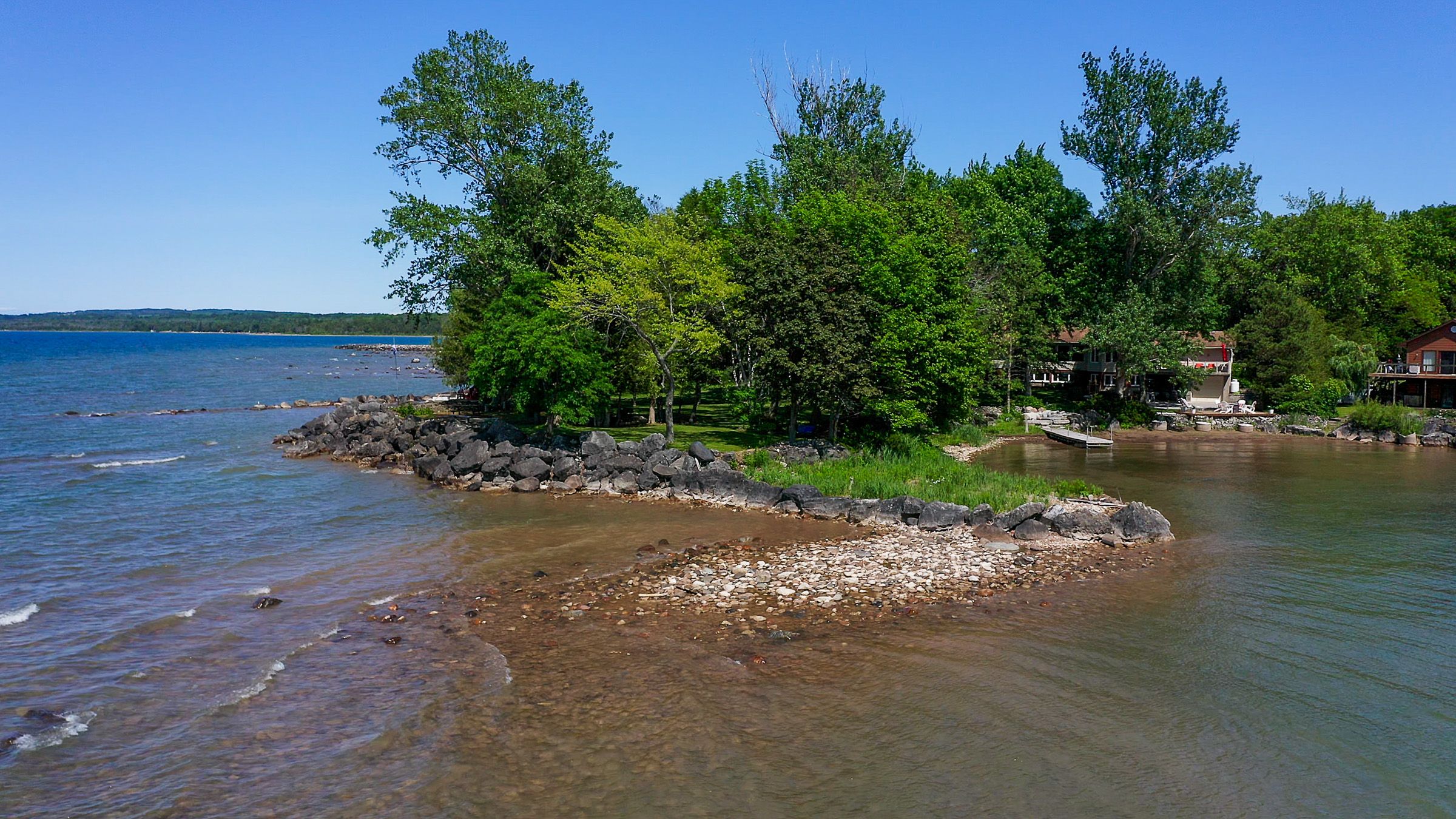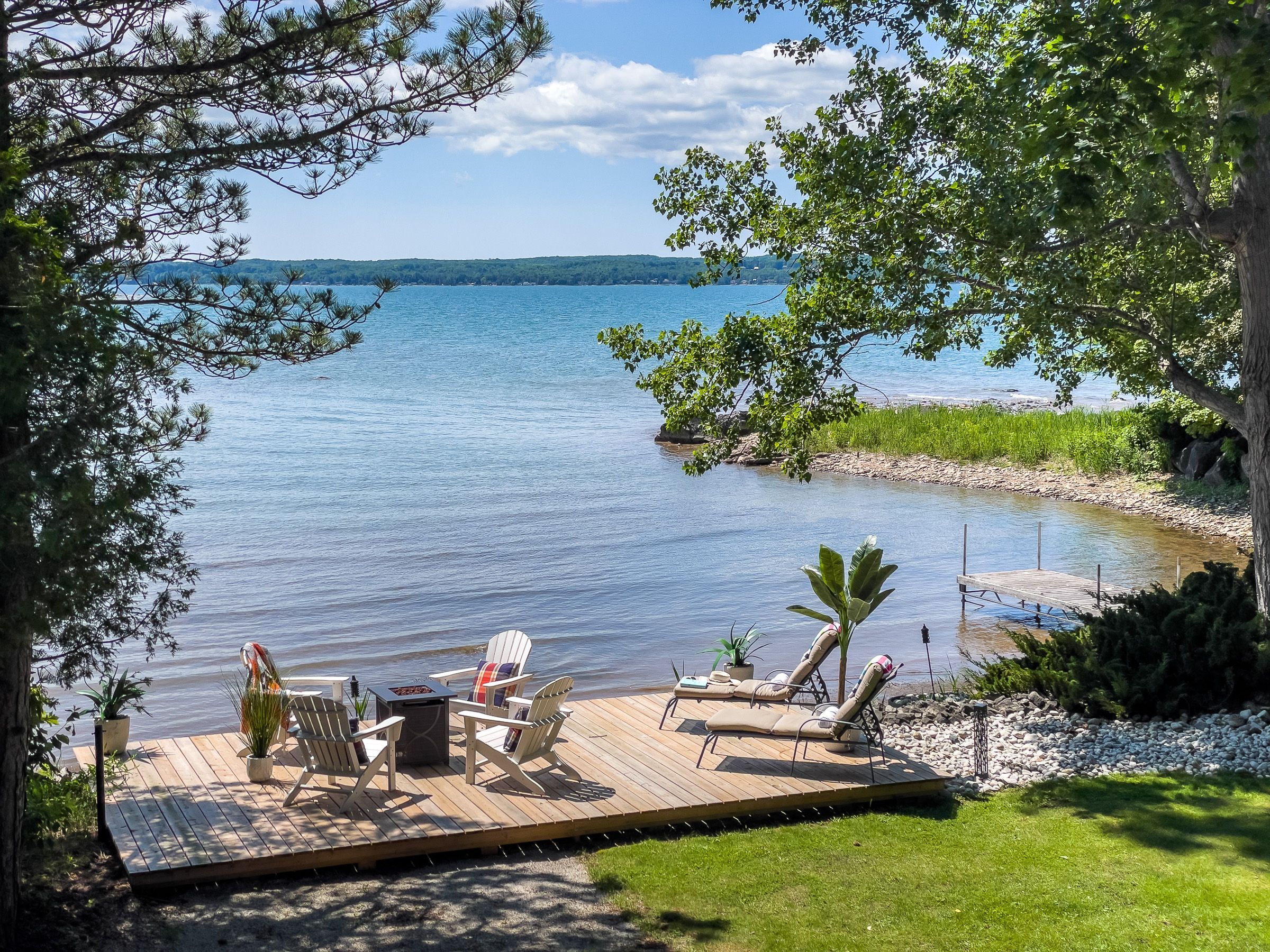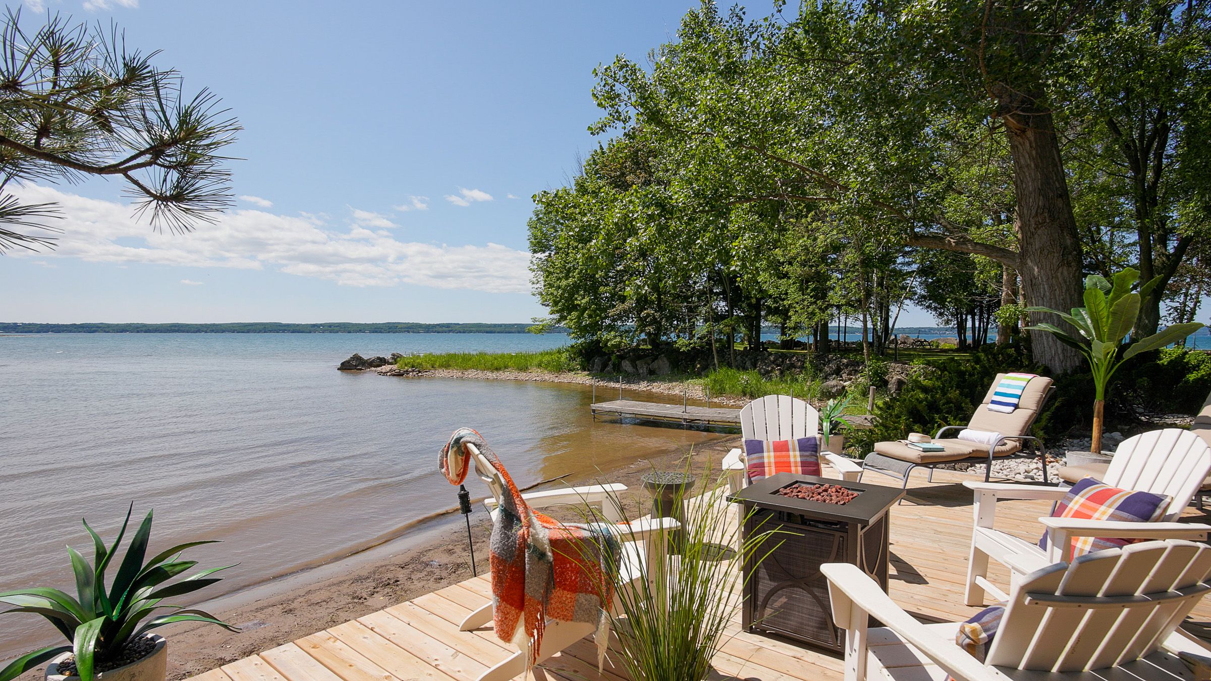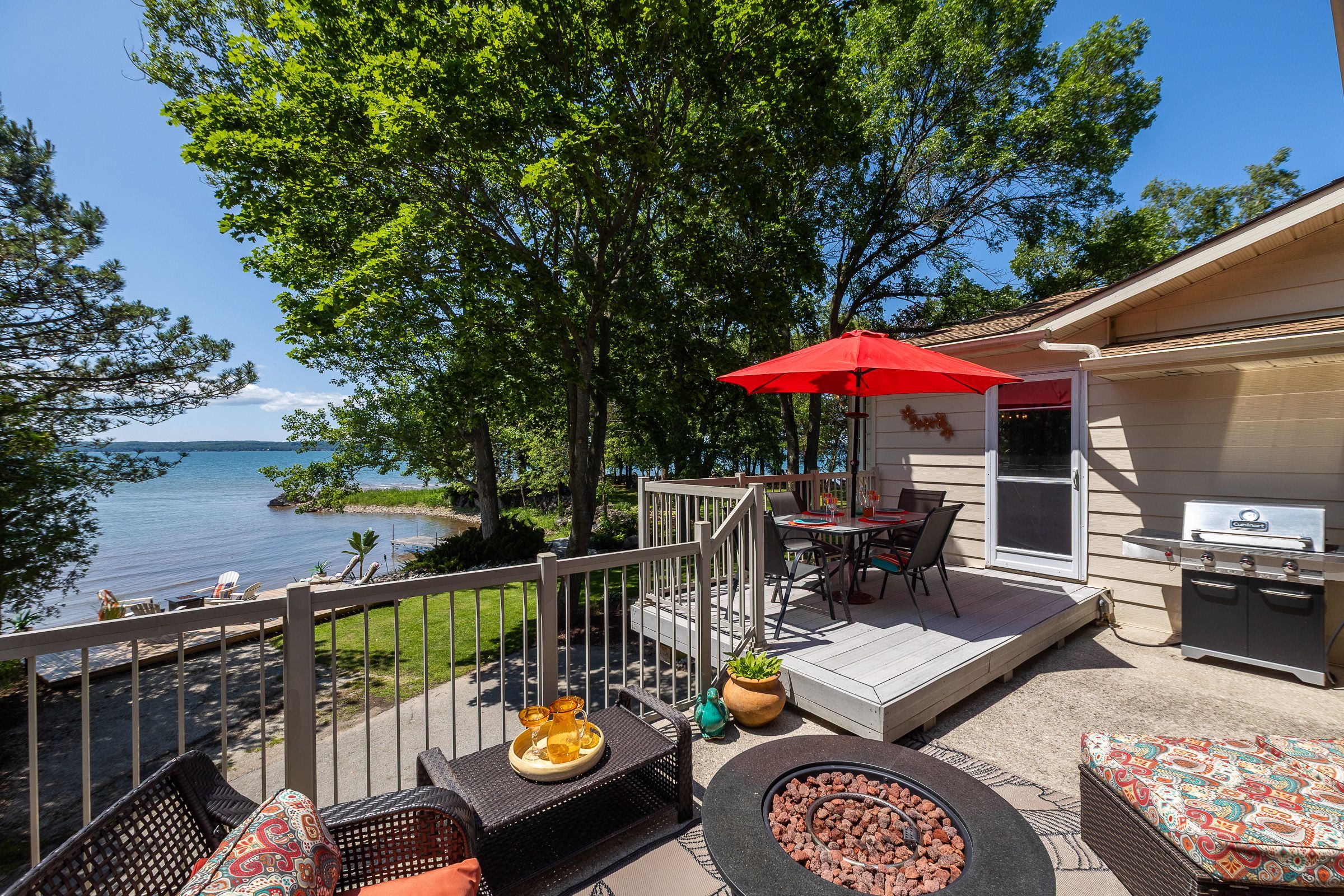 Welcome to 359288 grey rd 15, a beautifully updated georgian bay waterfront retreat just minutes from owen sound. This impeccably maintained 4-bedroom, 3 bathroom bungalow with attached garage offers over 400 ft of pristine shoreline, and is nestled on a sprawling, beautifully landscaped 0. 65 acre lot with panoramic views and unforgettable sunsets. Designed with both comfort and sophistication in mind, the main level features a spacious, open concept eat-in kitchen complete with a granite island- ideal for entertaining- flowing seamlessly into a stunning dining room addition with expansive windows that frame the captivating waterfront. The main floor also hosts a powder room, living room with gas fireplace, two generously sized bedrooms and a spa-inspired bathroom showcasing exquisite tilework and glass walk-in shower. Energy-efficient ground source heating ensures year-round comfort. The fully finished lower level, with its own private entrance, offers exceptional versatility- perfect for extended family or guests- featuring a second dine-in kitchen with quartz countertops, a welcoming living room with electric fireplace, two additional bedrooms, and a beautifully appointed 4-pc bath with soaking tub and tiled shower. Step outside and the multiple entertaining areas, a spacious dock, and thoughtfully designed spaces invite you to relax and enjoy the very best of refined waterfront living.
