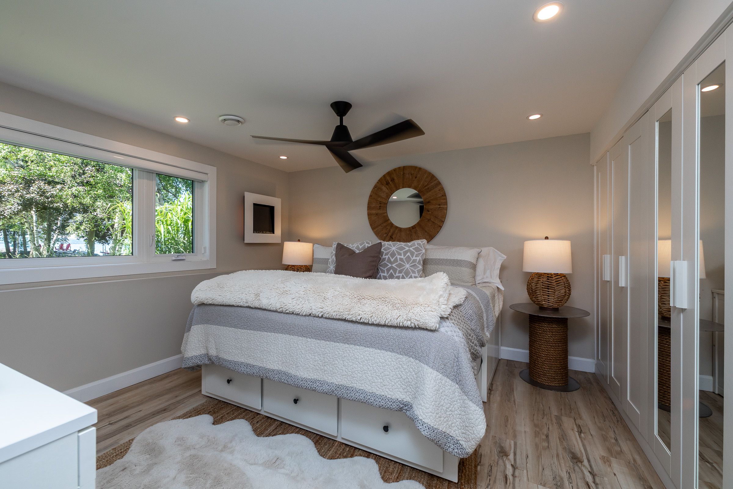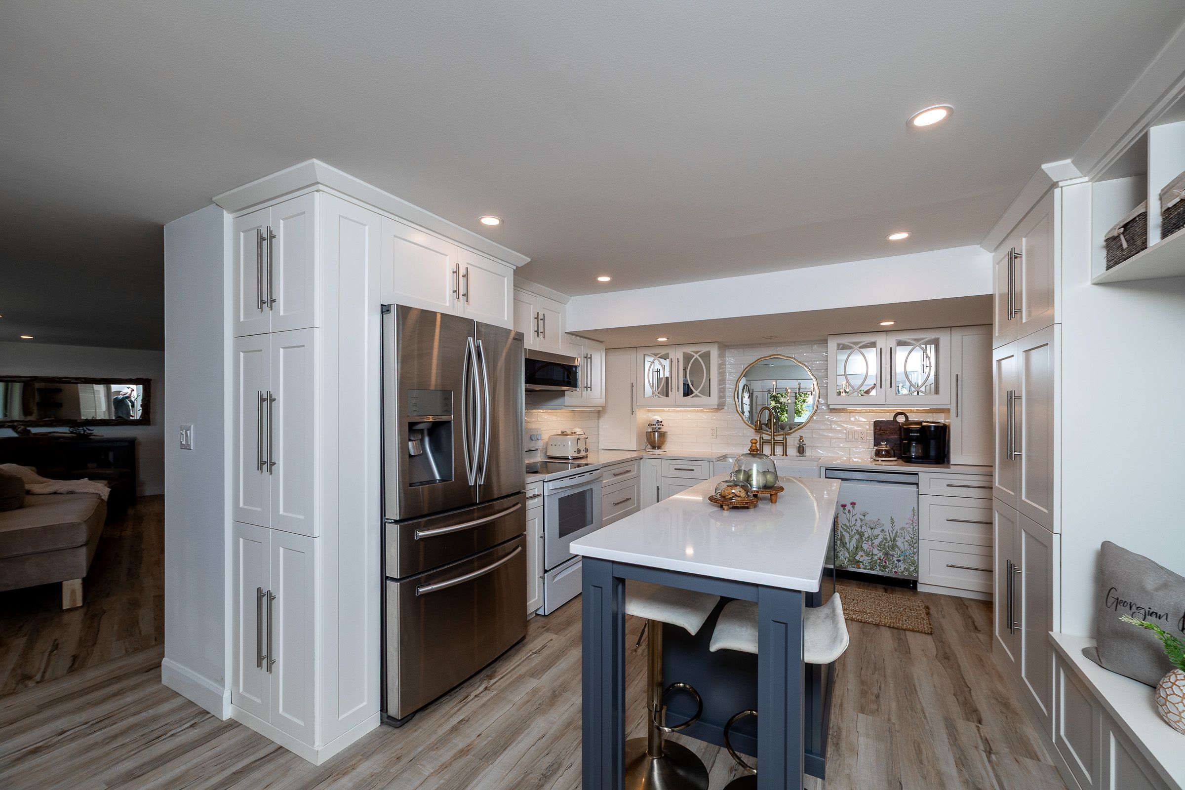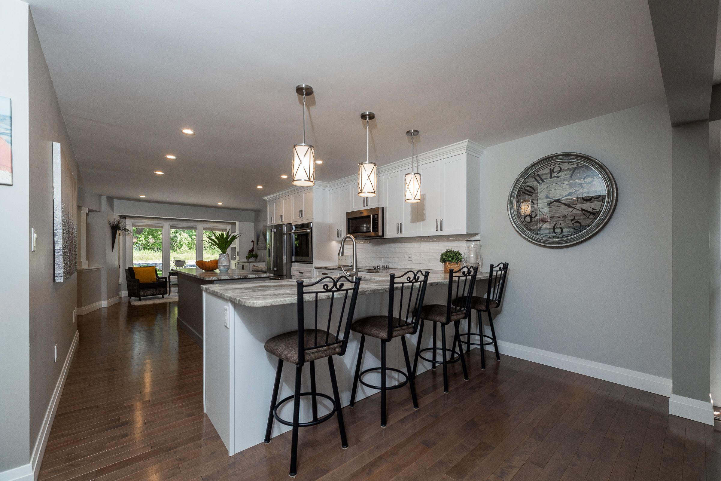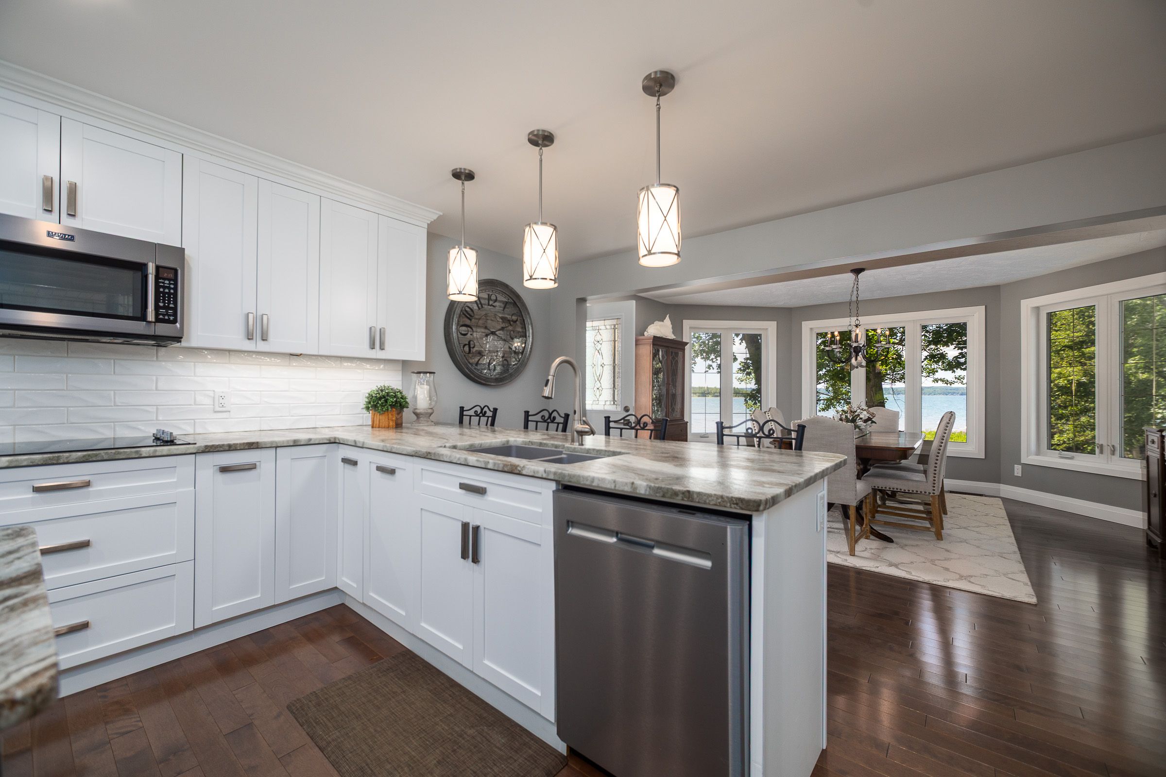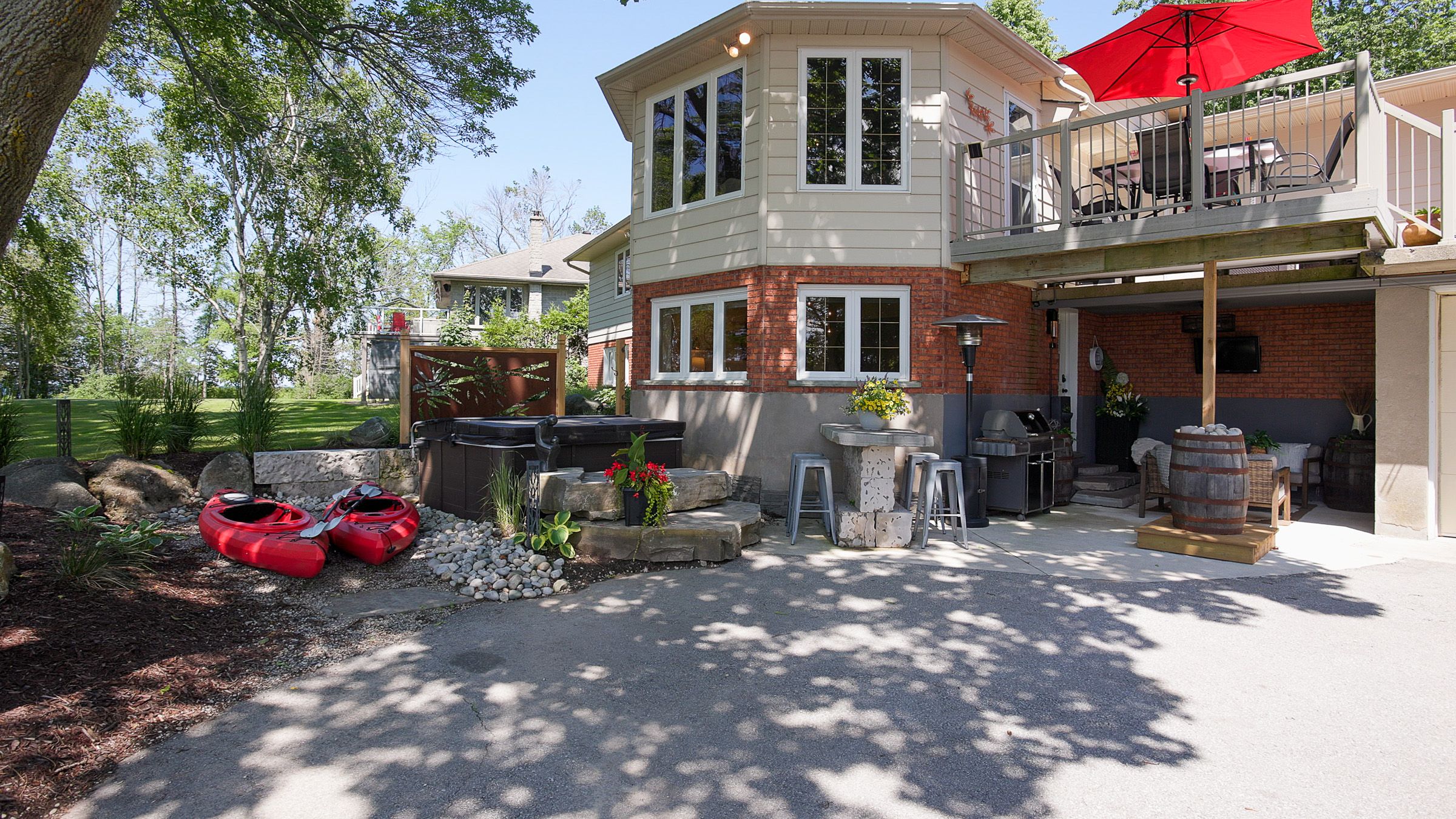 Welcome to 359288 grey rd 15, a beautifully updated georgian bay waterfront retreat just minutes from owen sound. This impeccably maintained 4-bedroom, 3 bathroom bungalow with attached garage offers over 400 ft of pristine shoreline, and is nestled on a sprawling, beautifully landscaped 0. 65 acre lot with panoramic views and unforgettable sunsets. Designed with both comfort and sophistication in mind, the main level features a spacious, open concept eat-in kitchen complete with a granite island- ideal for entertaining- flowing seamlessly into a stunning dining room addition with expansive windows that frame the captivating waterfront. The main floor also hosts a powder room, living room with gas fireplace, two generously sized bedrooms and a spa-inspired bathroom showcasing exquisite tilework and glass walk-in shower. Energy-efficient ground source heating ensures year-round comfort. The fully finished lower level, with its own private entrance, offers exceptional versatility- perfect for extended family or guests- featuring a second dine-in kitchen with quartz countertops, a welcoming living room with electric fireplace, two additional bedrooms, and a beautifully appointed 4-pc bath with soaking tub and tiled shower. Step outside and the multiple entertaining areas, a spacious dock, and thoughtfully designed spaces invite you to relax and enjoy the very best of refined waterfront living.