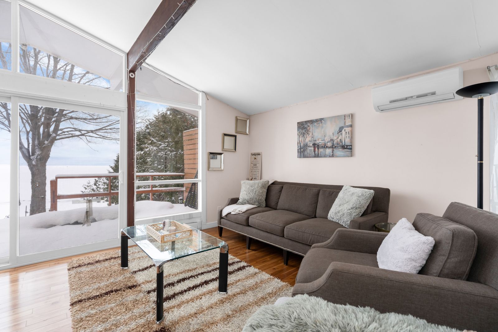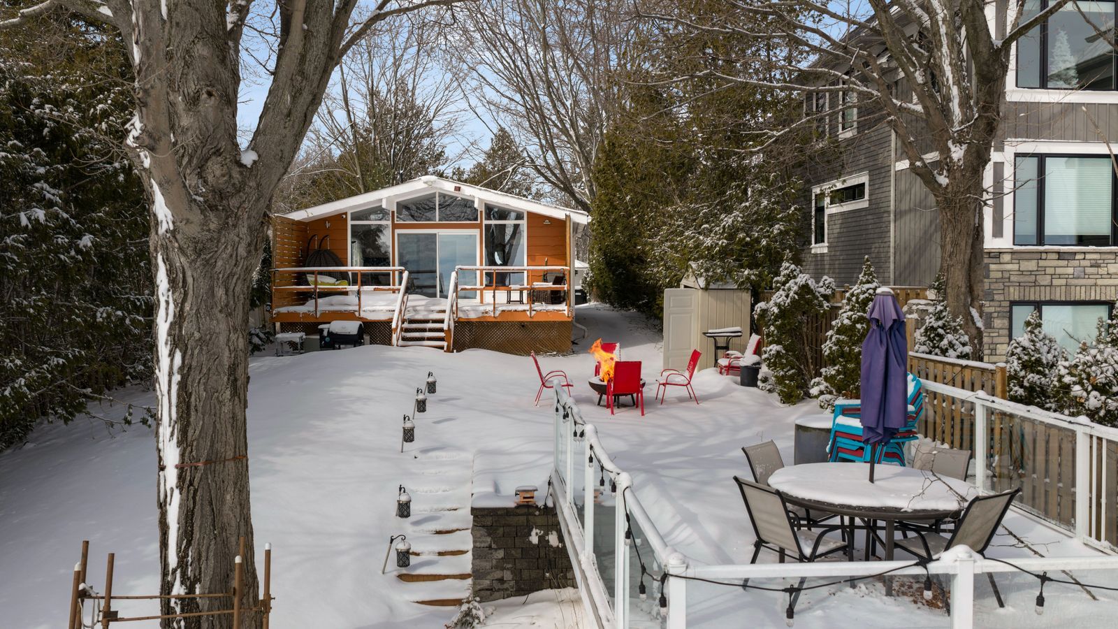 Lake simcoe bungalow with 52 ft of shoreline, a boathouse, & sweeping water views on a 196 ft deep lot! By the time the cars start lining the driveway, the kids are jumping off the dock, the tubes are ready for another round on the water, and dinner has moved outdoors, this waterfront home is already doing what it does best, bringing everyone together. Set on 52 ft of shoreline with a 196 ft deep lot, mature trees, and a boathouse at the water's edge, this beautifully renovated property delivers a private waterfront setting with a clean shoreline, concrete breakwall, and marine railway system made for life on the lake. A 24 x 10 deck off the living room with a privacy wall overlooks the water, while the generous 14 x 22 patio above the boathouse offers another exceptional place to take in the view. Vaulted ceilings, exposed wood beams, hardwood floors, and expansive windows shape the open main living space, where the water remains front and centre and every sightline pulls your eye outdoors. The kitchen is finished with granite counters, flat-panel cabinetry in a rich wood tone, stainless steel appliances, and a large island. Three bedrooms complete the layout, while the beautifully finished 3-piece bath features a walk-in tiled shower, floating vanity, and vessel sink. Parking for three vehicles, and a shed complete the property. Approximately 5 minutes to friday harbour, where golf at the nest, waterfront dining, shops along the promenade, the marina, and seasonal events are all close at hand. As part of the glenhaven beach association, this property enjoys deeded access to a waterfront park and beach, along with 40 acres of trails surrounded by wildlife and natural privacy. This #hometostay sets the scene for family weekends, lakeside dinners, and the kind of summer days that are talked about long after they end.