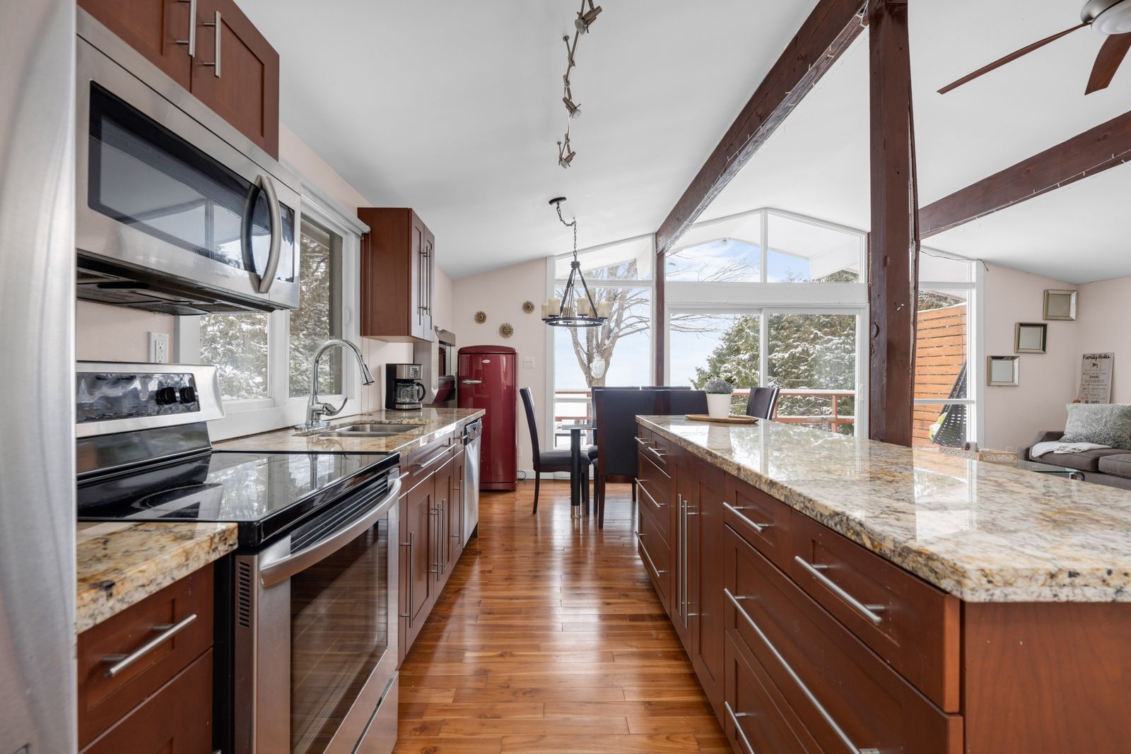 • Renovated interior featuring vaulted ceilings and large windows for great views.