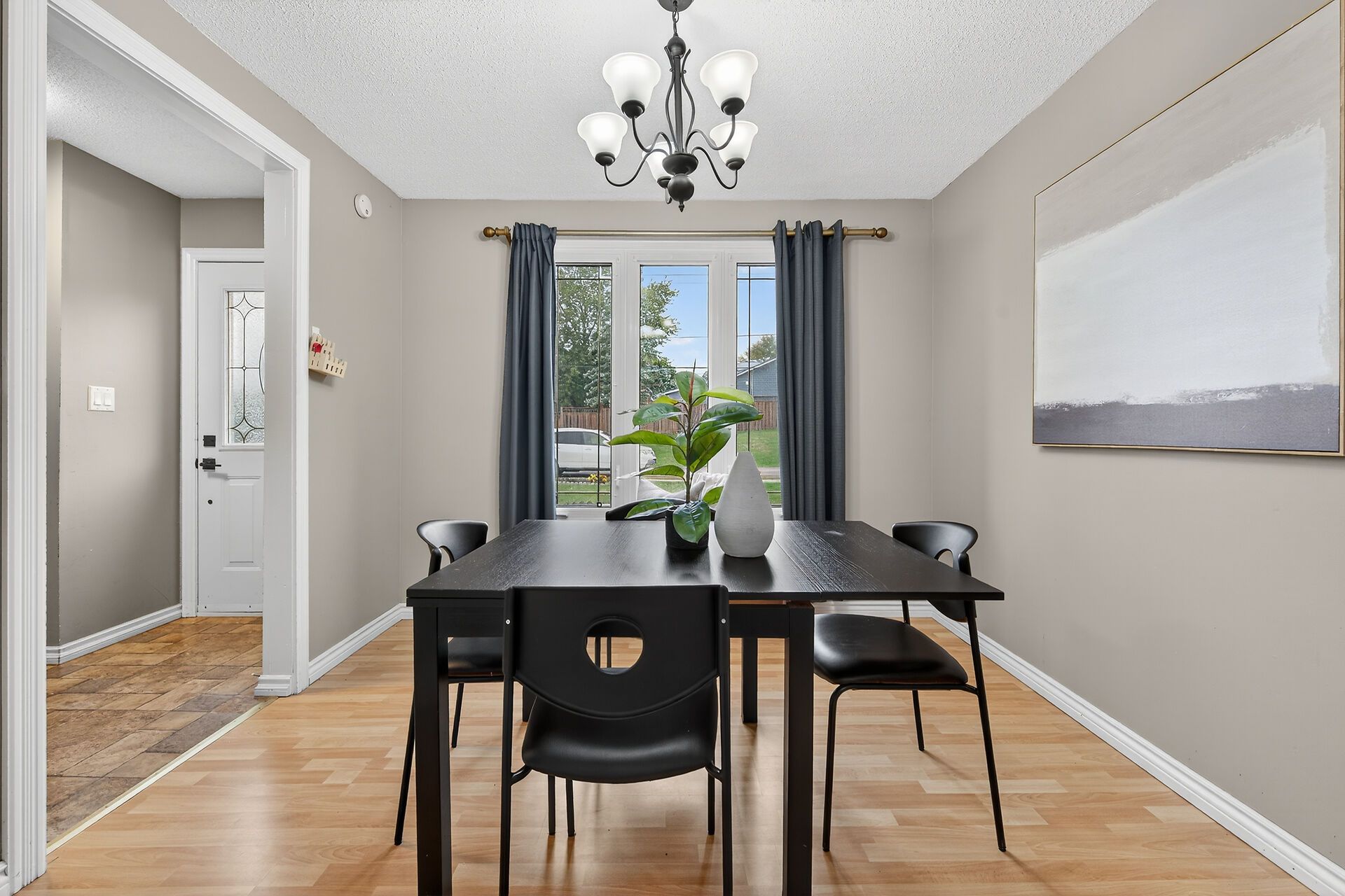 Attractive "freehold" semi-detached located in cayugas preferred sw quadrant near schools, churches, arena, shops, eateries & grand river parks - 30 min/hamilton, brantford & 403. Incs well maintained 2 stry dwelling situated on 66. 20x82. 50 lot ftrs freshly painted deck providing entry to 1320sf of functional living space, 660sf basement & 260sf garage. Introduces mf living room, dining room, modern kitchen sporting white cabinetry & back-splash, 2pc bath & rear wo to private rear/side yard enjoying 14x18 concrete patio & garden shed. Spacious primary bedroom highlights upper level ftrs 2 bedrooms & updated 4pc bath. Lower level boasts large family room, multi-purpose room incs storage/utility/laundry area. Extras - appliances, laminate & carpeting, n/g furnace, ac, water heater-2019, nest thermostat, vinyl windows & paved double drive.