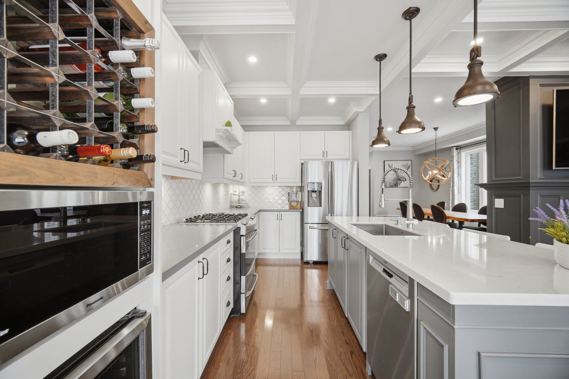 Absolutely stunning semi in flourishing & sought-after southfields village! Exceptional custom work - over $70k in renos & upgrades. 9 foot ceilings & hardwood throughout open-concept main floor. Beautiful large chef's kitchen with breakfast bar island. Coffered ceiling in kitchen & living room. Beautifully clad double sided, custom fireplace. 400 sf 3-tier deck. Separate family room on split level for a nice retreat. Over 20 led potlights & separate entrance to basement with rough-in perfect for a future 2nd unit