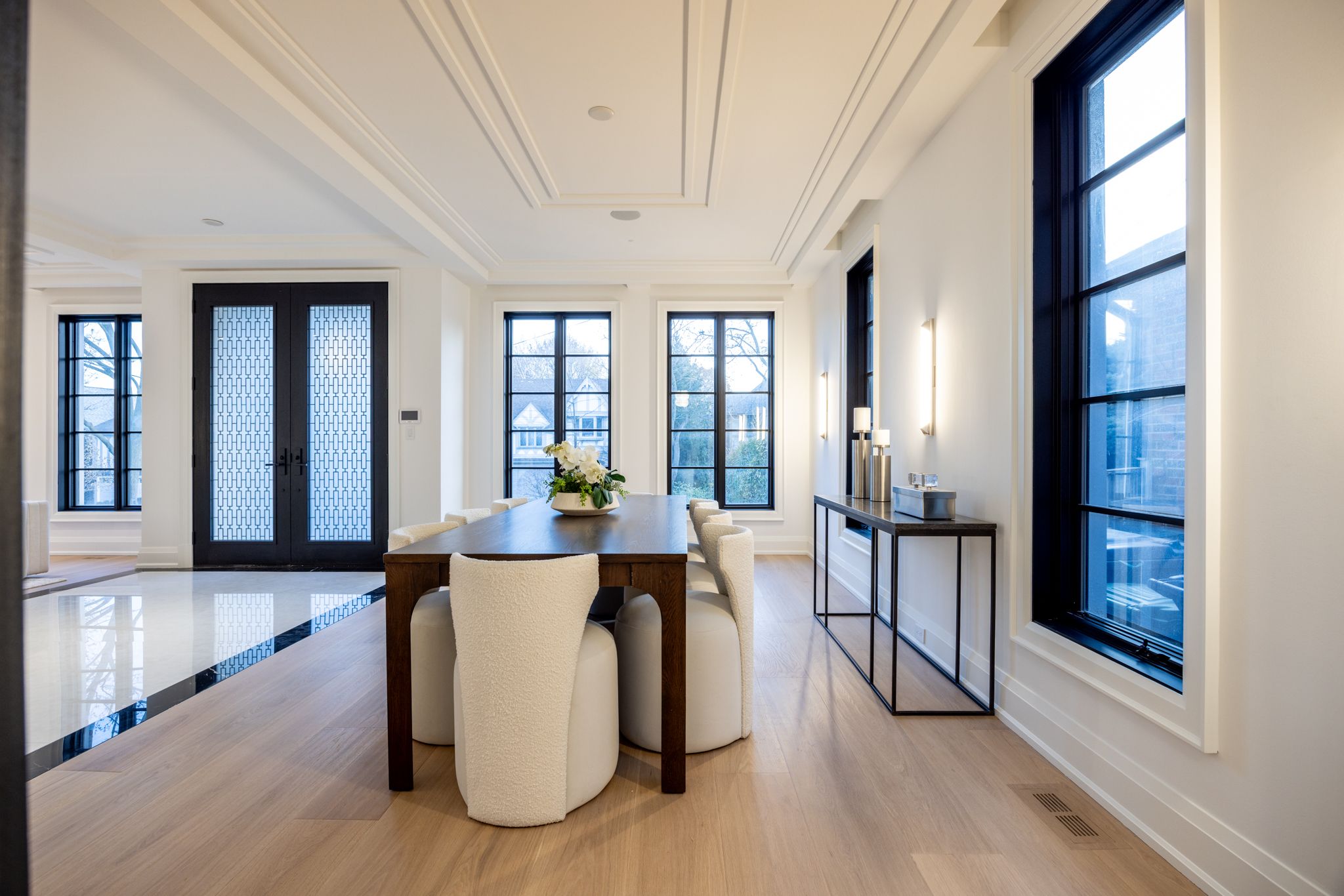 A newly built custom residence, designed by spragge architects, is perfectly positioned with southern exposure and captivating winter city views. Exemplifying exceptional craftsmanship in the heart of prestigious forest hill. This 6-bedroom, 8-bathroom home spans over 5,200 sq ft of refined living space, blending timeless artistry with the finest materials. From the moment you arrive, a heated walkway leads to an impressive entrance framed by a brick and indiana limestone facade. Inside, soaring 10. 5-foot ceilings, a sweeping curved staircase, and a grand stone hallway set a tone of understated elegance. The formal oversized living and dining rooms feature coffered ceilings, a statement fireplace, and a butler's pantry designed for seamless entertaining. Sunlight fills the principal rooms, overlooking manicured gardens and a saltwater pool, while a private elevator offers effortless access to every level. Enter through the private side entrance from the driveway into a well-appointed mudroom that combines function and style, adjacent to a striking powder room with marble floors and an integrated marble sink. The chef's kitchen, anchored by a generous eat-in island and breakfast area, connects to a welcoming family room with custom built-ins, a coffered ceiling, and a walk-out to the private yard. Upstairs, the primary suite offers a tranquil retreat with a private balcony, custom walk-in closet with exquisite cabinetry, and spa-inspired ensuite. Two additional bedrooms, each with designer finishes and ensuite bathrooms, complete this level. The top floor adds versatility with two more bedrooms, a full bath, an office or play space, and a sunlit laundry room with abundant storage. The lower level impresses with a large recreation room, wet bar, gym, guest/nanny suite, powder room, and ample storage & radiant heating. Just steps from forest hill village, cedarvale park, and only 15 minutes to yorkville. Thirty-six ava road defines modern luxury and effortless living.