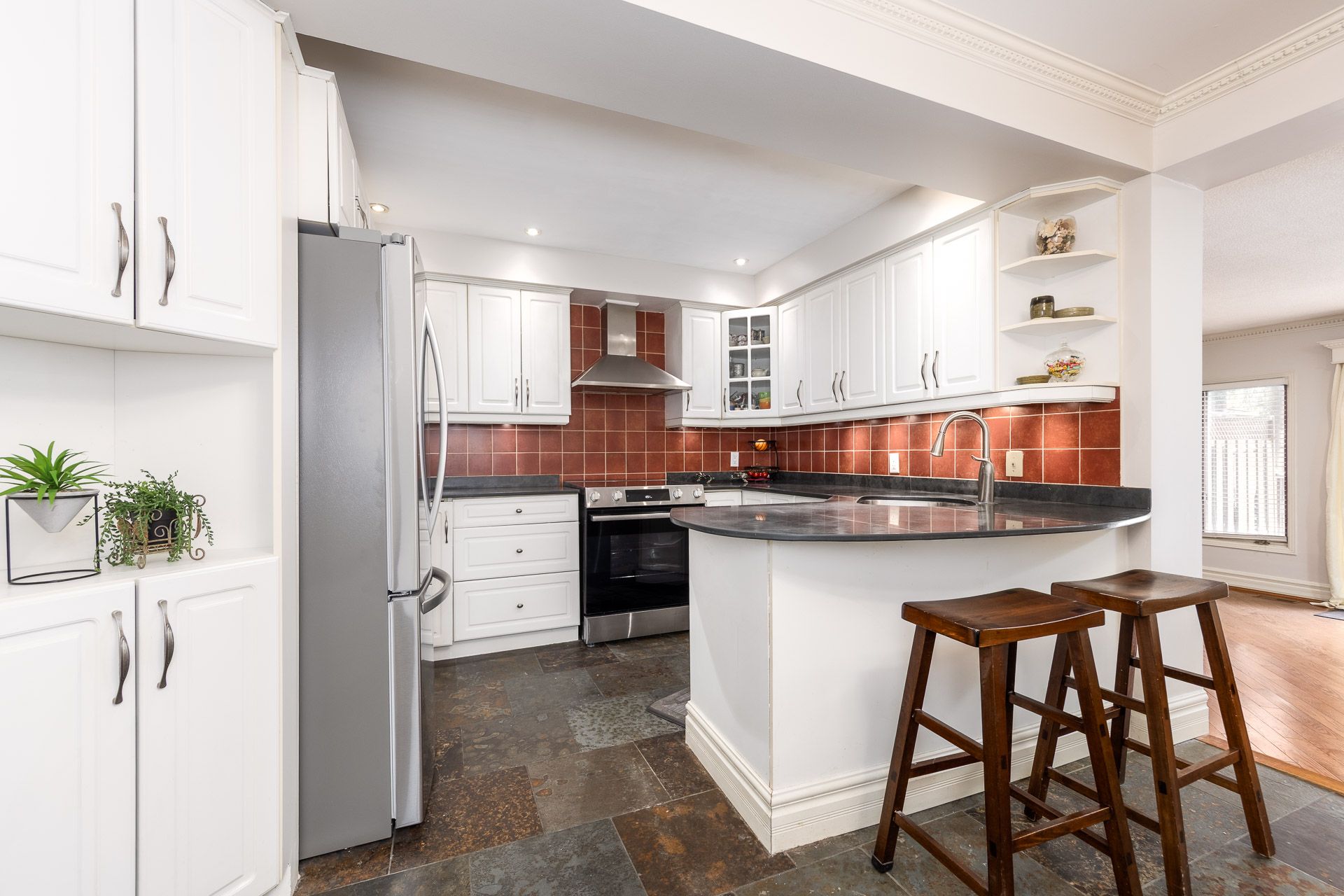 • Versatile layout includes a living room with fireplace and potential in-law suite.