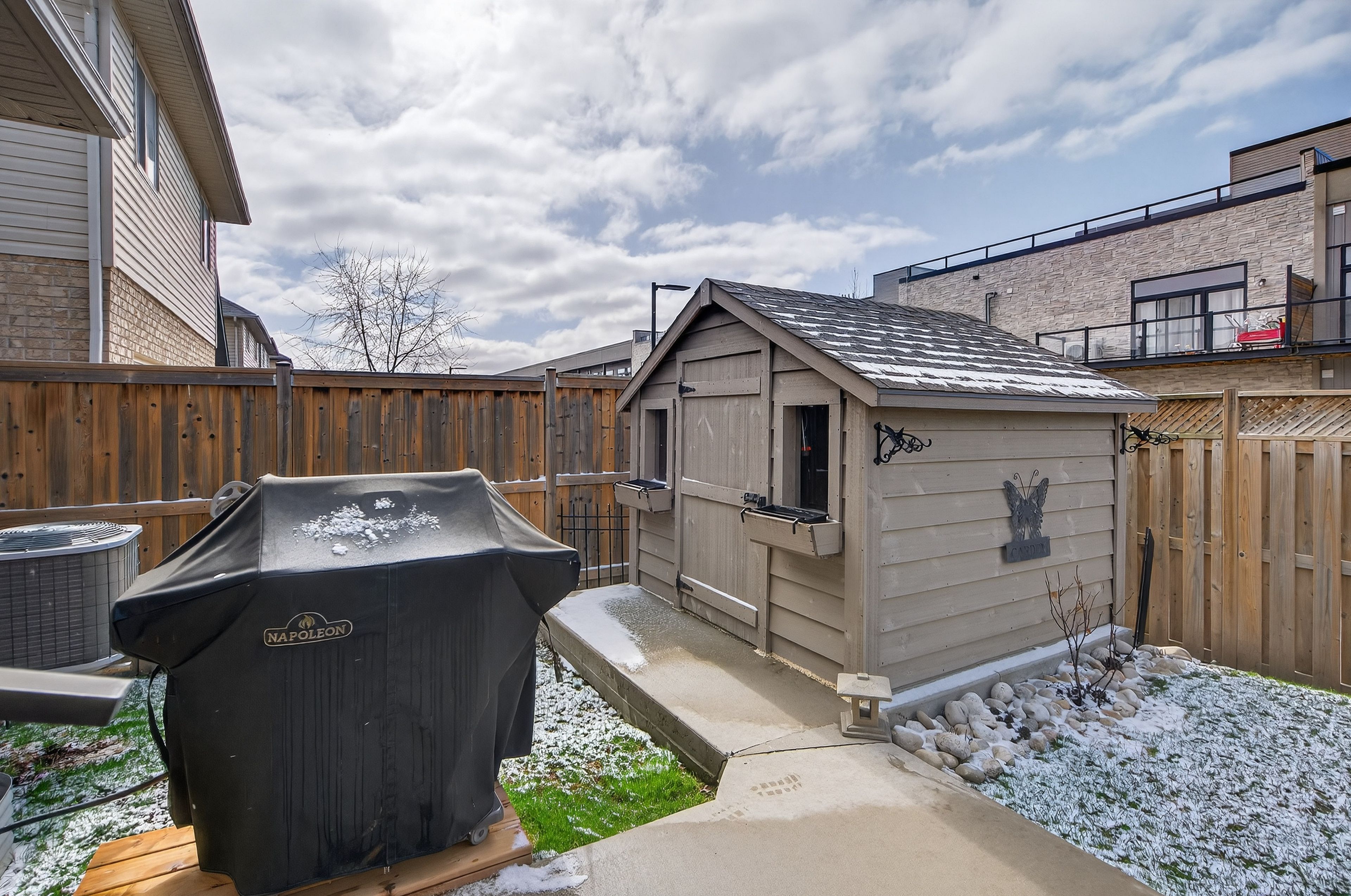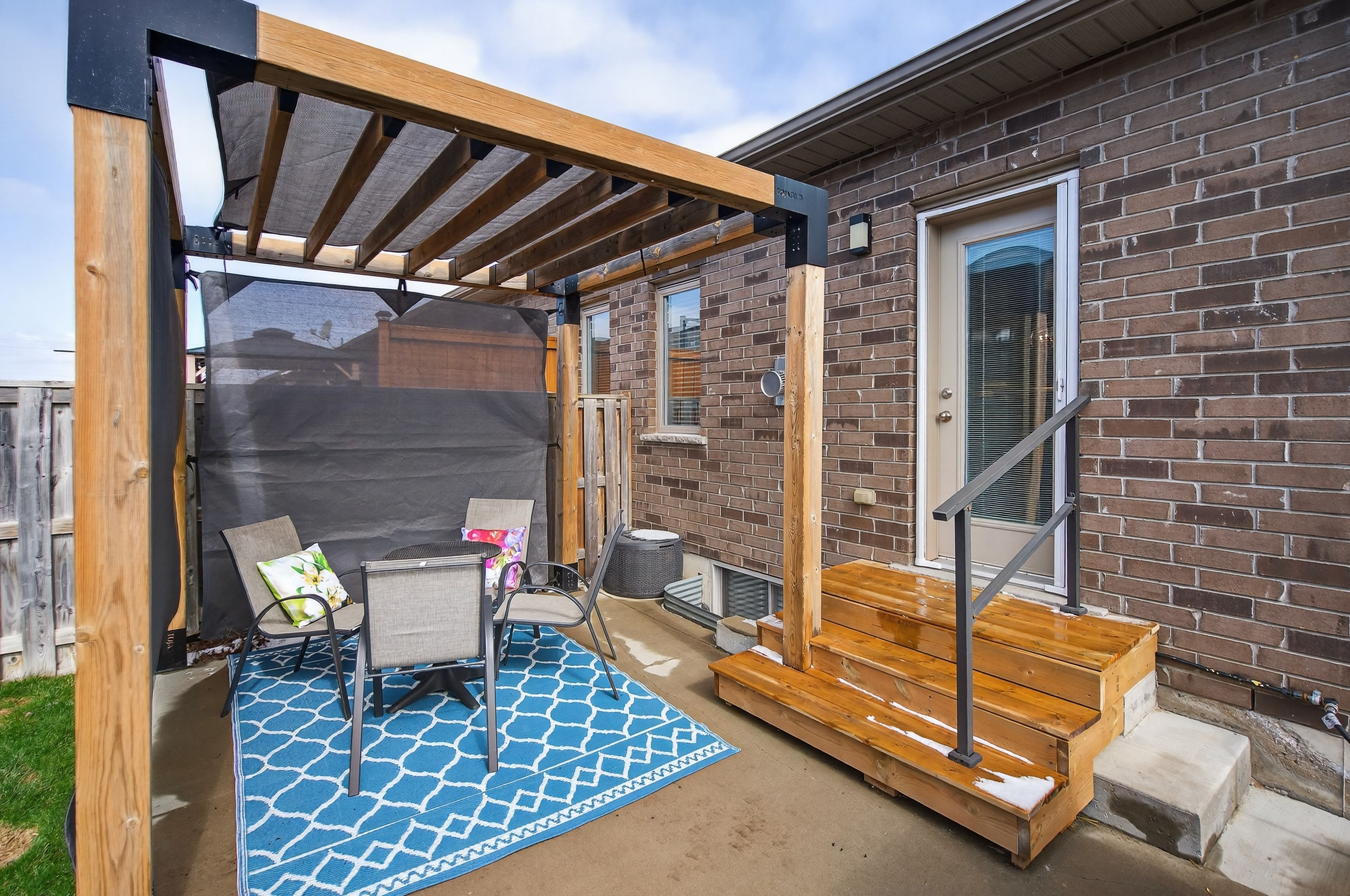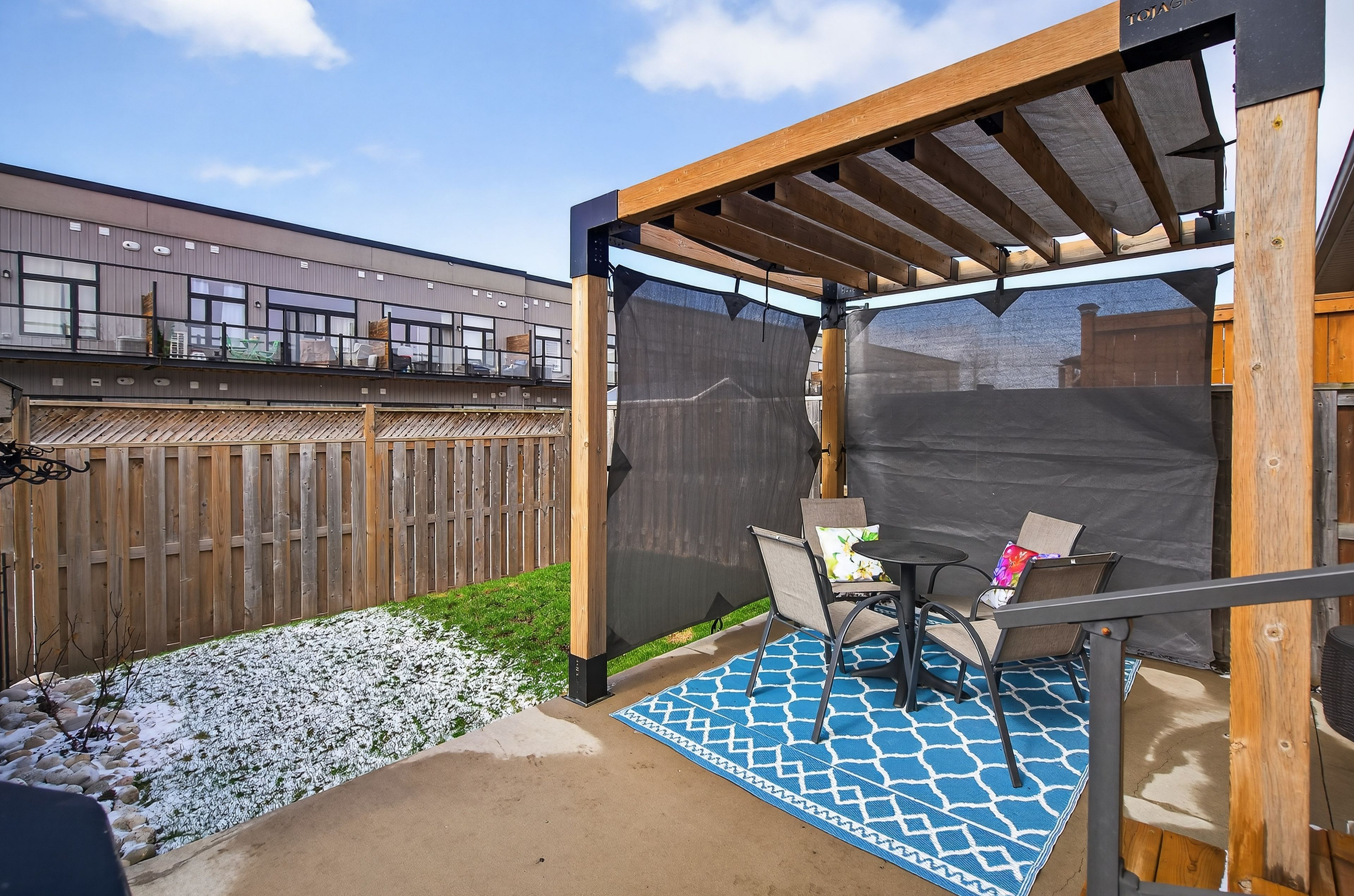 • Private backyard with a pergola, gas line for BBQ, and patio.